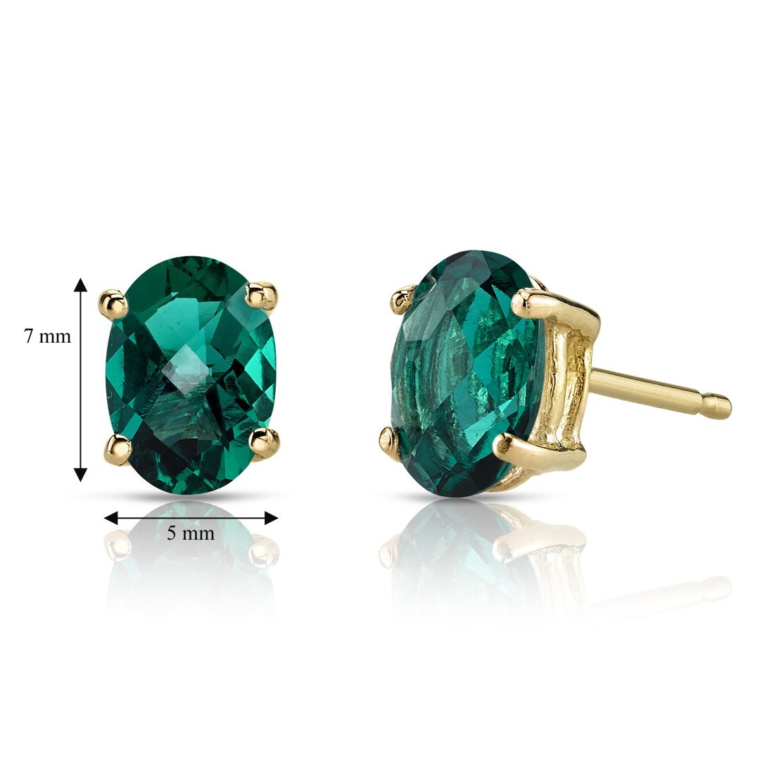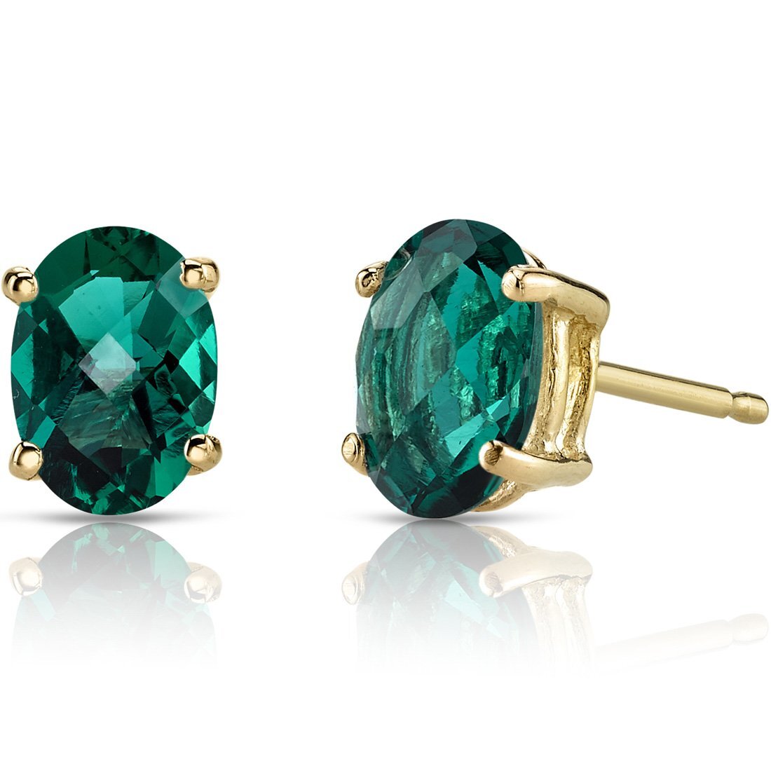 These standout earrings feature oval shape Peora created emerald gemstones in 14K yellow gold.