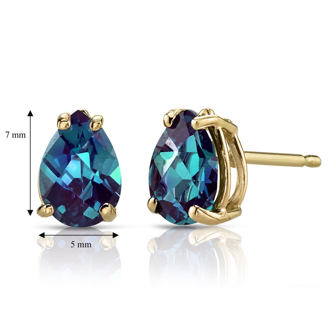 These standout earrings feature pear shape Peora created alexandrite gemstones in 14K yellow gold.