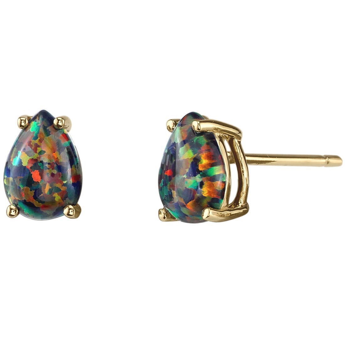 Pear Shape Black Opal Stud Earrings 14K Yellow Gold 1 Carat