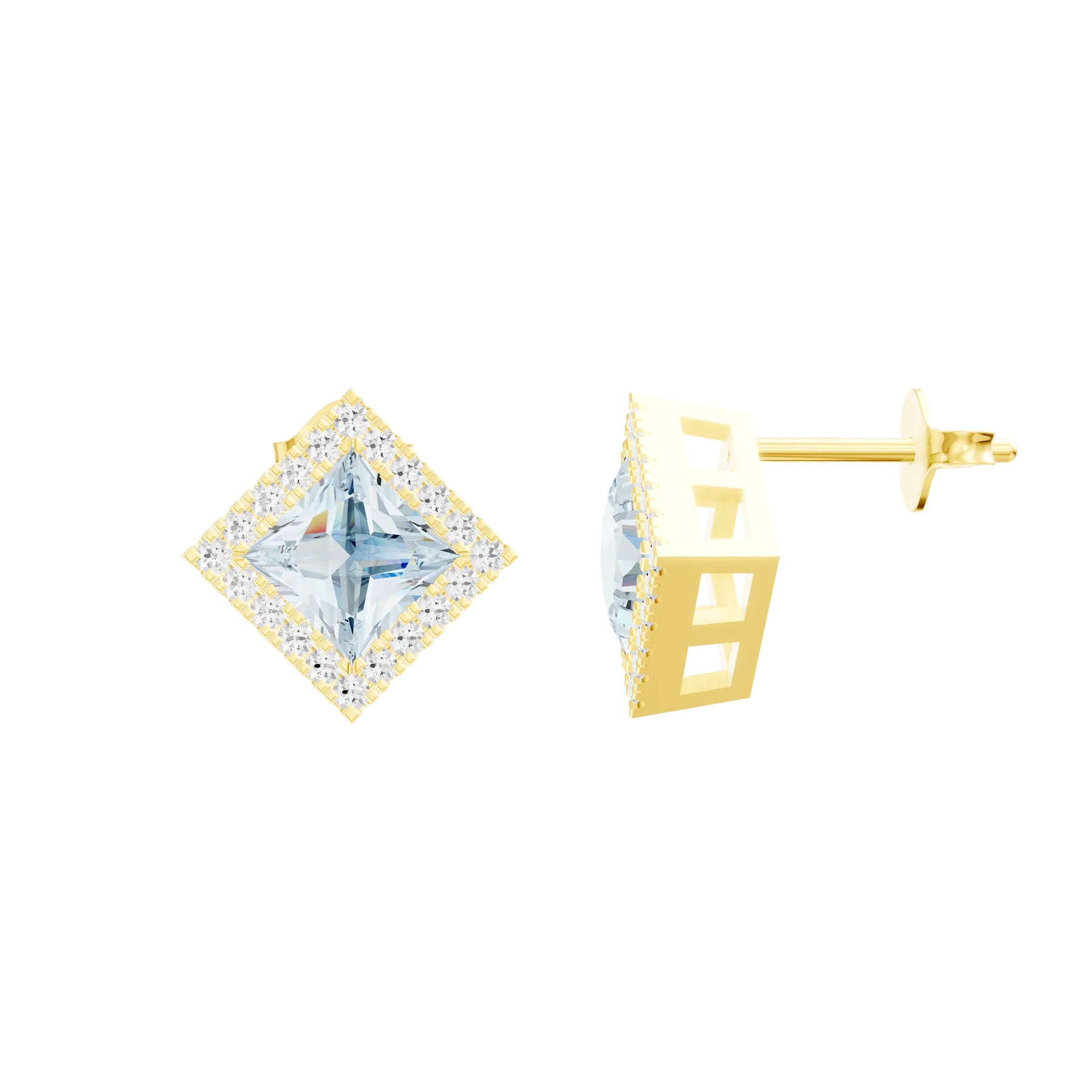 Aquamarine Princess Earrings - 4mm