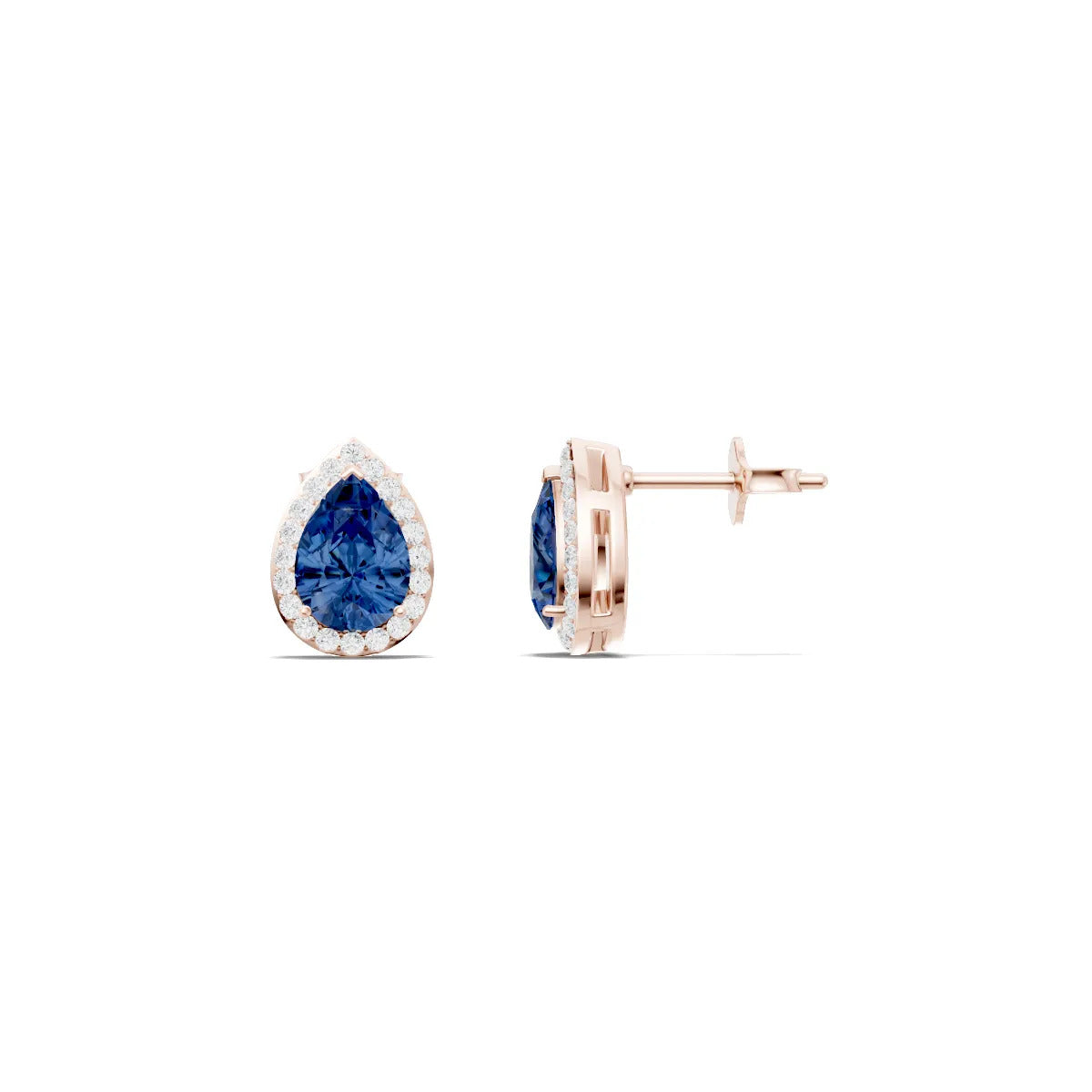 Pear Halo Studs Earrings - 7x5mm