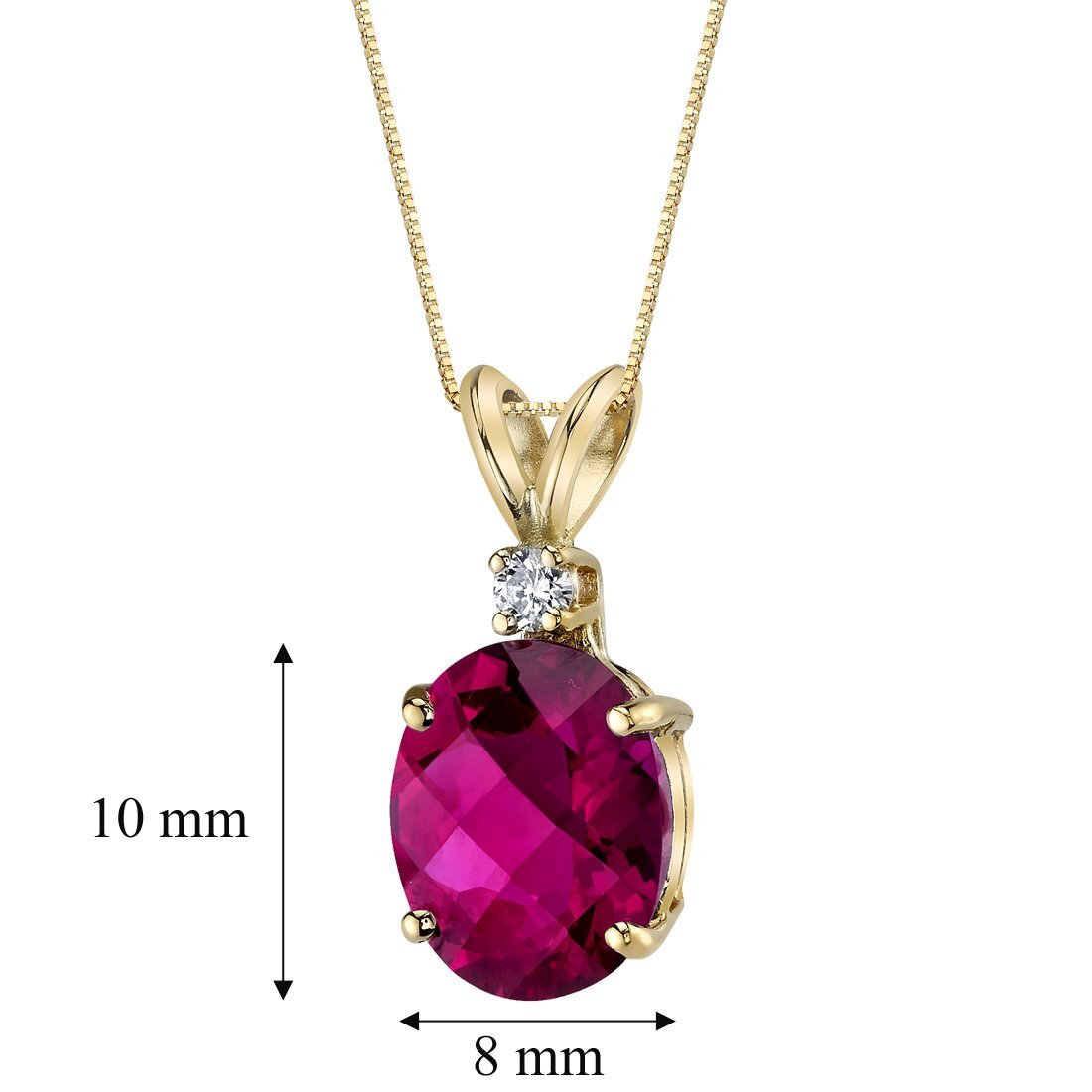 This versatile pendant features oval shape Peora created Ruby gemstones in 14K yellow gold.