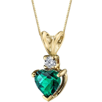 Heart Shape Emerald and Diamond Pendant Necklace 14K Yellow Gold 0.75 Carat