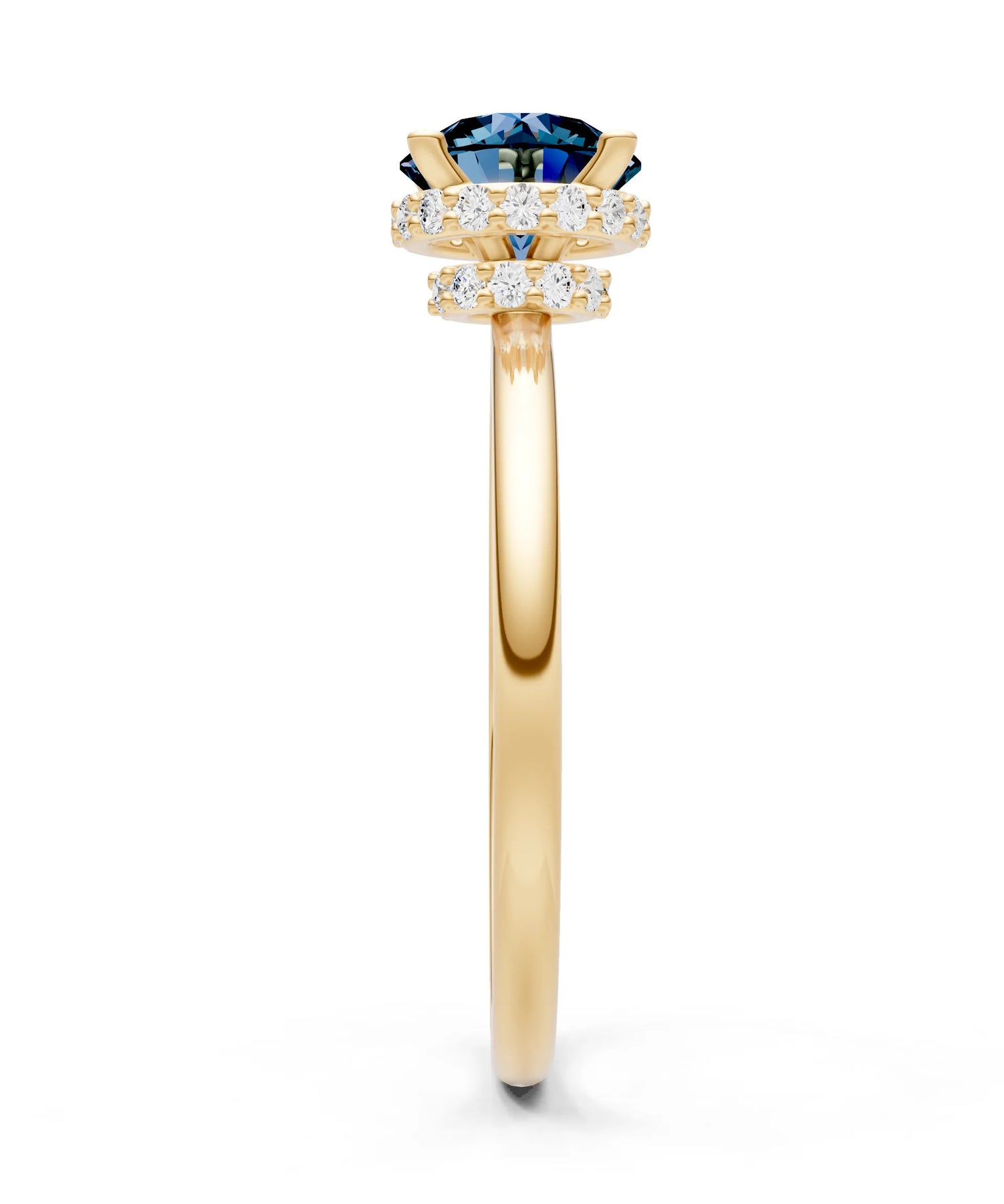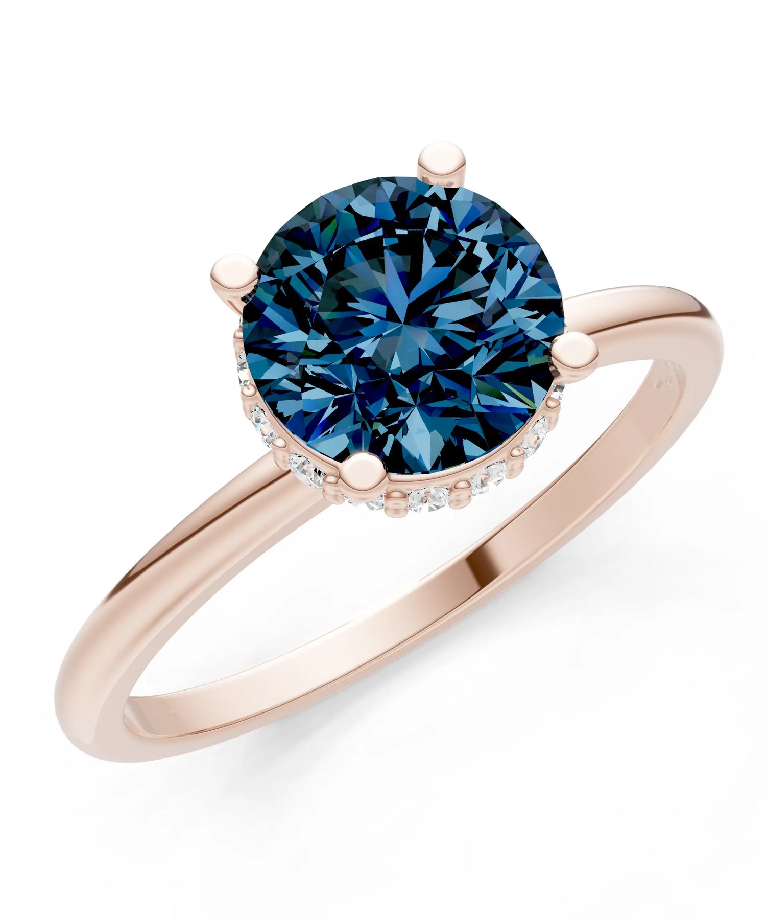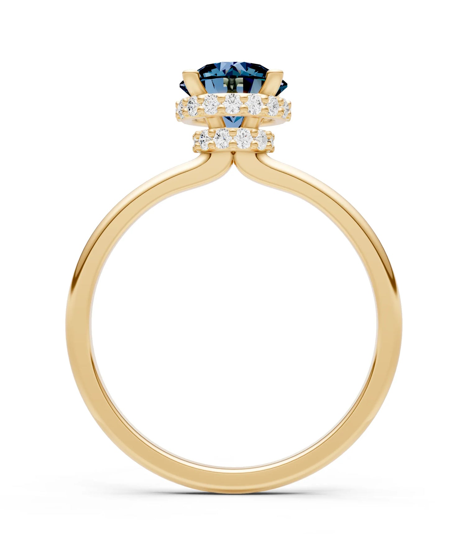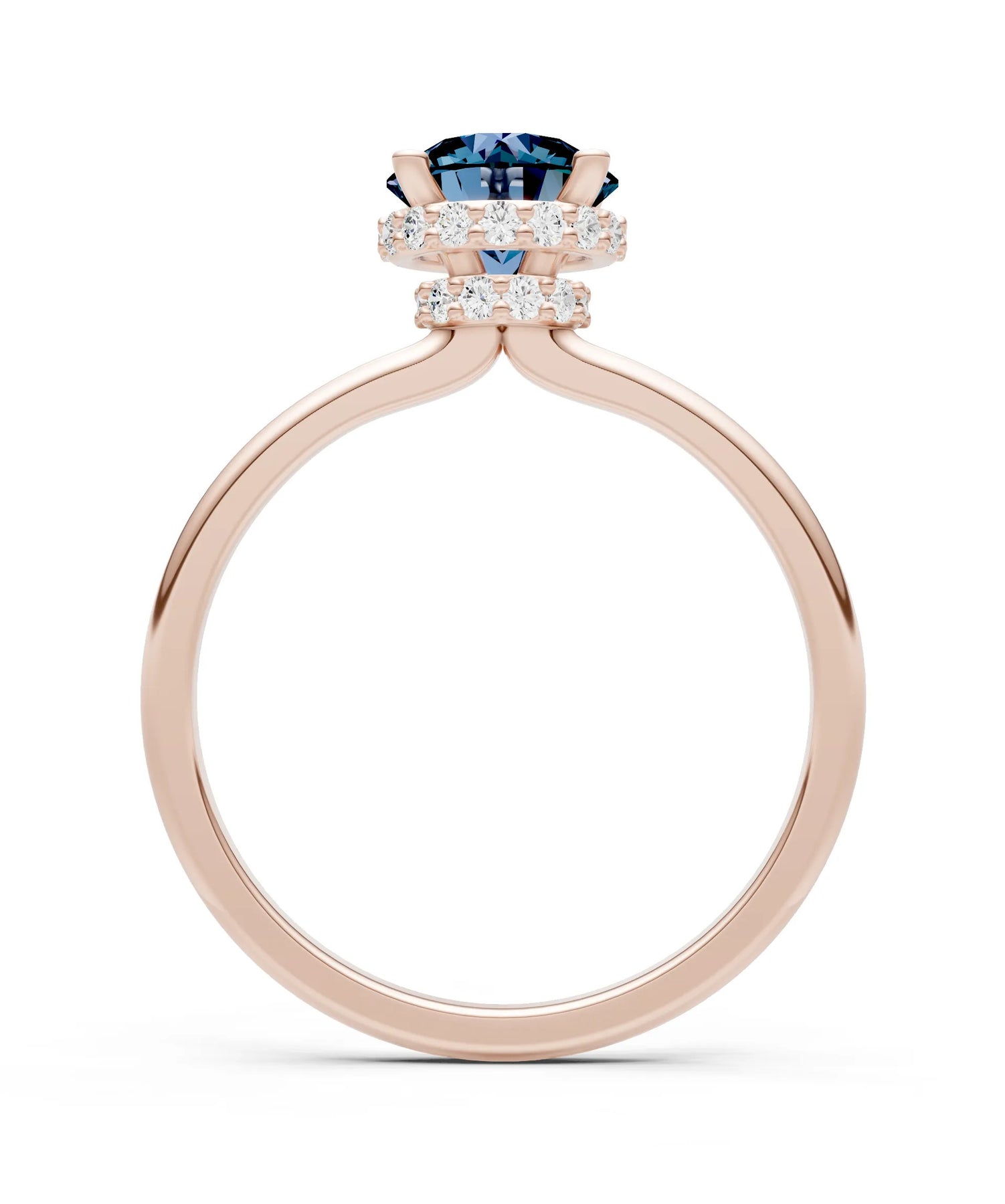 Alexandrite Round Shape Hidden Double Halo Engagement Ring