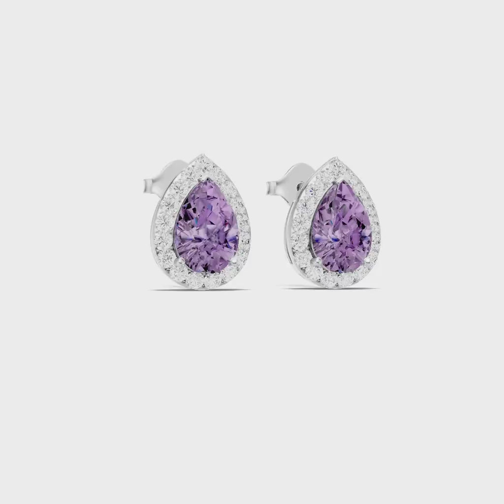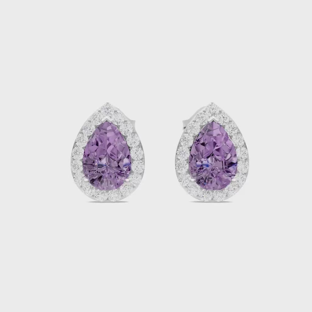 Amethyst Pear Halo Studs Earrings - 6x4mm