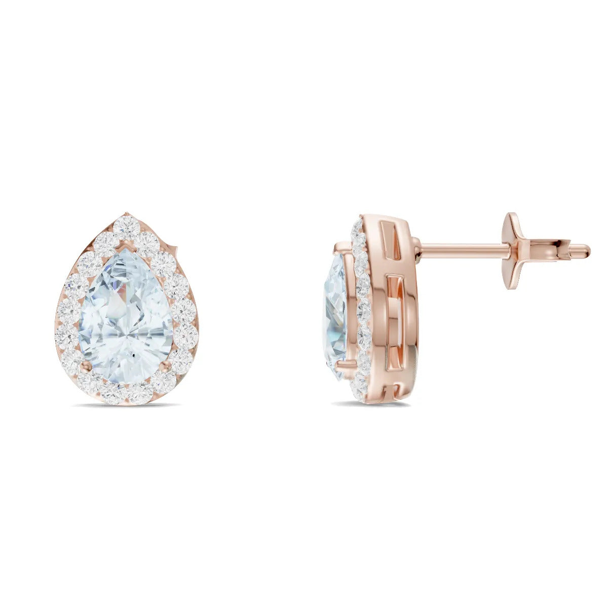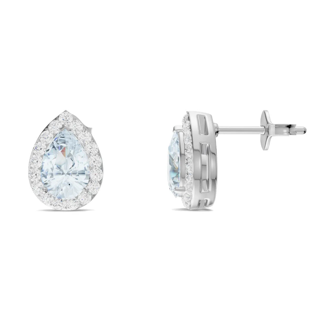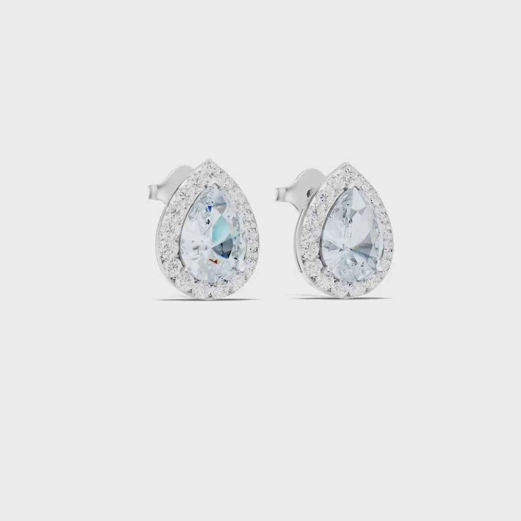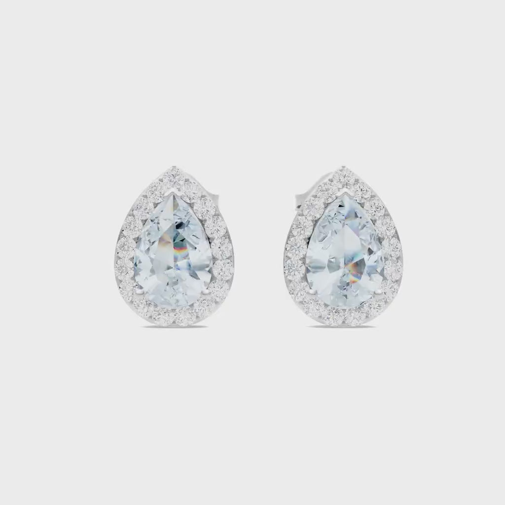 Aquamarine Pear Halo Studs Earrings - 6x4mm