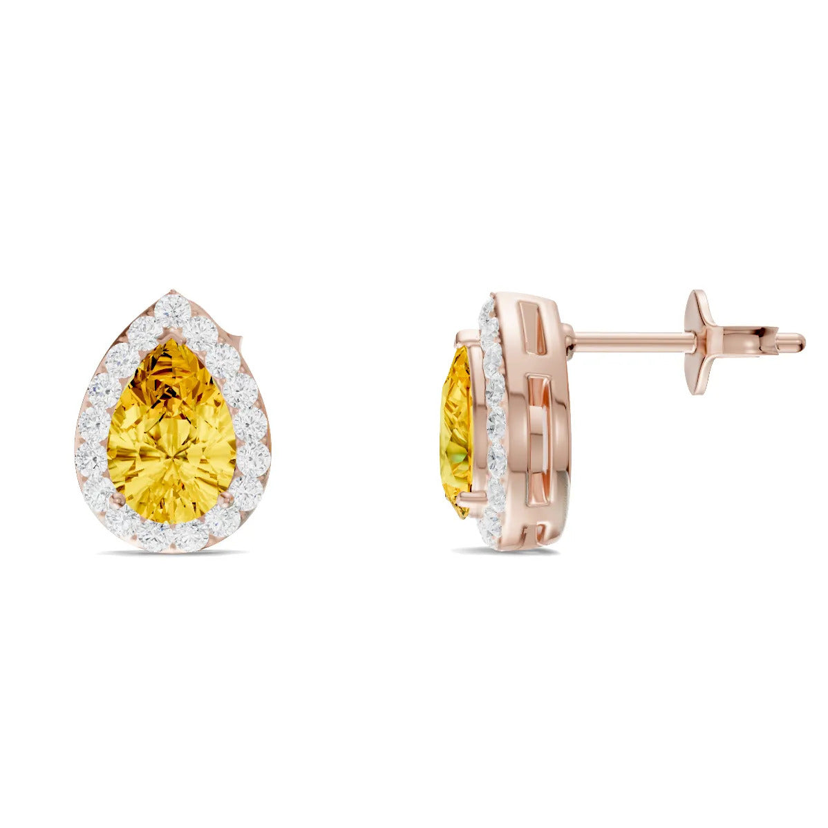 Citrine Pear Halo Studs Earrings - 6x4mm