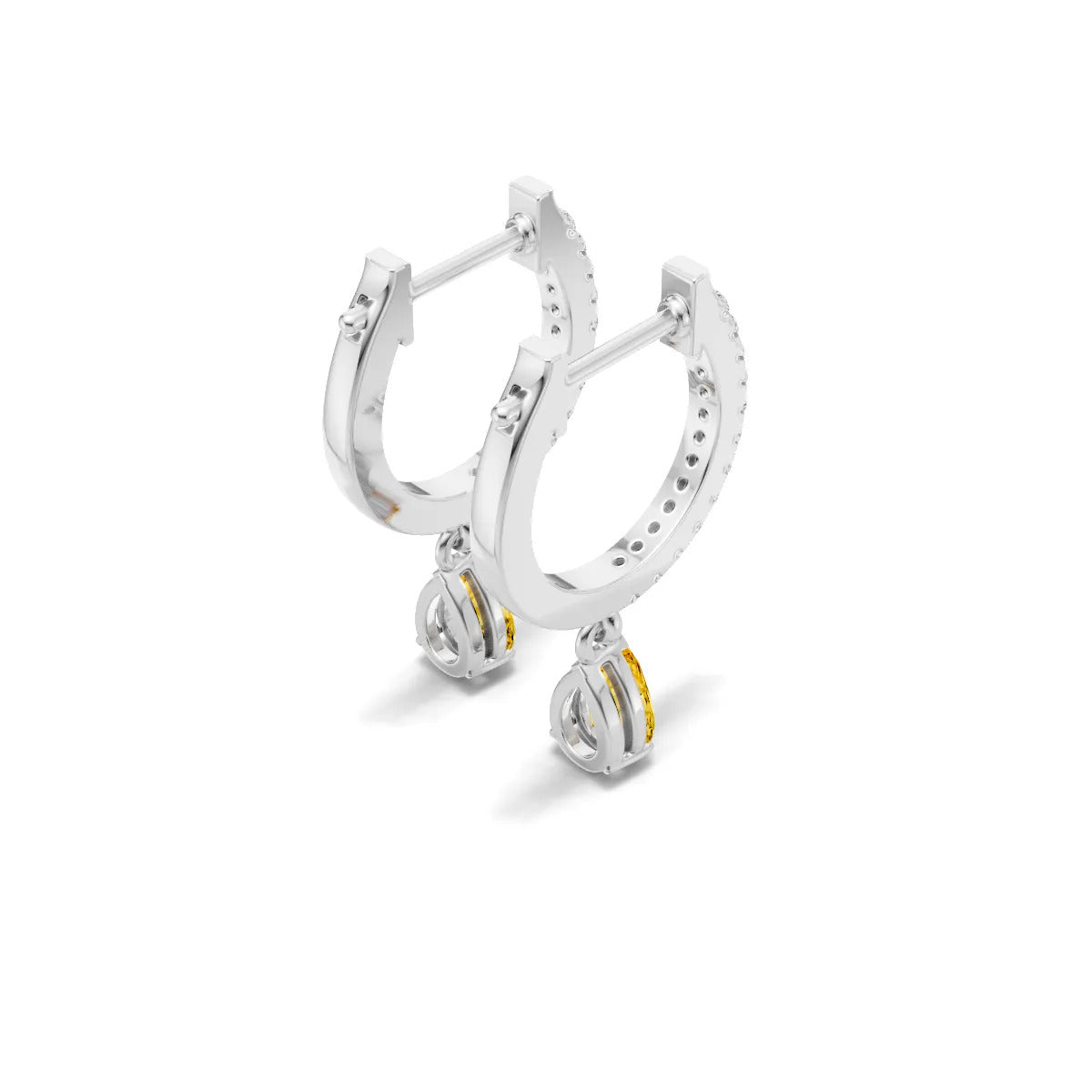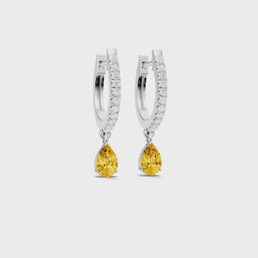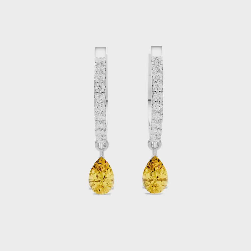 Citrine Gemstone Pear Shape Hoop Drop Earrings with Accents - 6x4mm