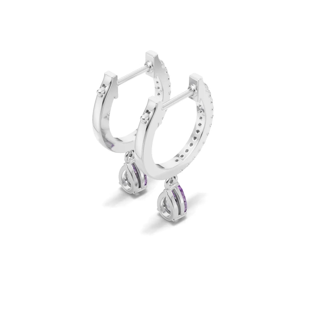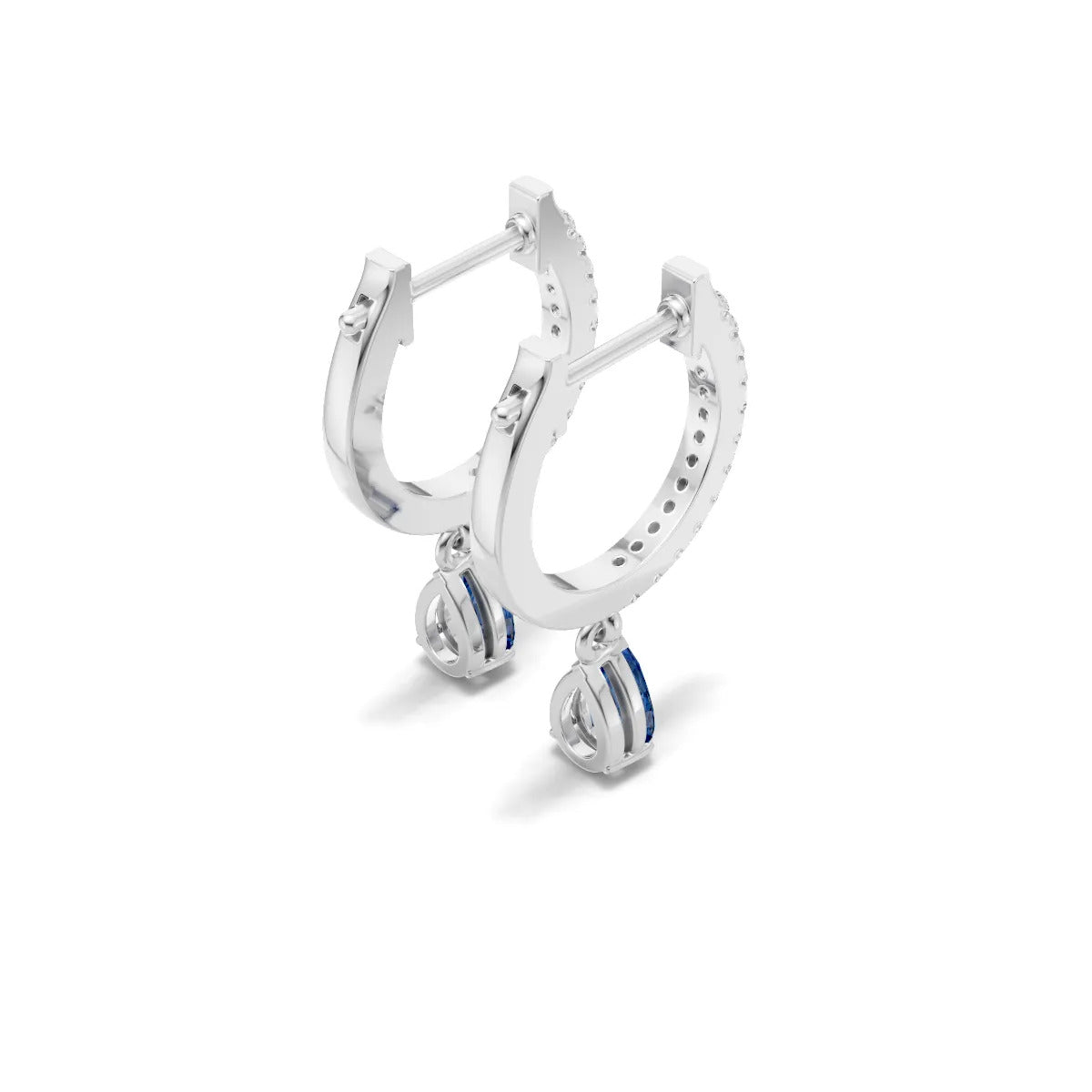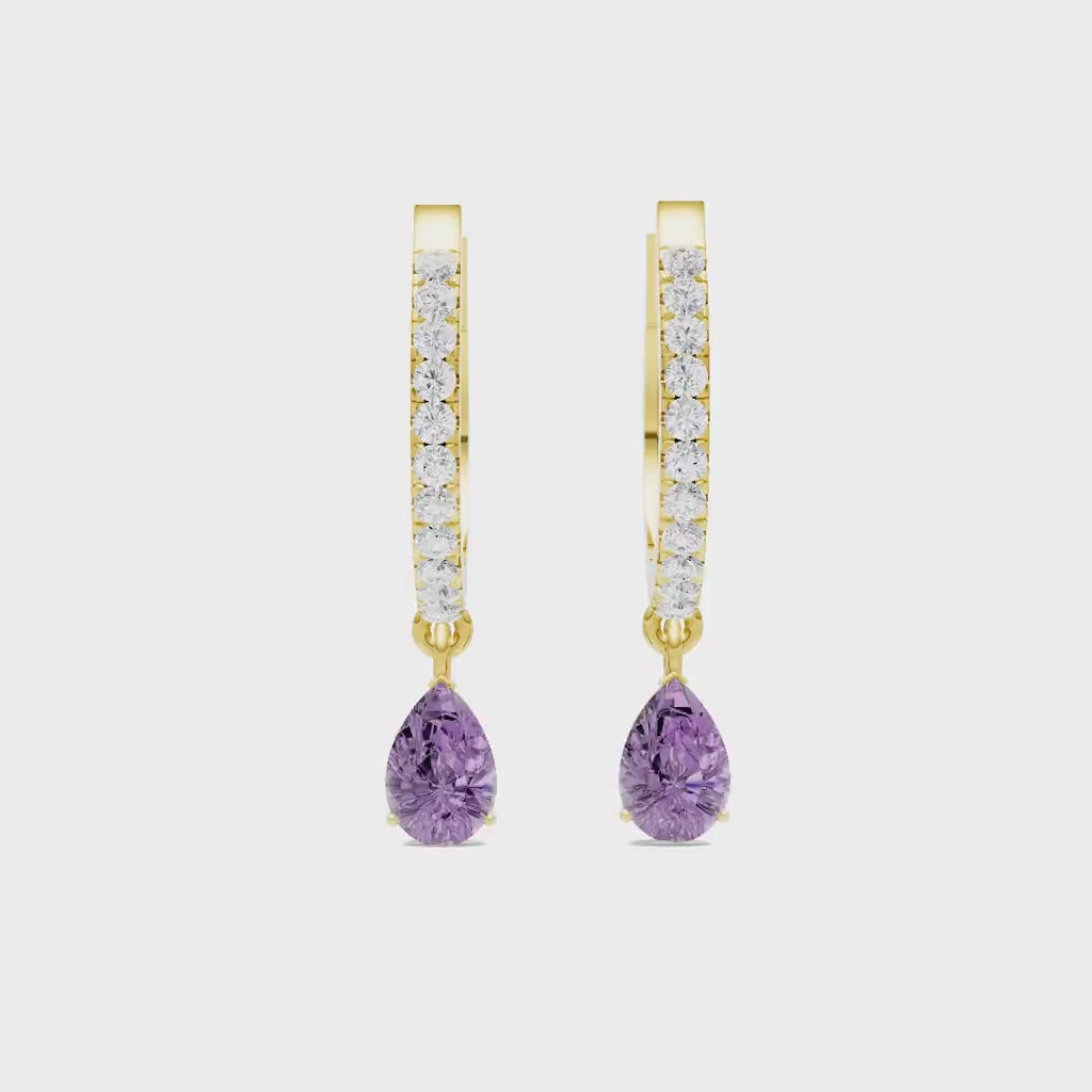 Gemstone Pear Shape Hoop Drop Earrings with Accents - 6x4mm