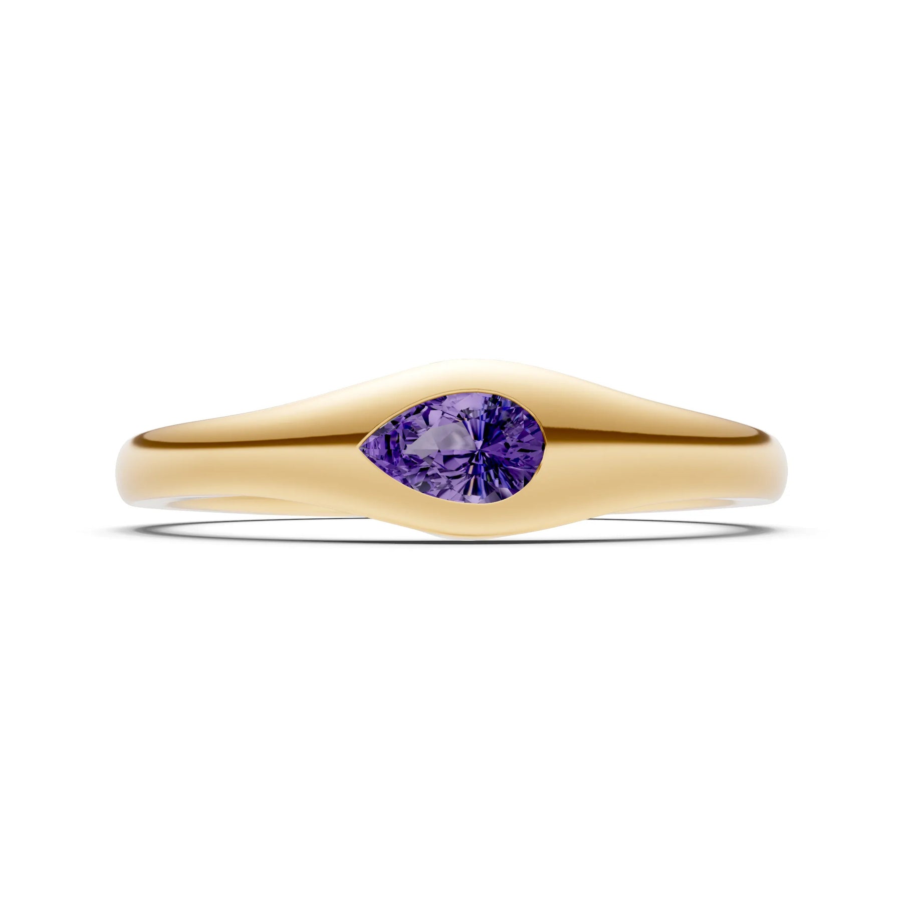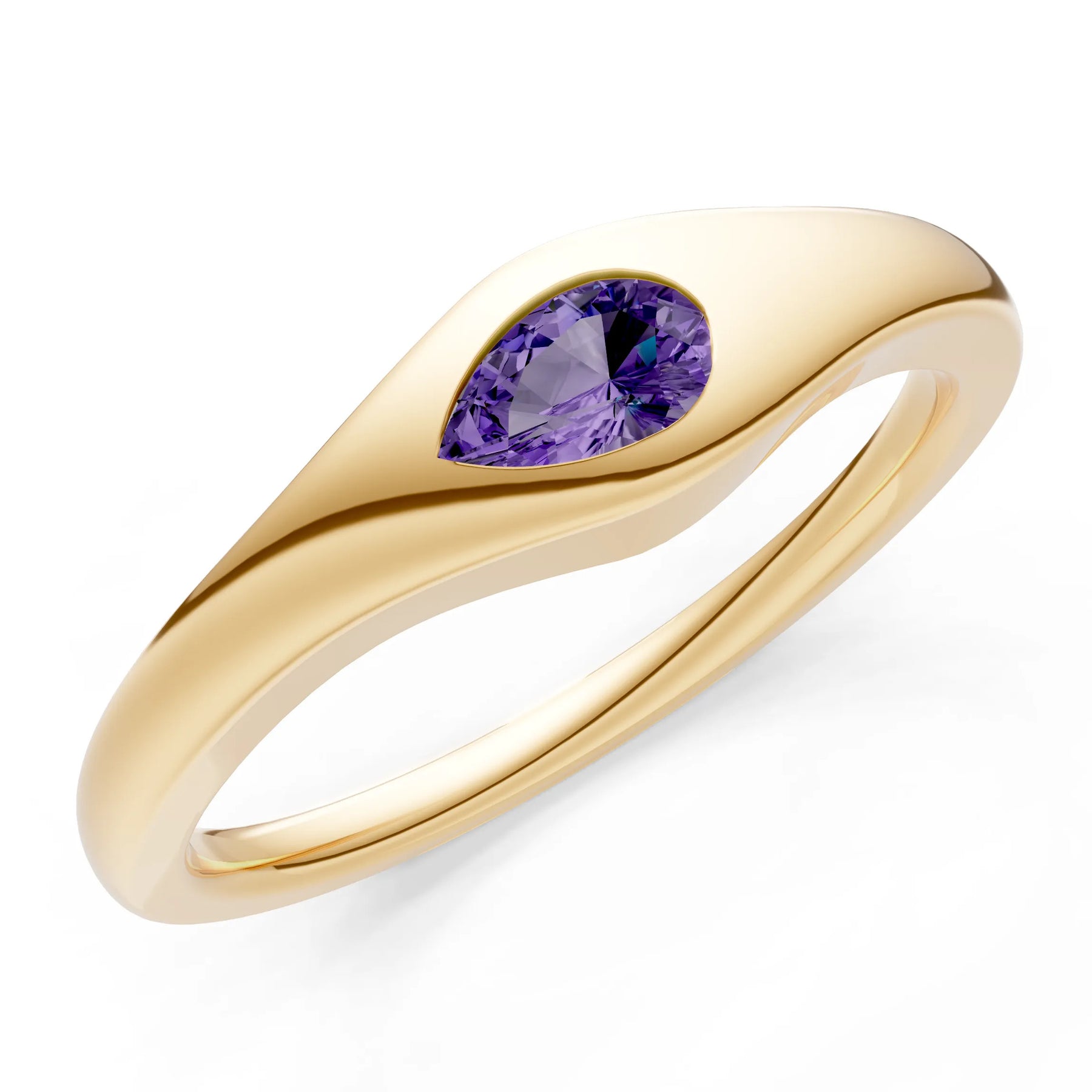 Amethyst Flush-Set Pear Gemstone Mini Signet Ring
