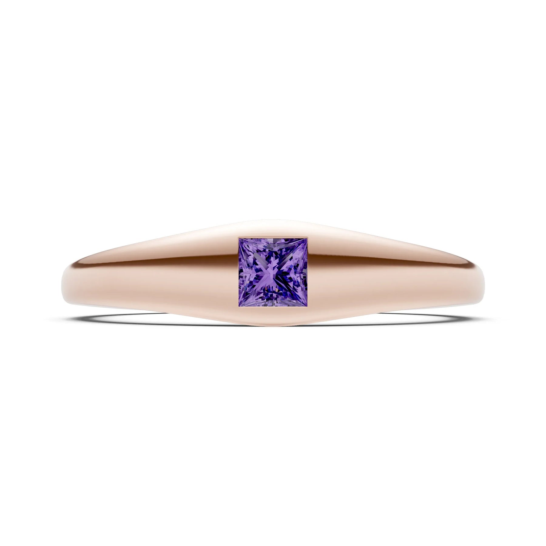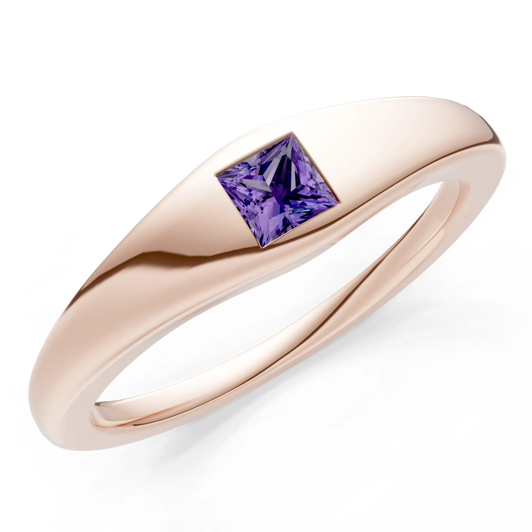 Amethyst Flush-Set Princess Cut Gemstone Mini Signet Ring