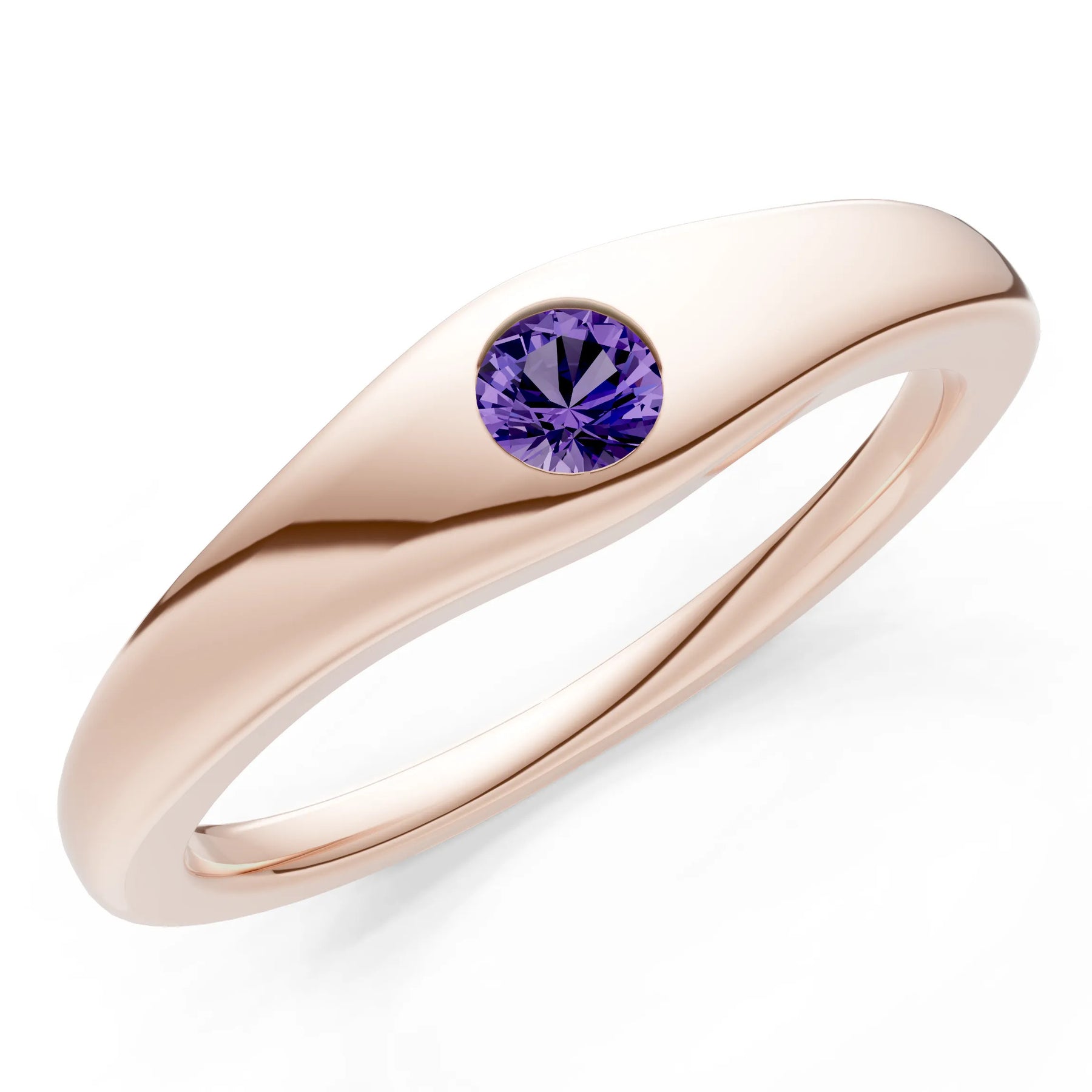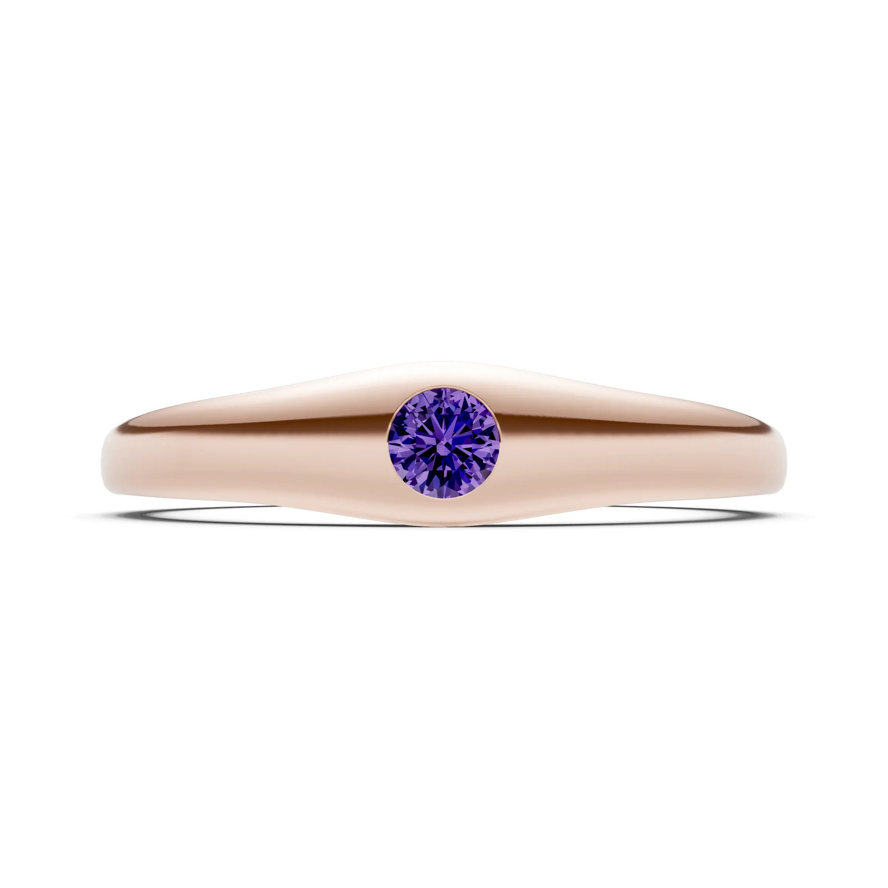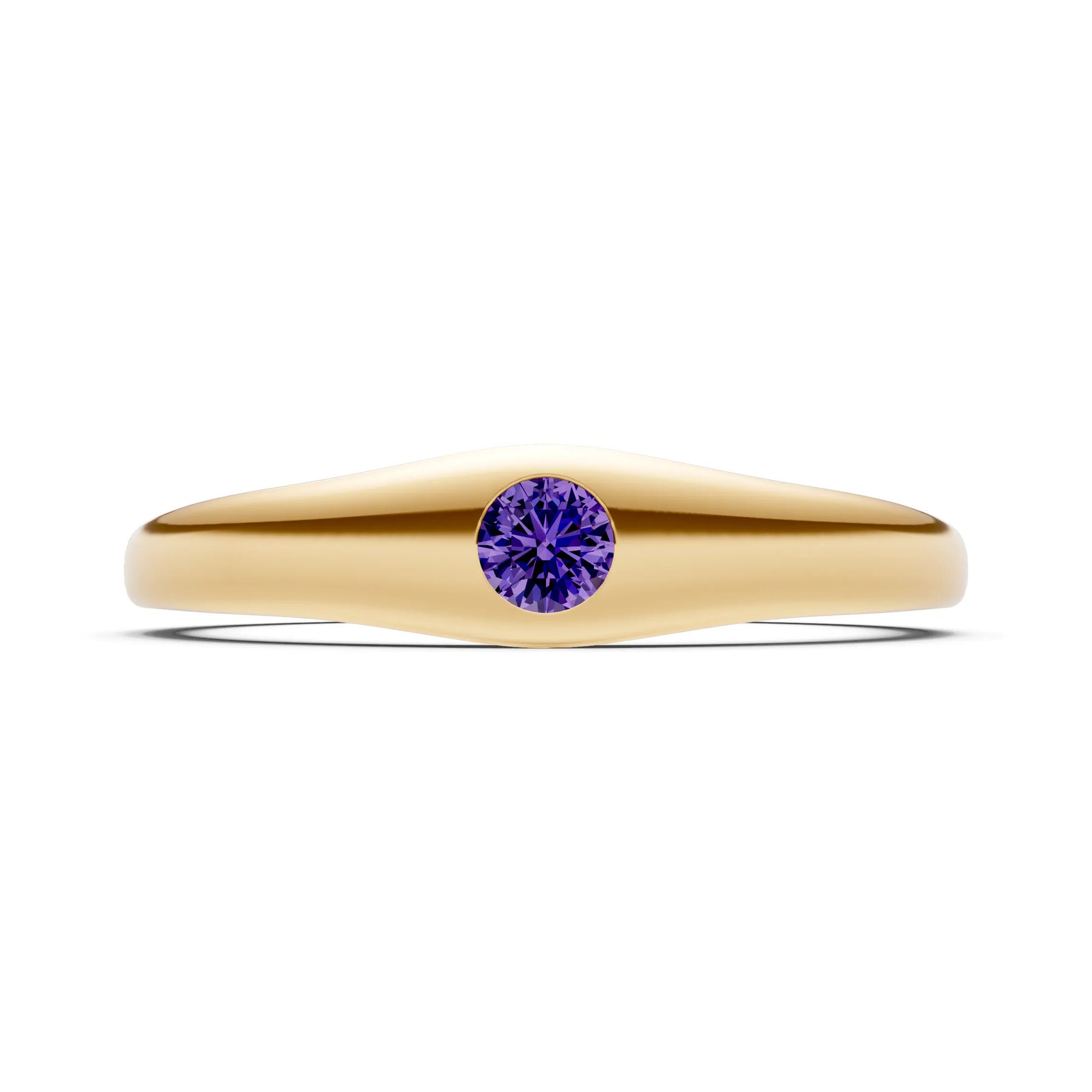 Amethyst Flush-Set Round Gemstone Mini Signet Ring