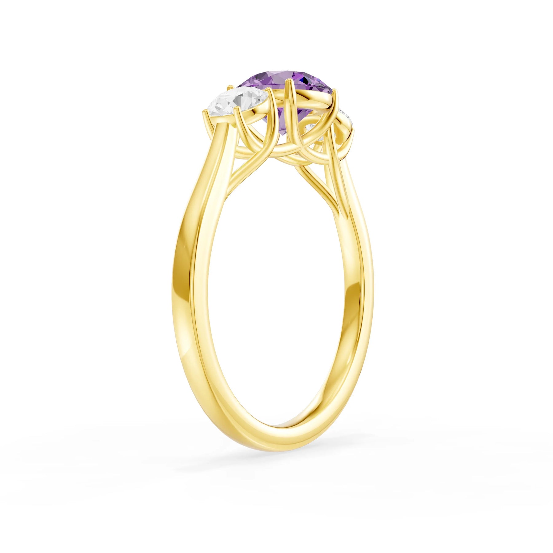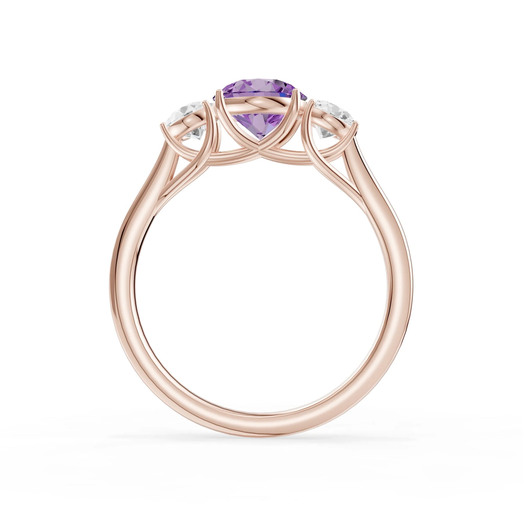 Amethyst Three Round Cut Stone Ring