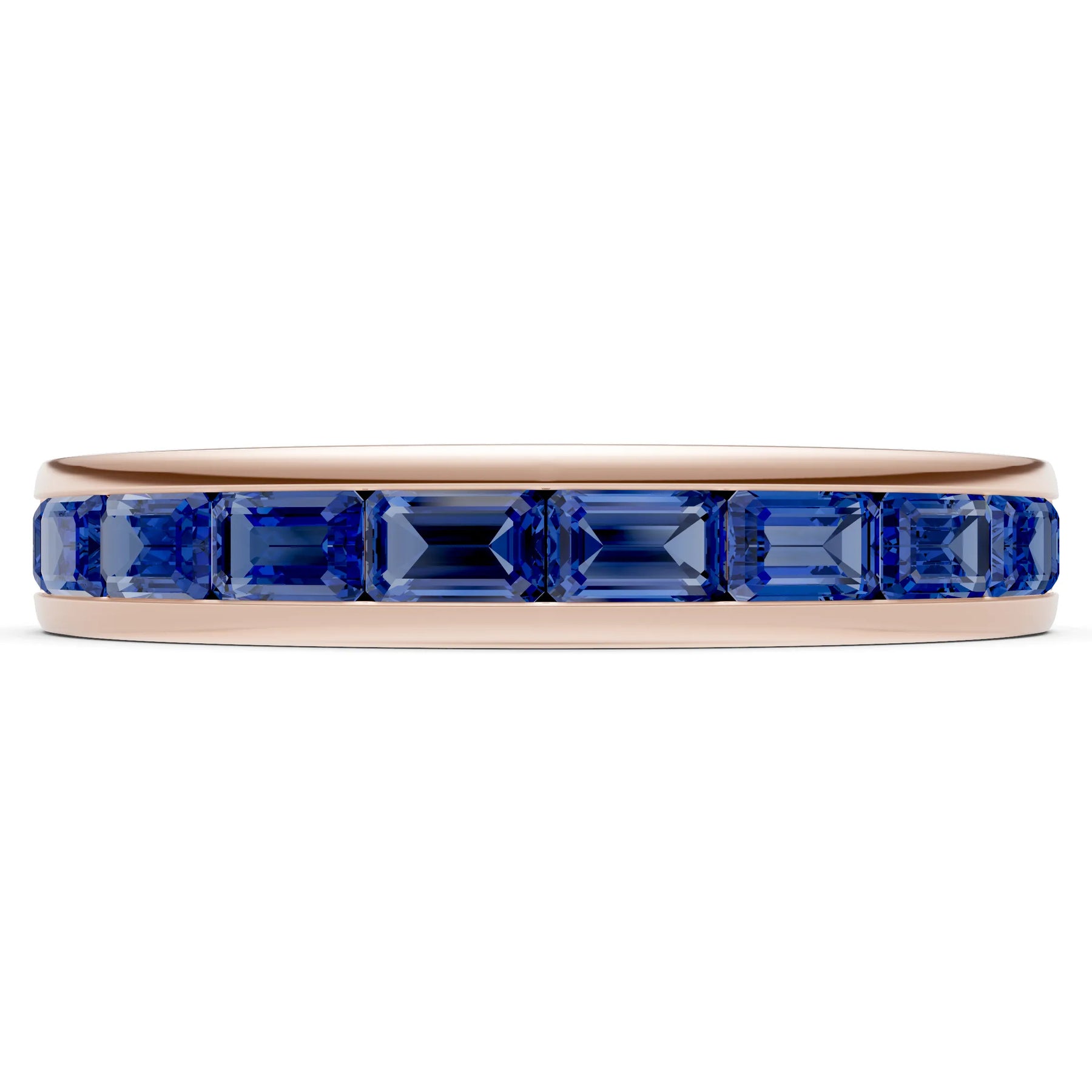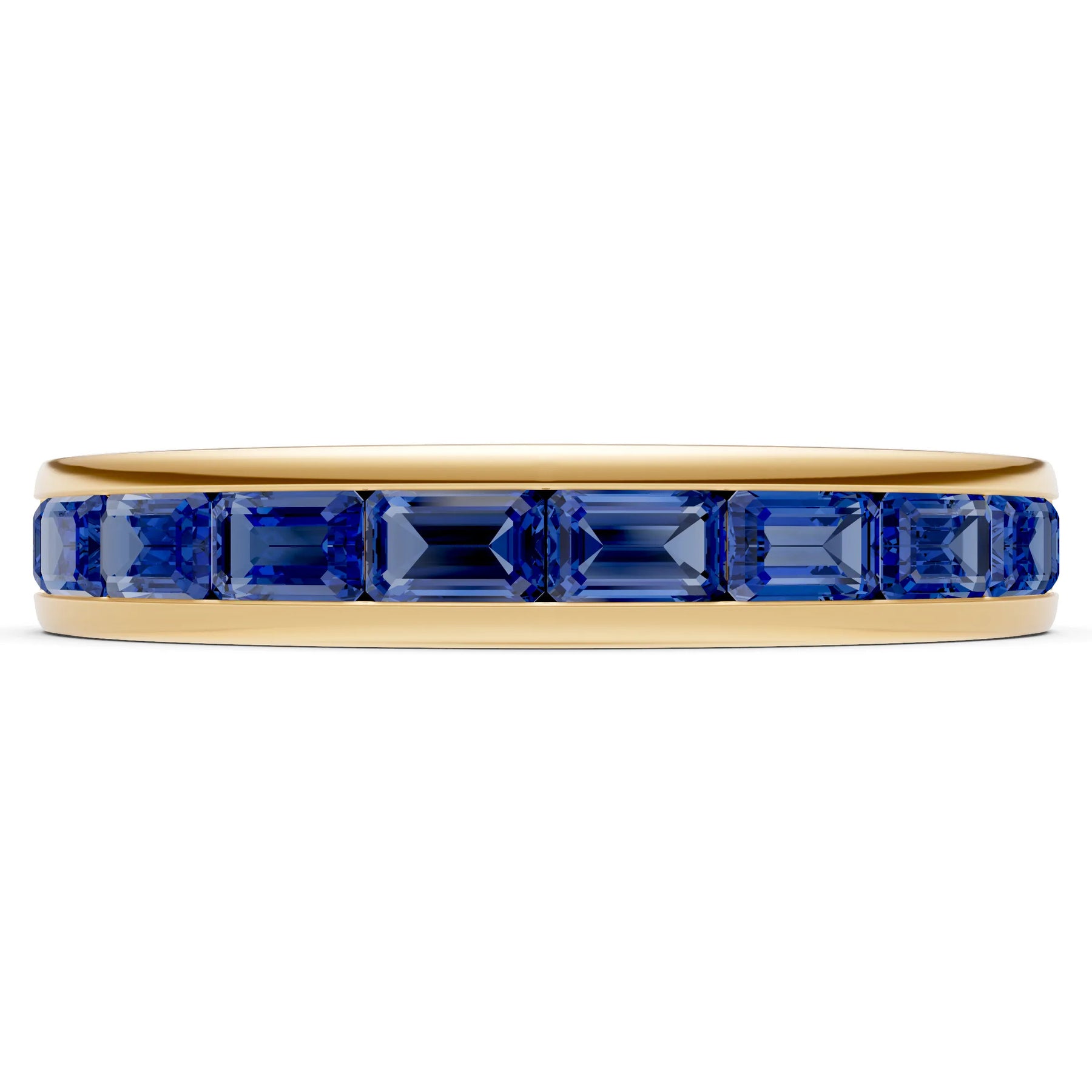 Blue Sapphire Emerald-Cut Channel Set Half Eternity Band