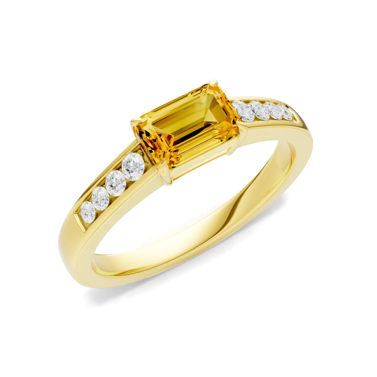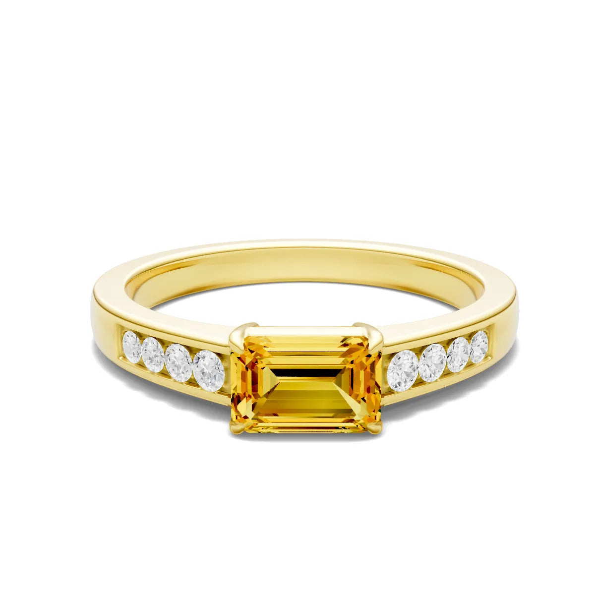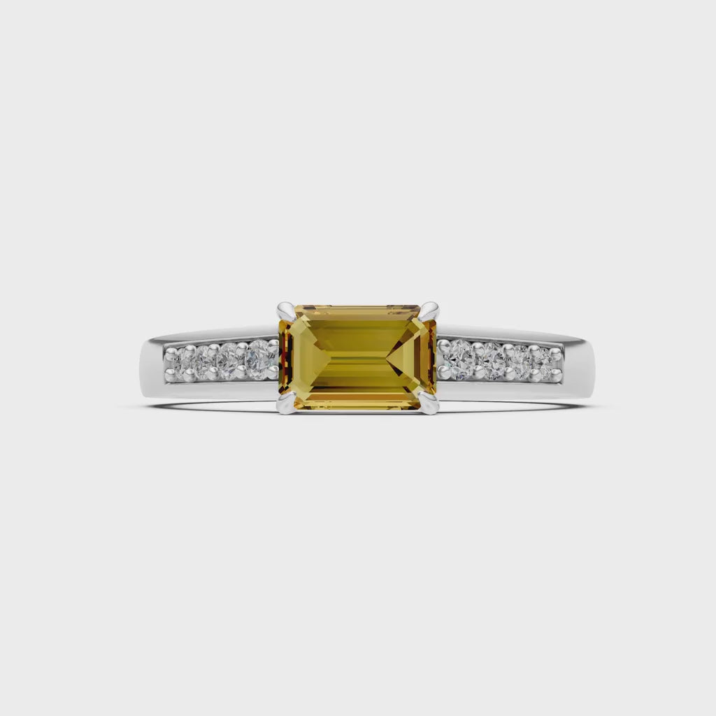 Citrine East West Emerald Cut Gemstone Ring with Accents