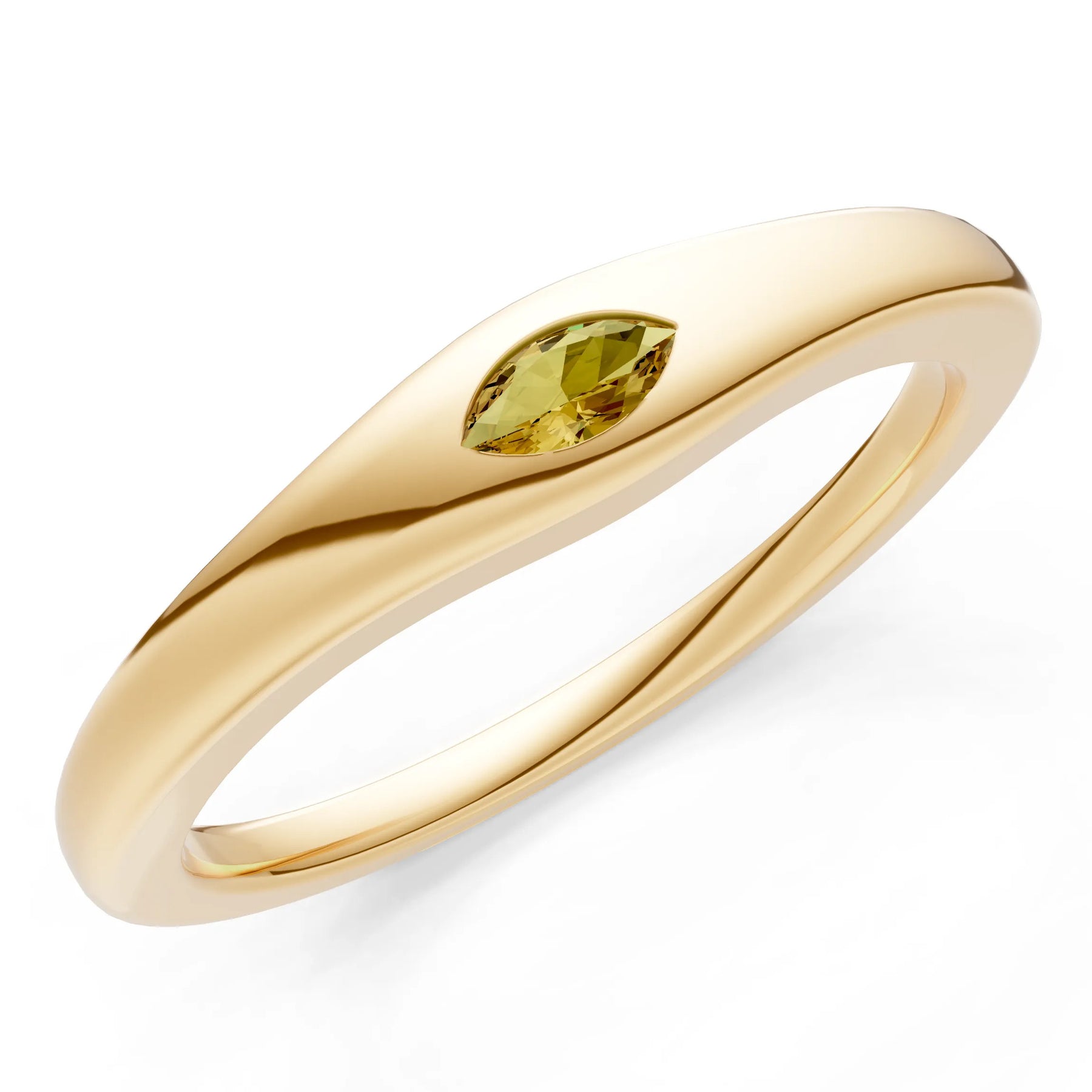 Citrine Flush-Set Marquise Gemstone Mini Signet Ring