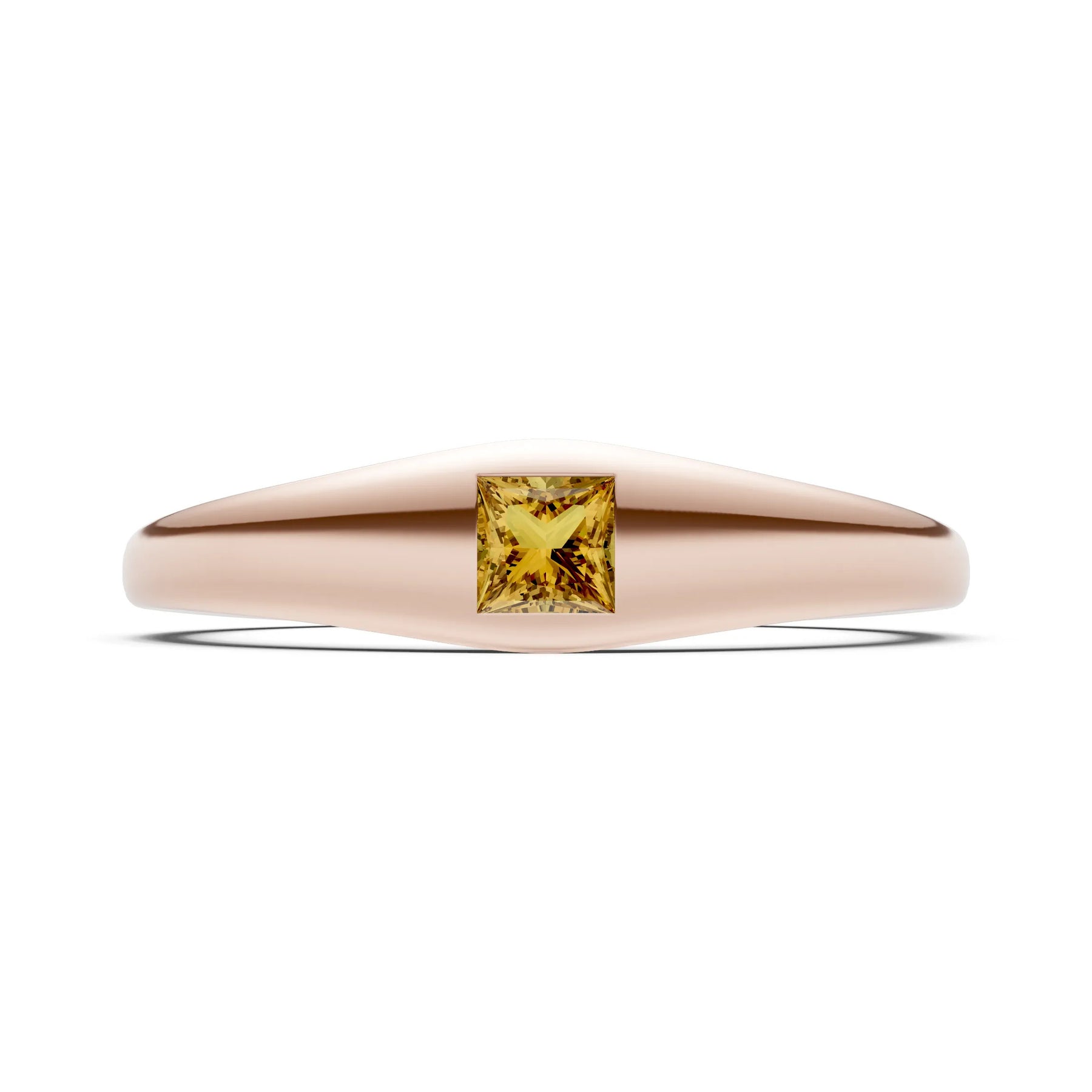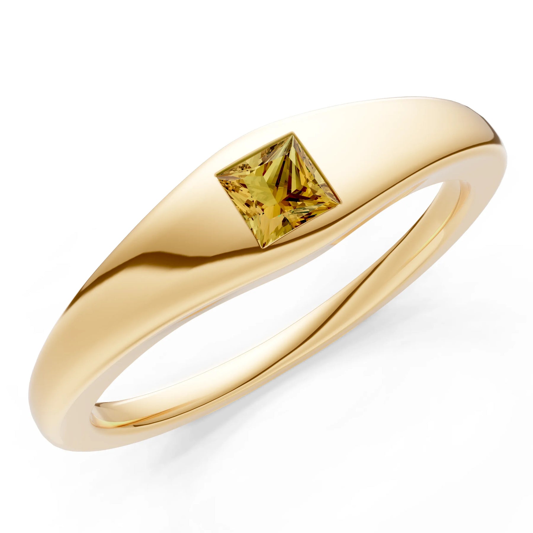 Citrine Flush-Set Princess Cut Gemstone Mini Signet Ring
