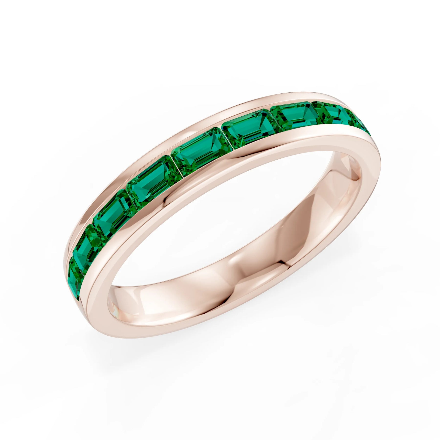Emerald Emerald-Cut Channel Set Half Eternity Band