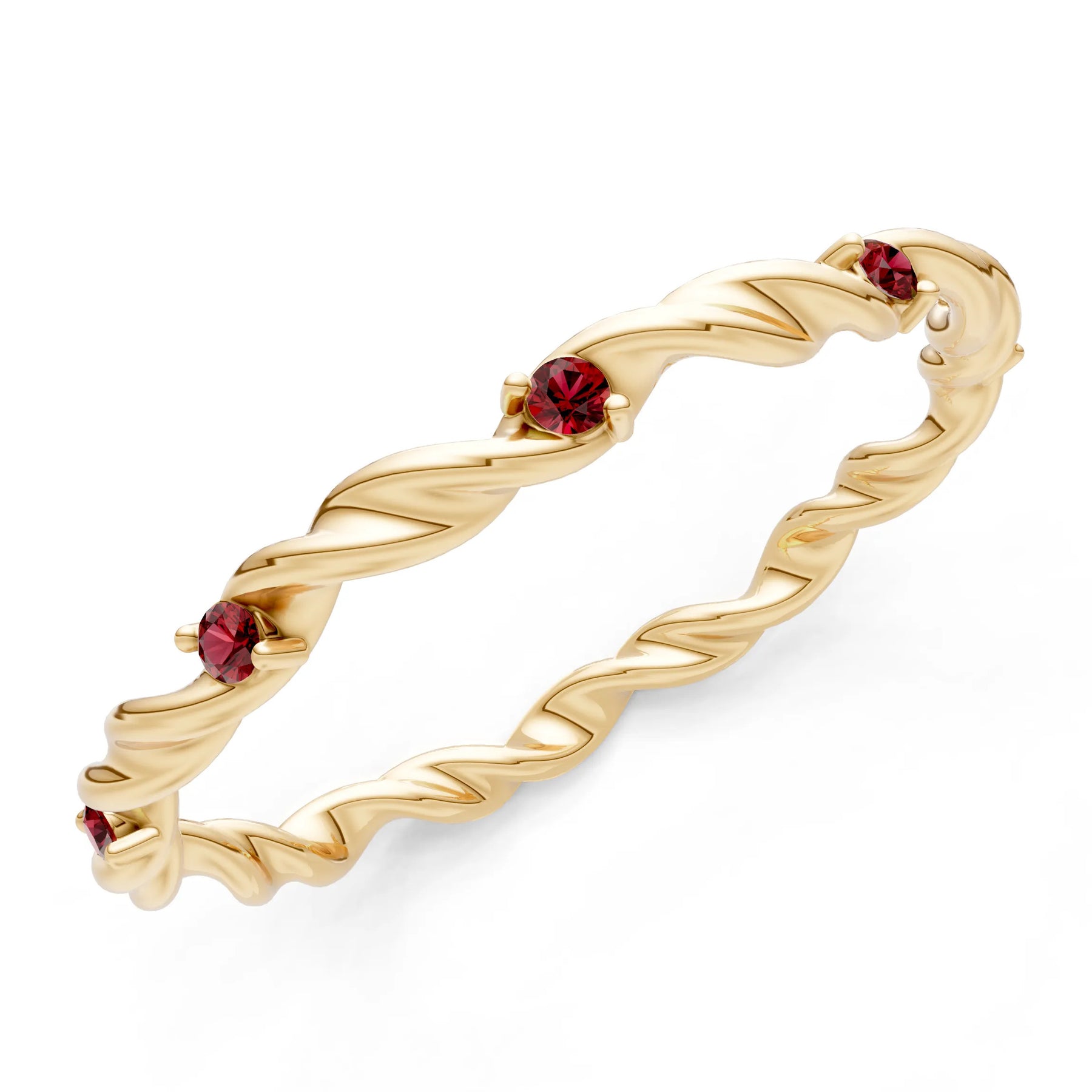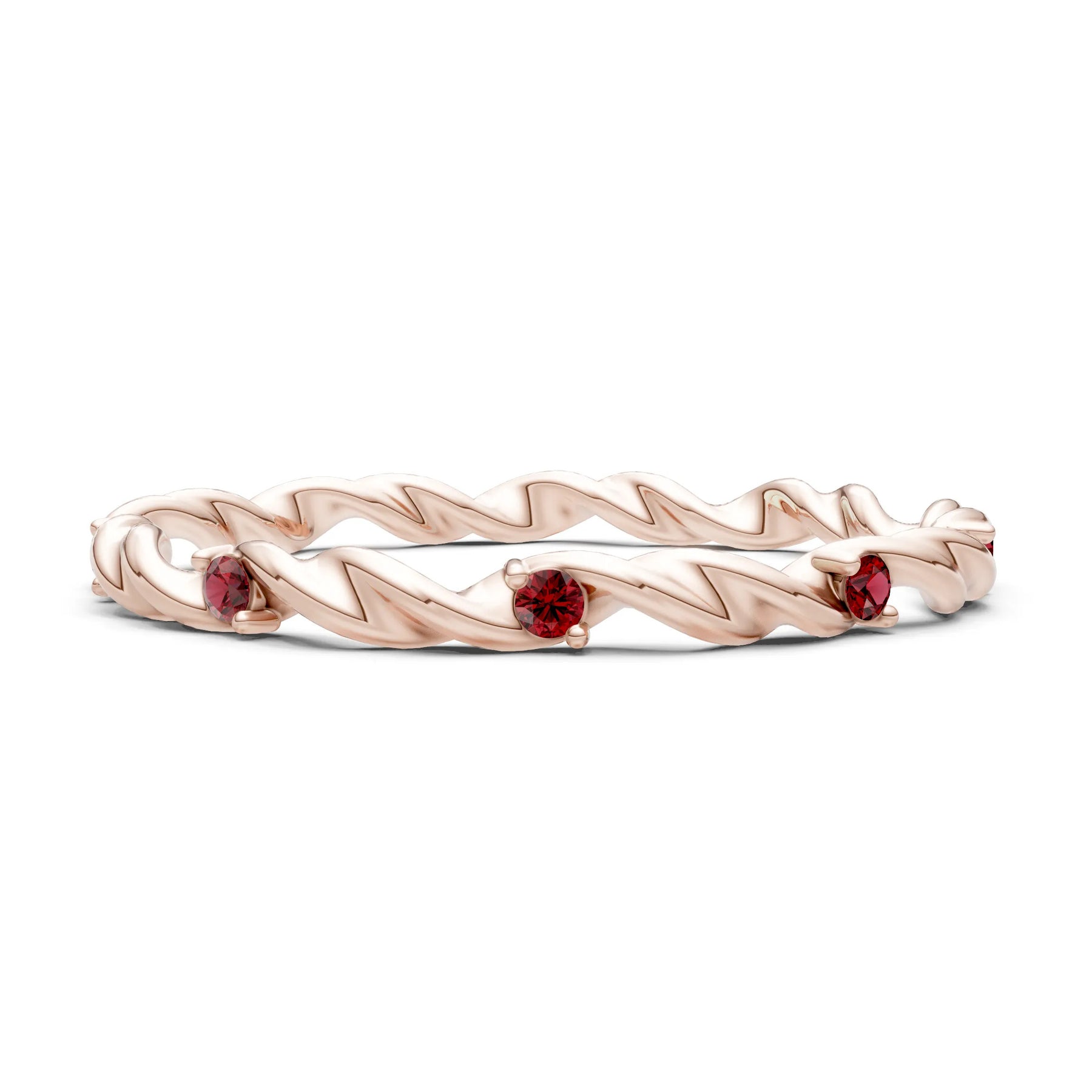 Garnet Dainty Rope Twist Gemstone Band