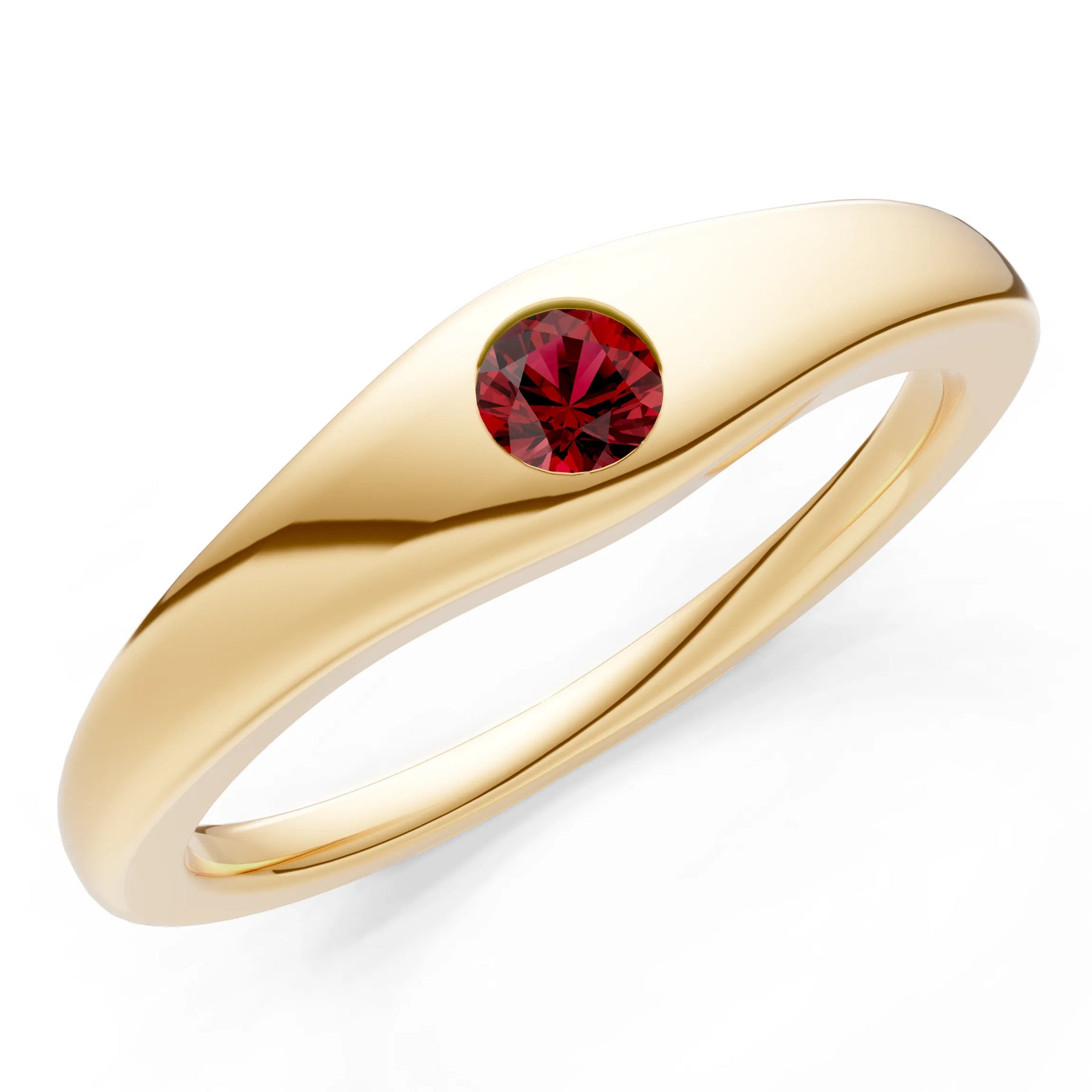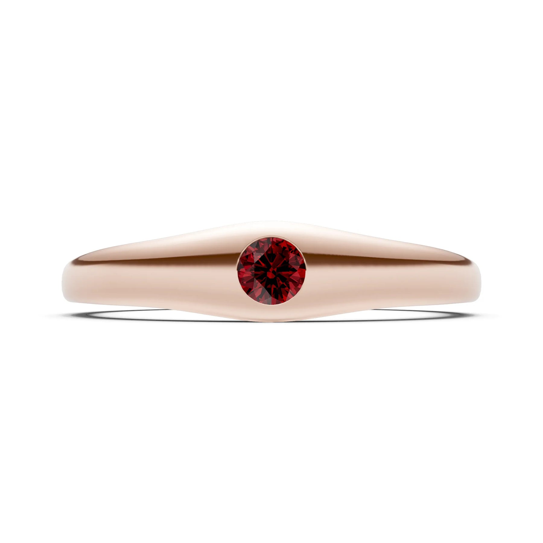 Garnet Flush-Set Round Gemstone Mini Signet Ring