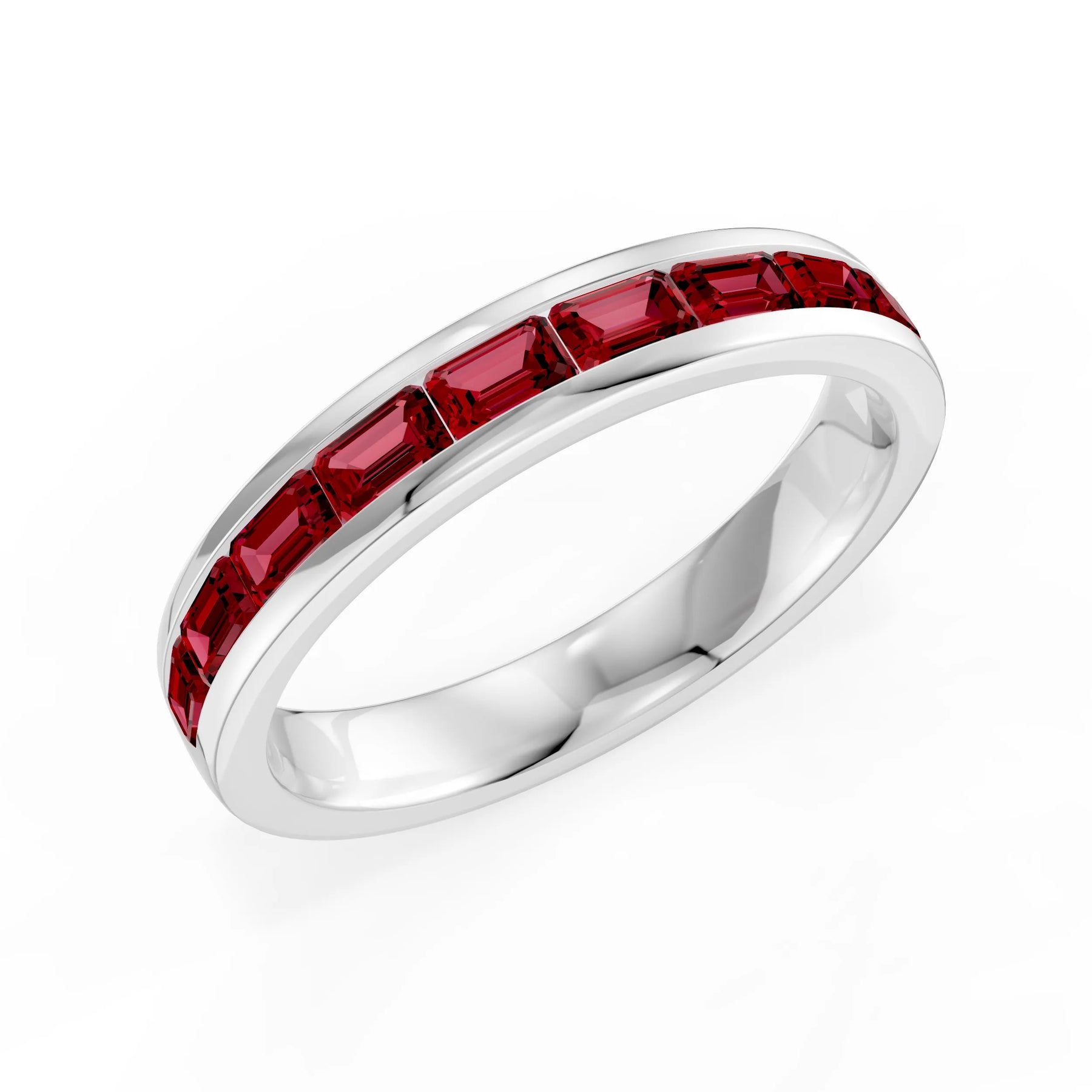 Garnet Emerald-Cut Channel Set Half Eternity Band