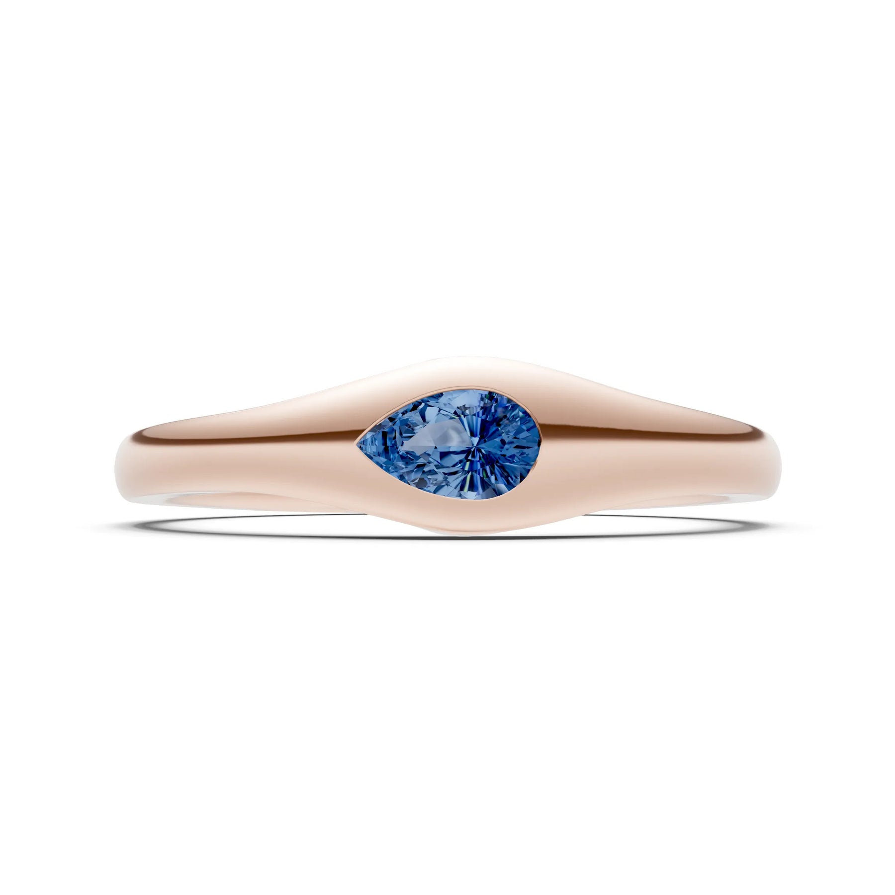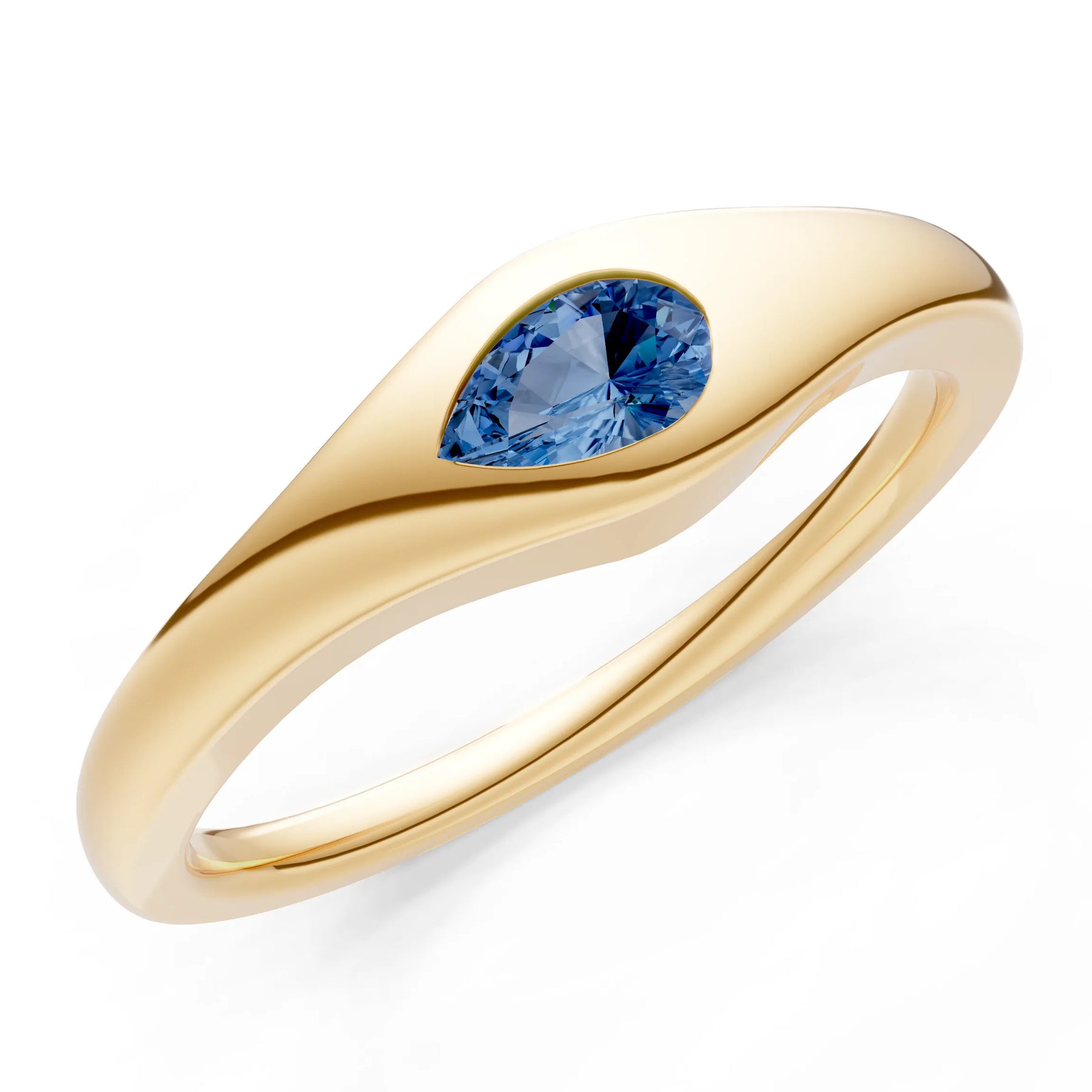 London Blue Topaz Flush-Set Pear Gemstone Mini Signet Ring