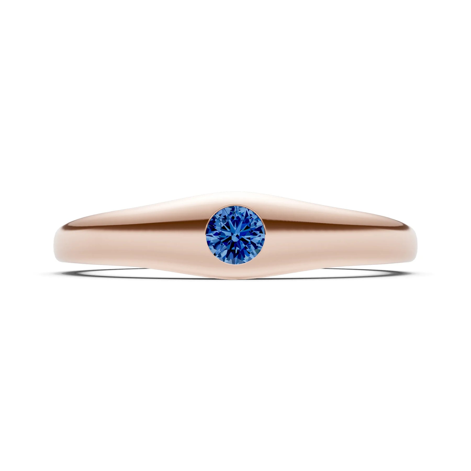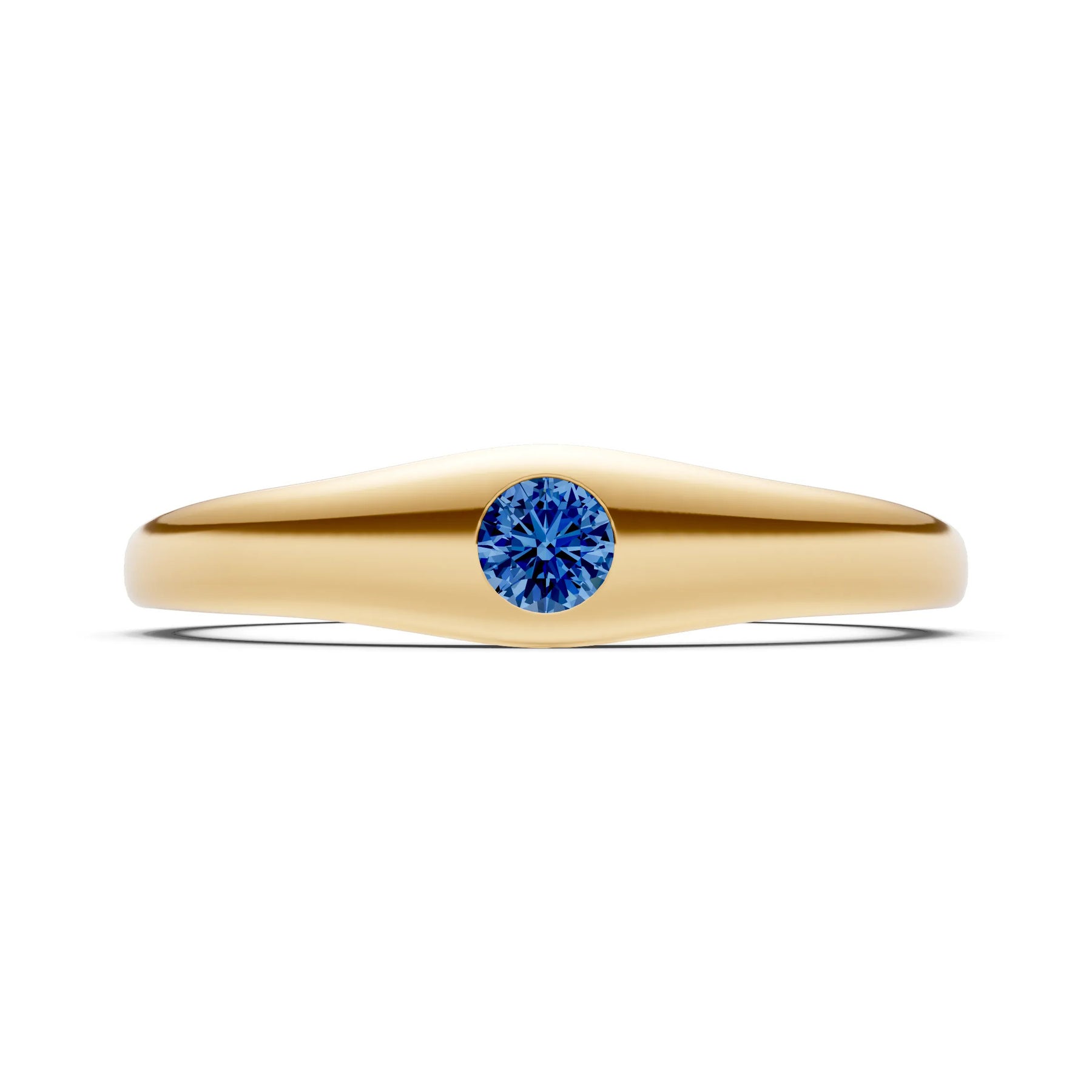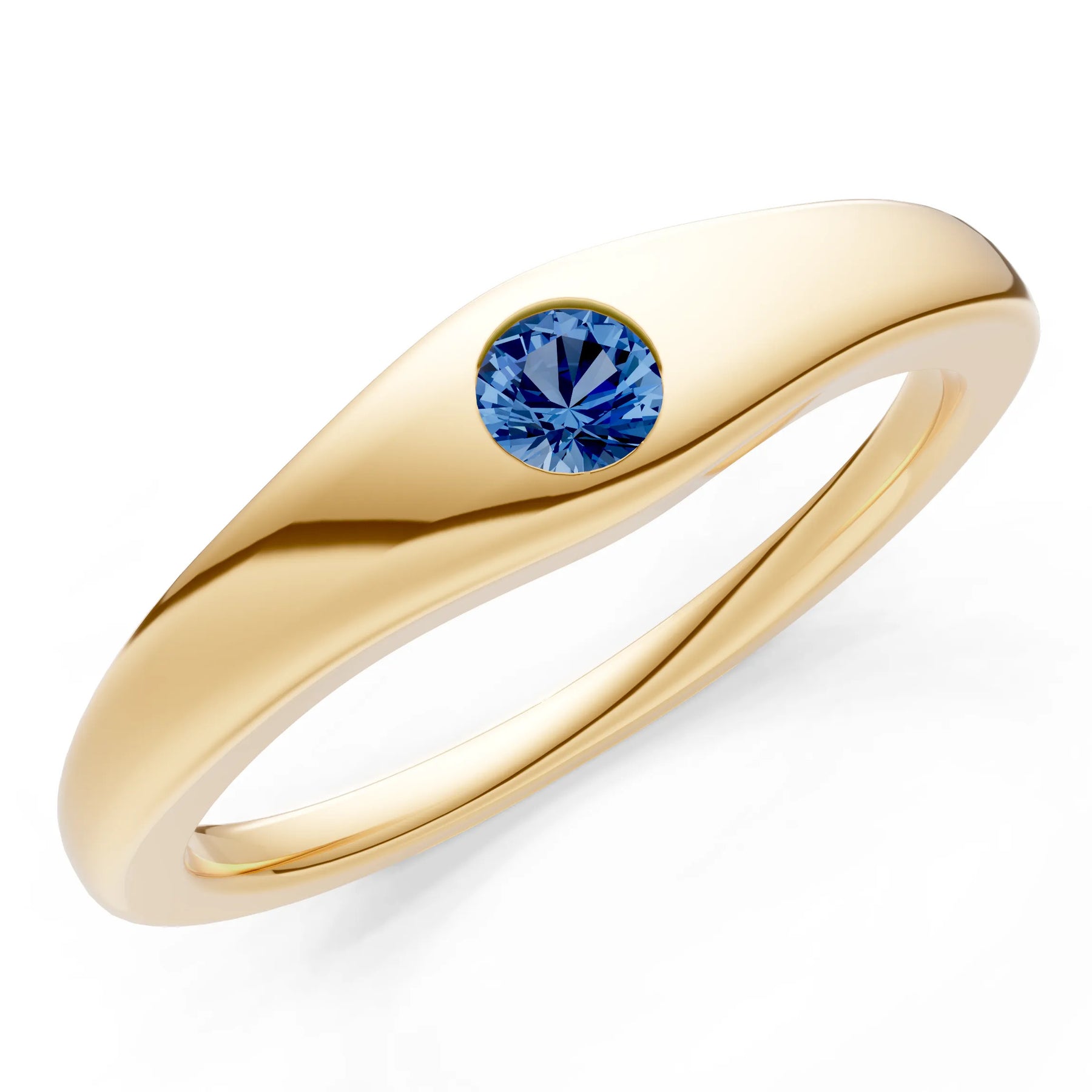 London Blue Topaz Flush-Set Round Gemstone Mini Signet Ring