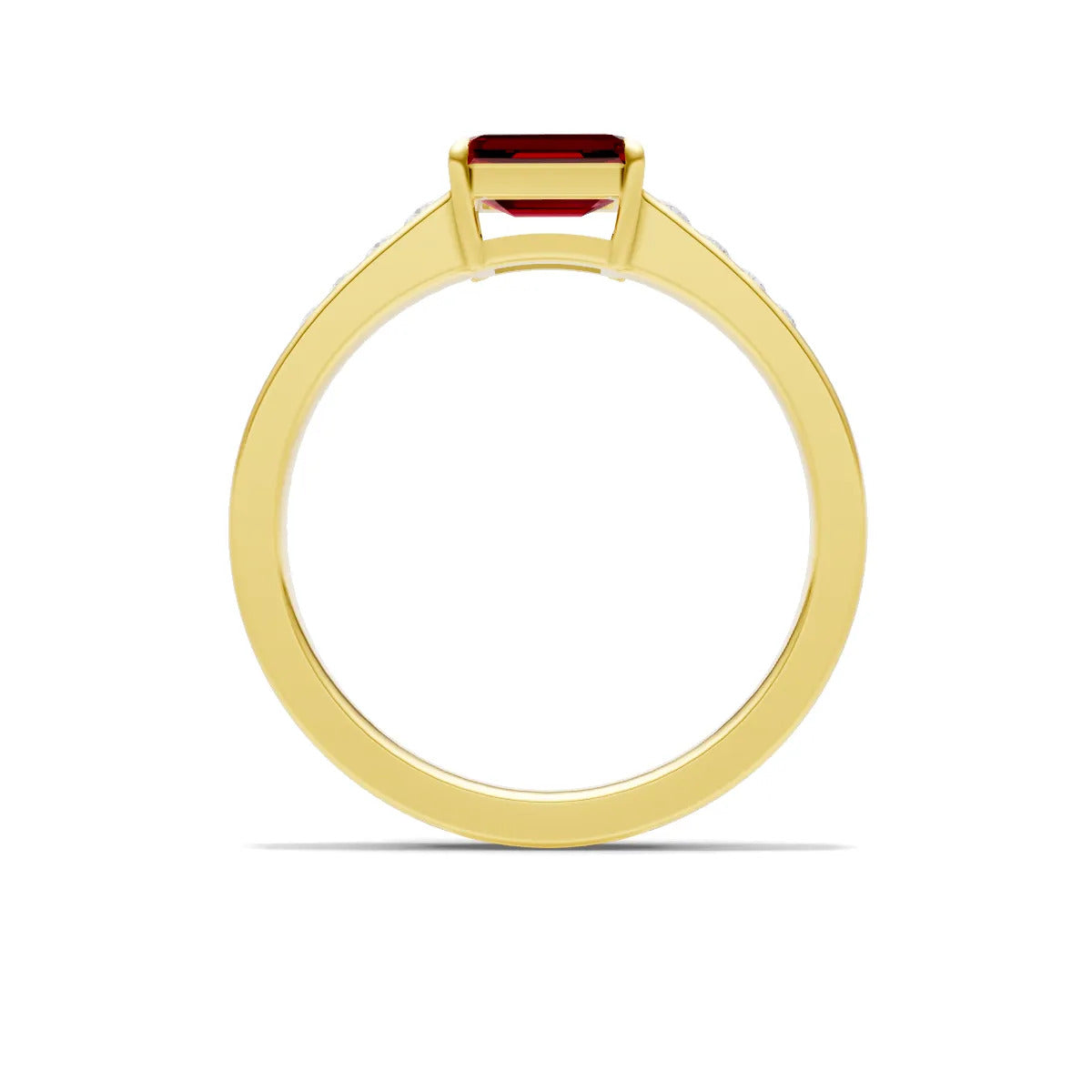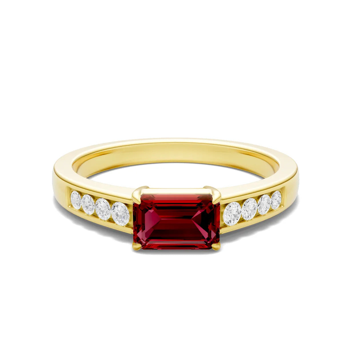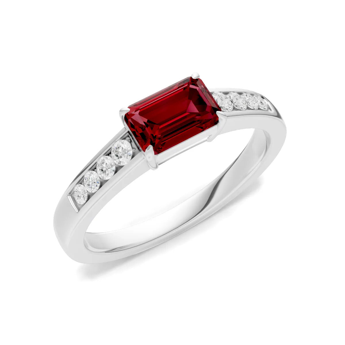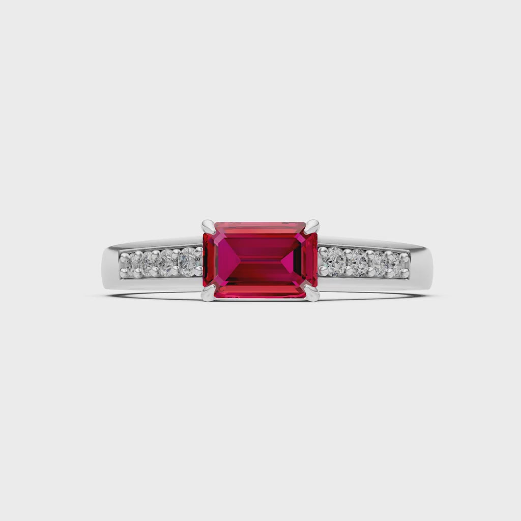 Ruby East West Emerald Cut Gemstone Ring with Accents
