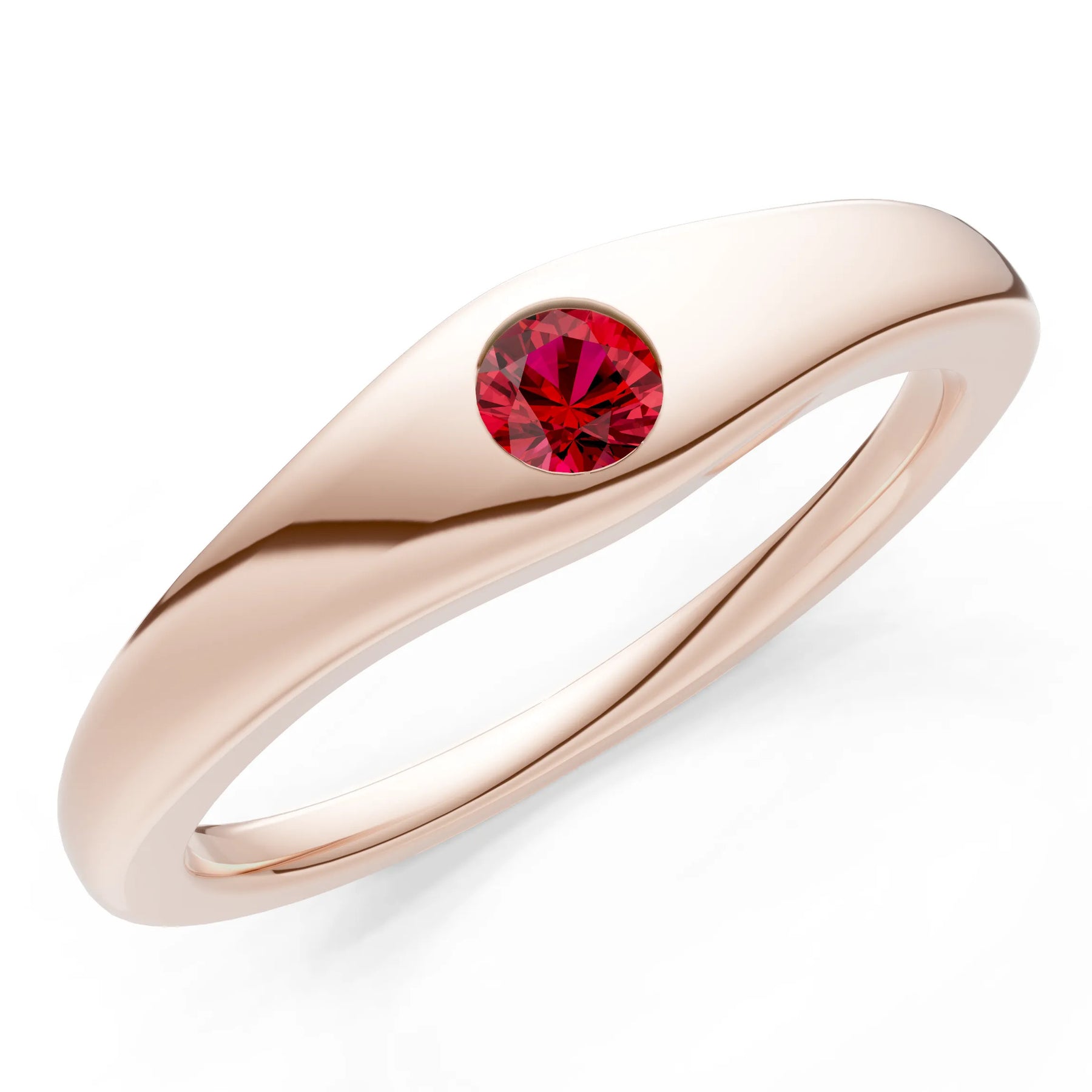 Ruby Flush-Set Round Gemstone Mini Signet Ring