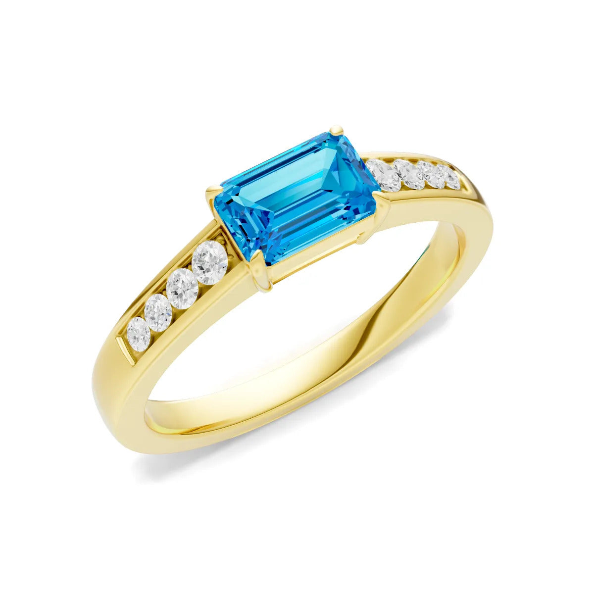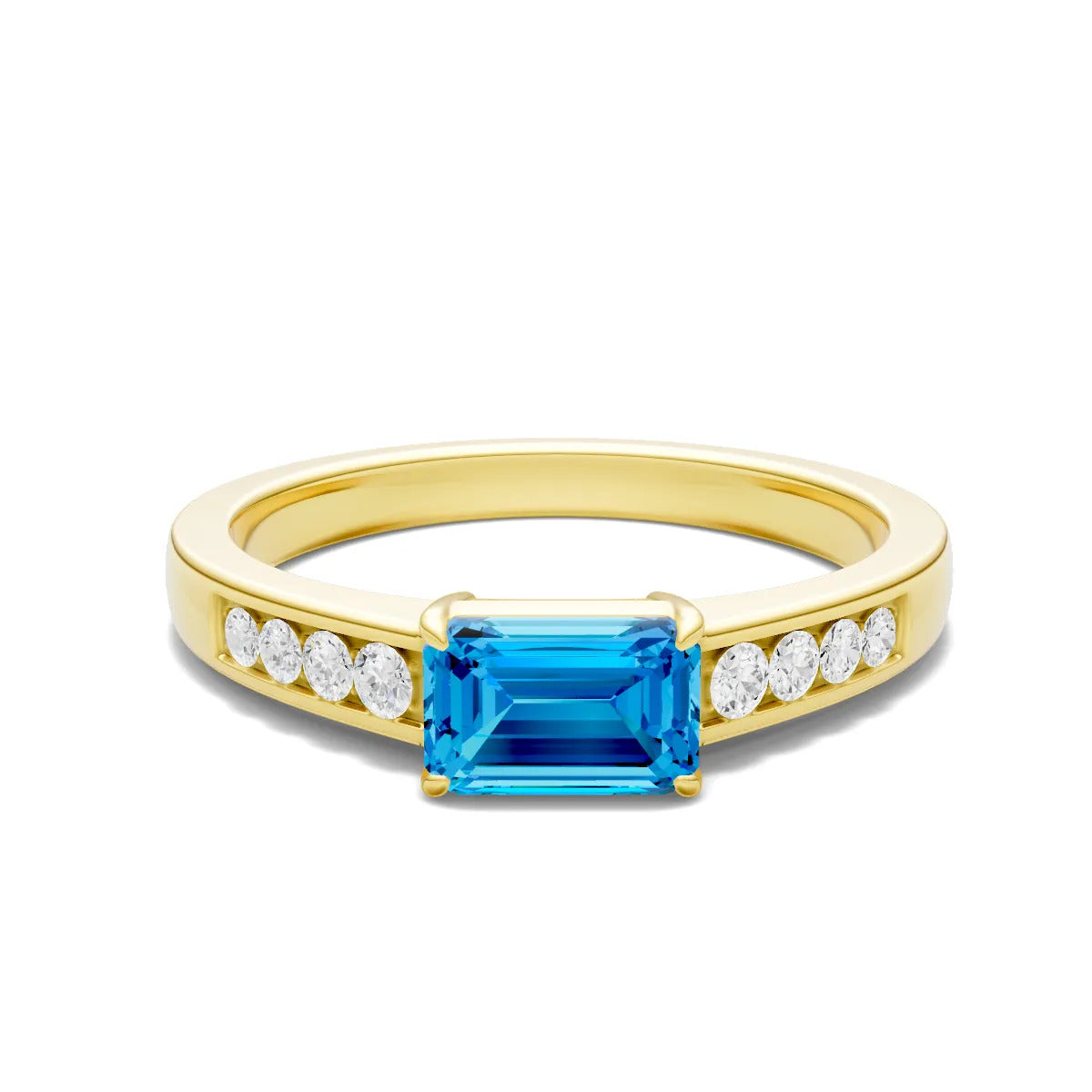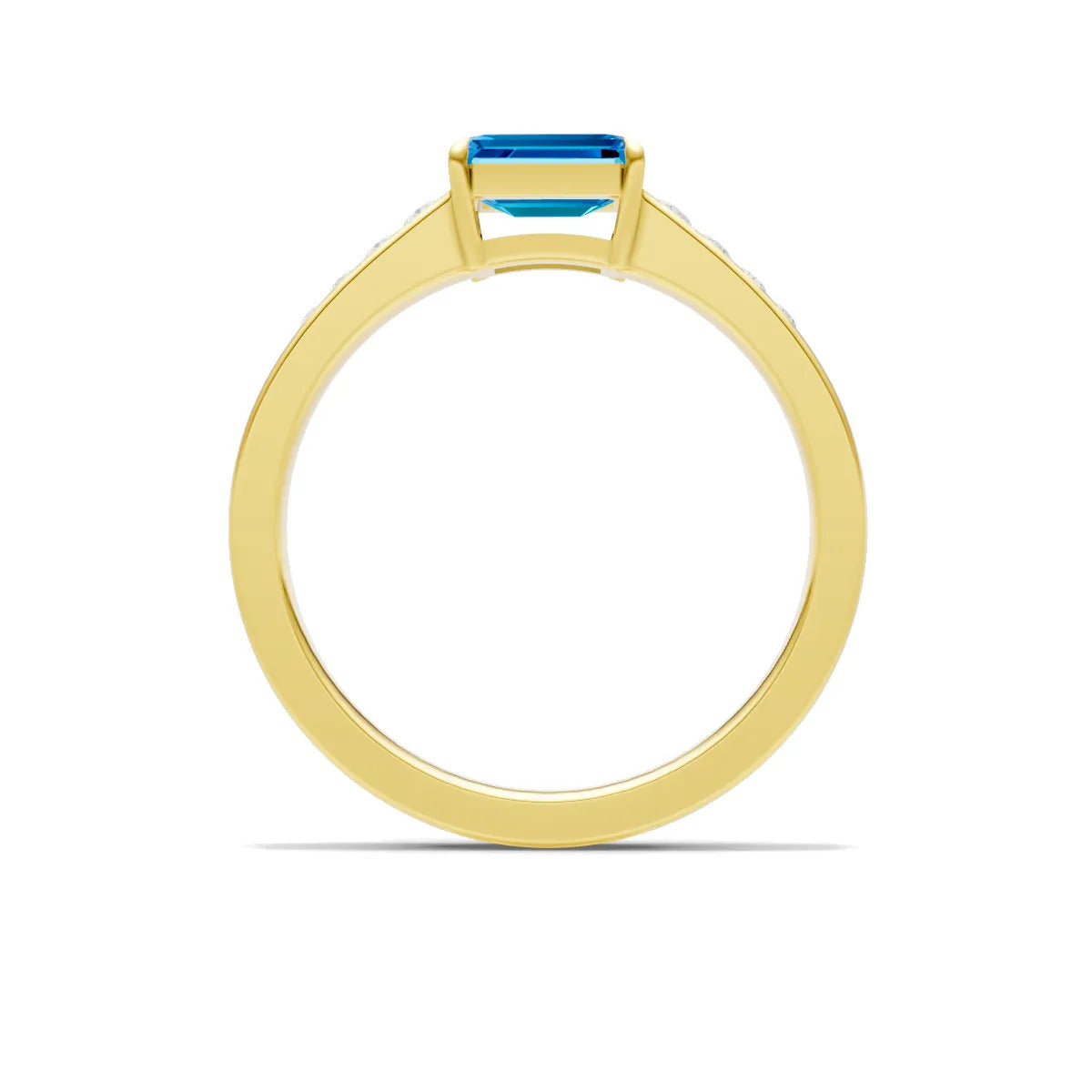 Swiss Blue Topaz East West Emerald Cut Gemstone Ring with Accents