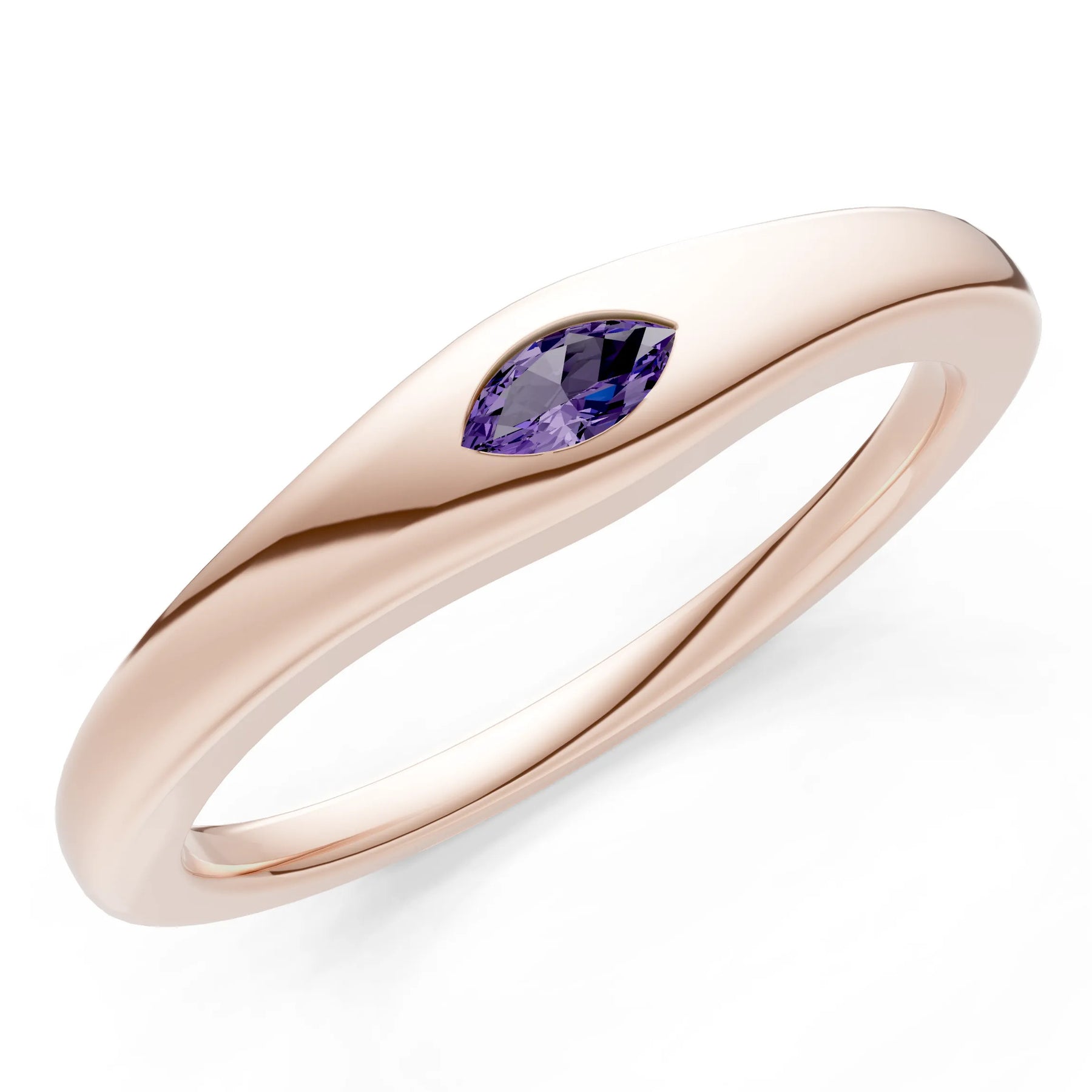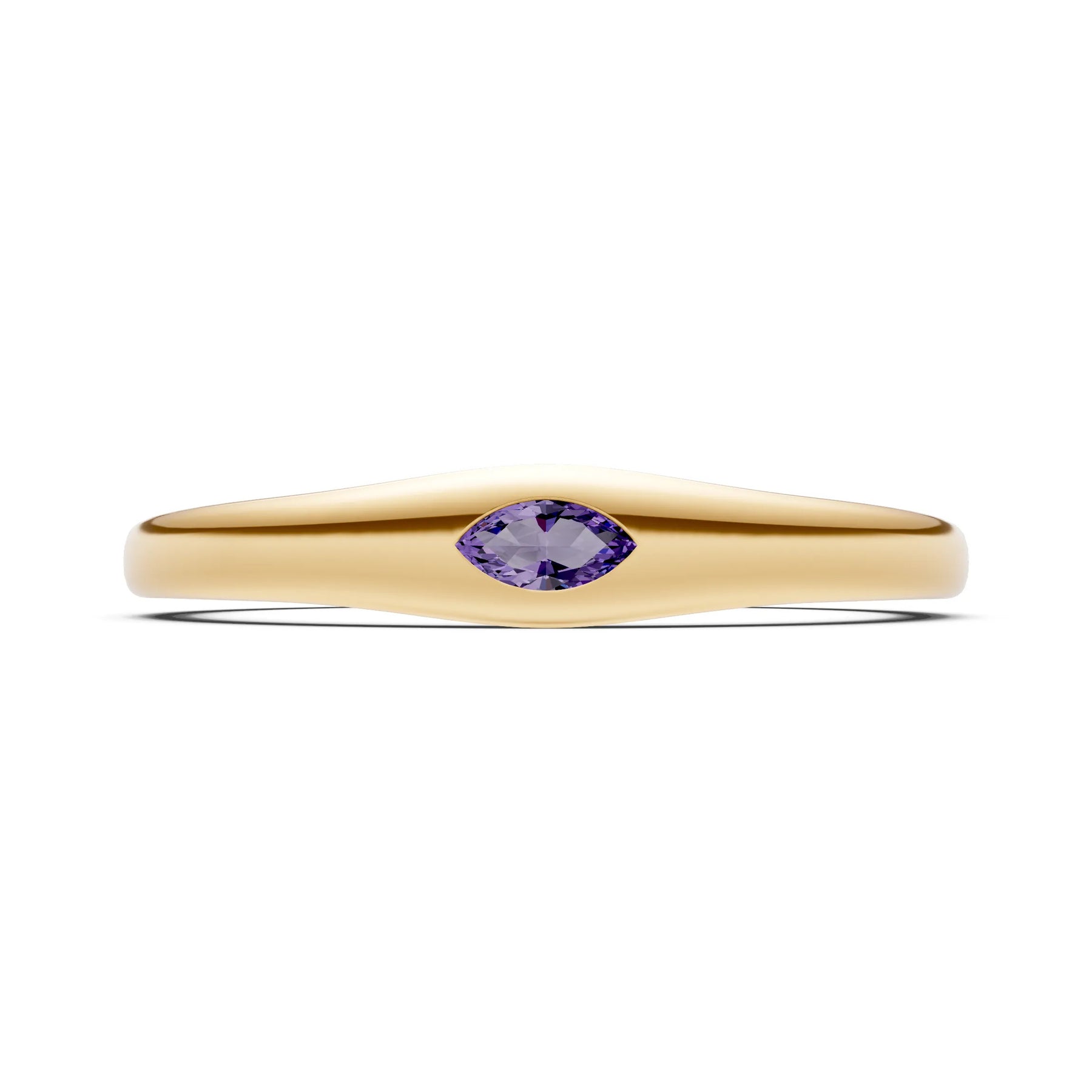 Amethyst Flush-Set Marquise Gemstone Mini Signet Ring