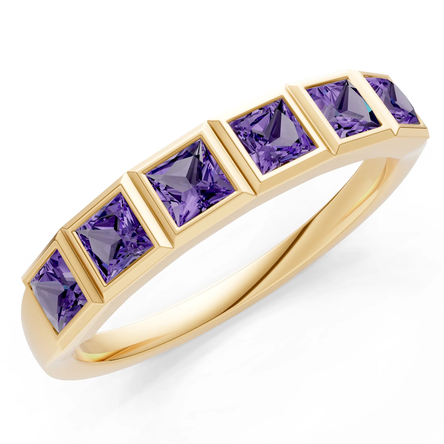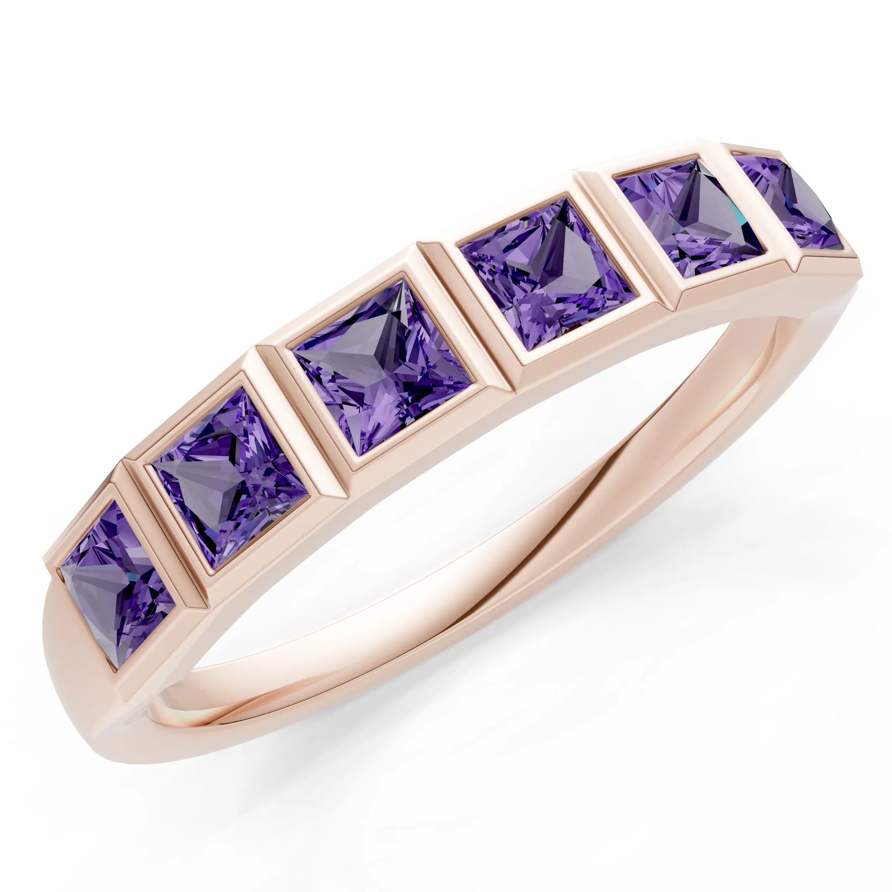 Amethyst Minimalist Bezel Set Princess Cut Half Eternity Band