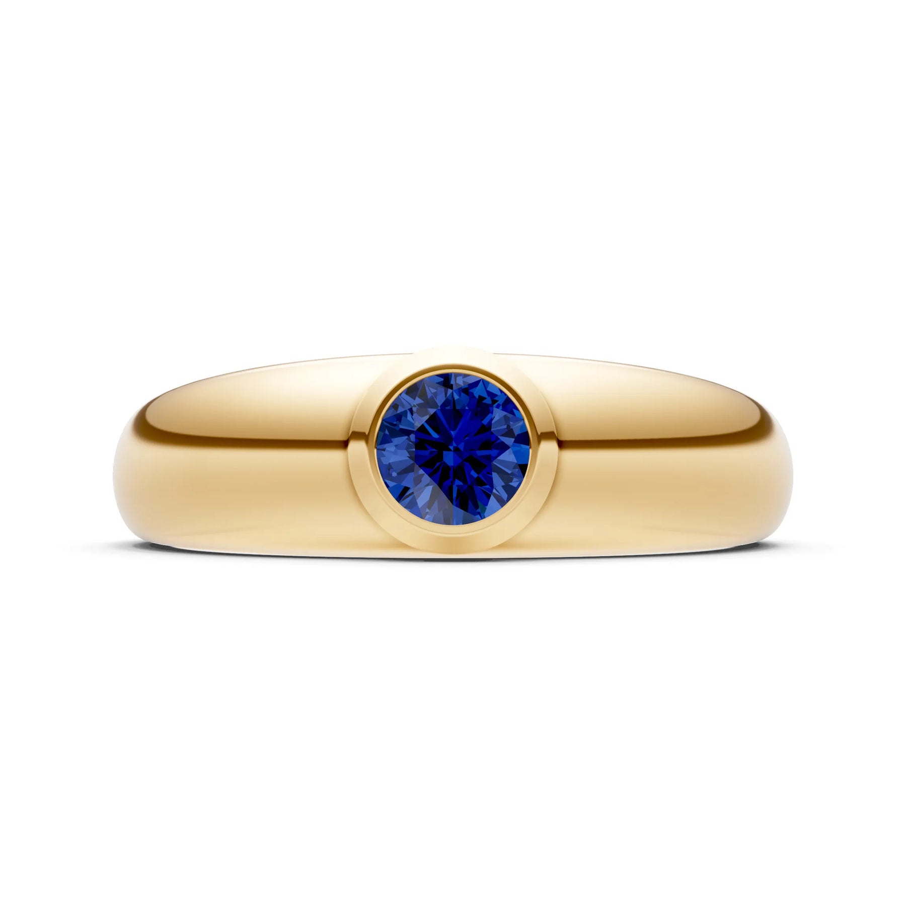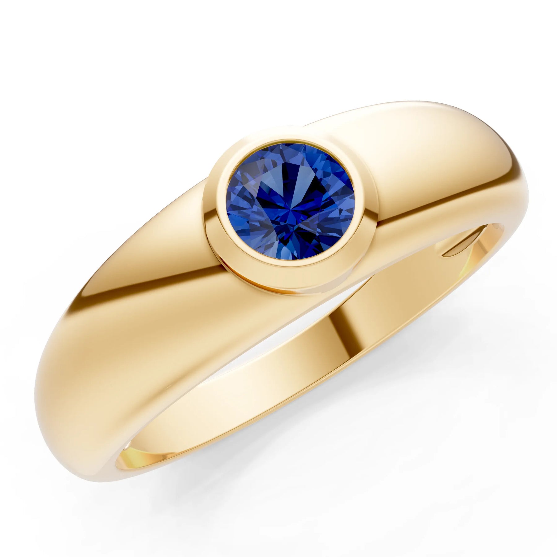 Blue Sapphire Bezel Set Round Cut Signet Ring