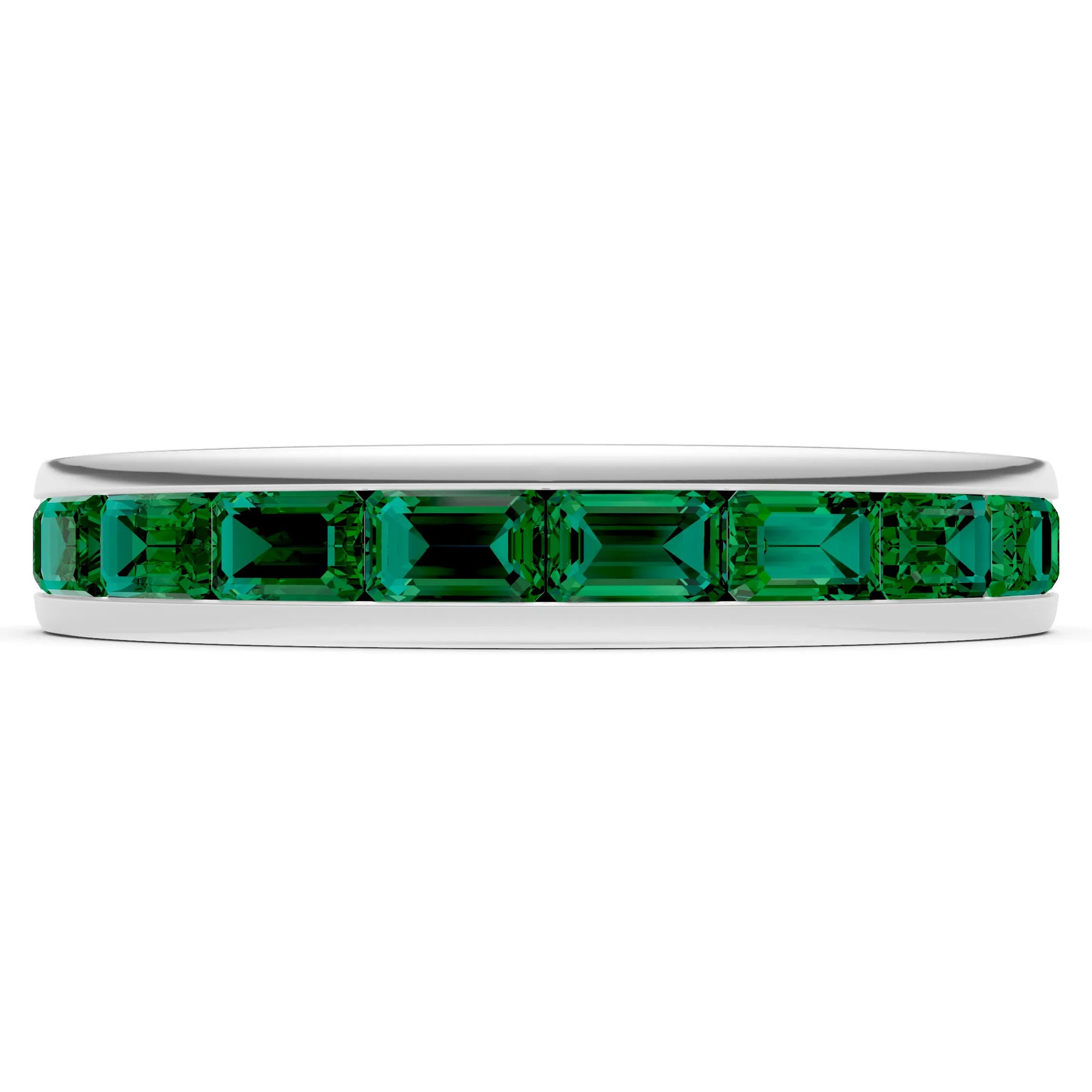 Emerald Minimalist Emerald-Cut Channel Set Half Eternity Band