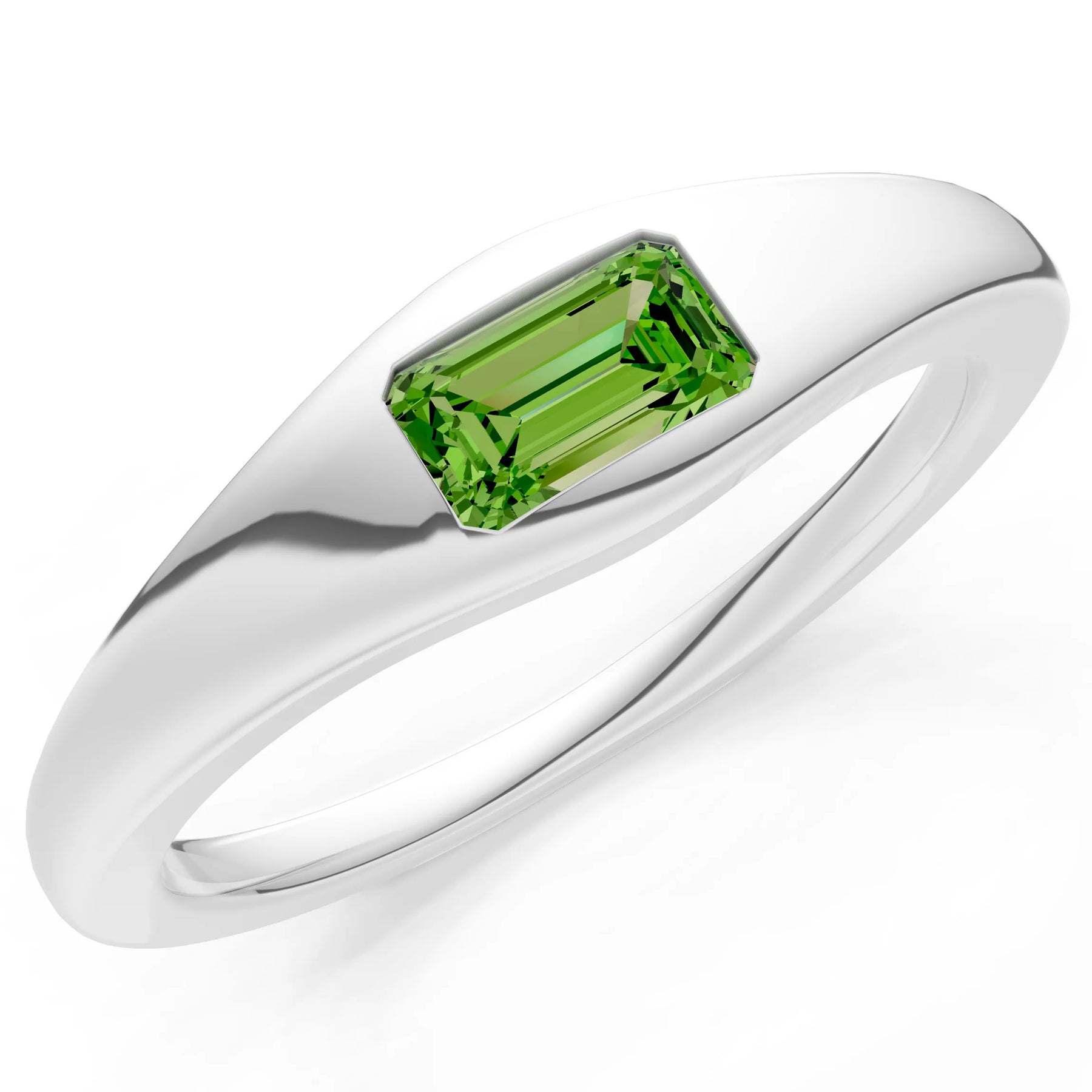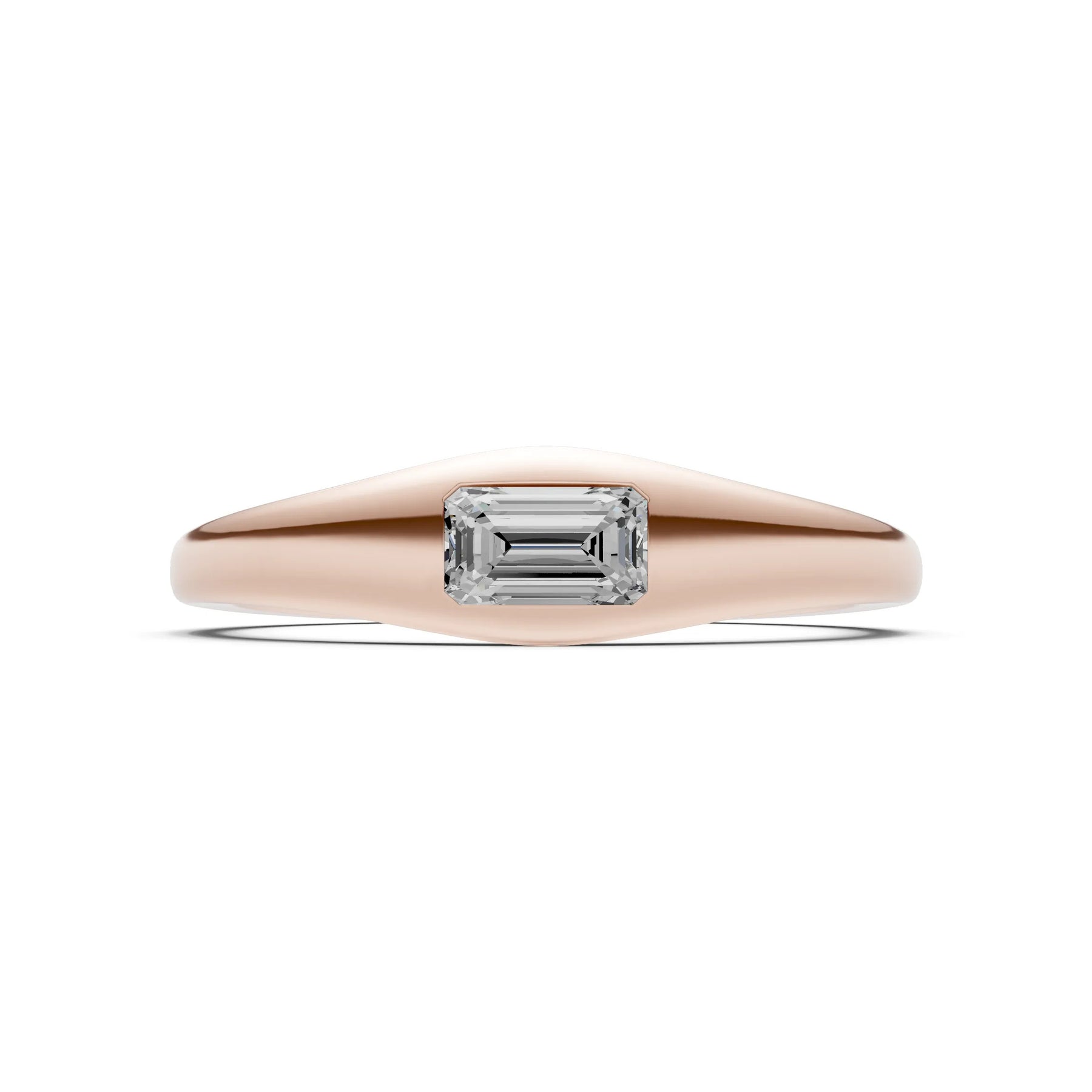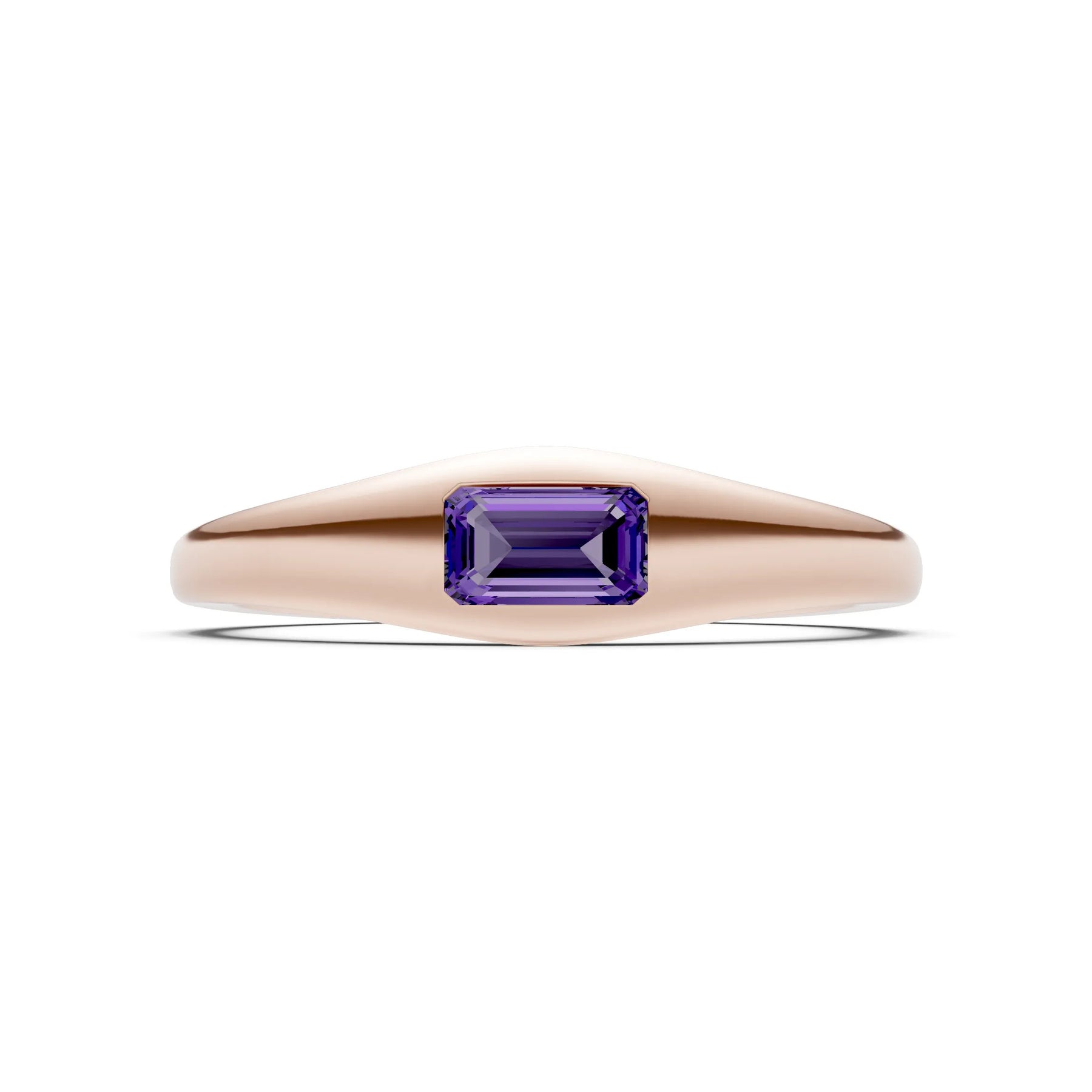 Flush-Set Emerald Cut Gemstone Mini Signet Ring