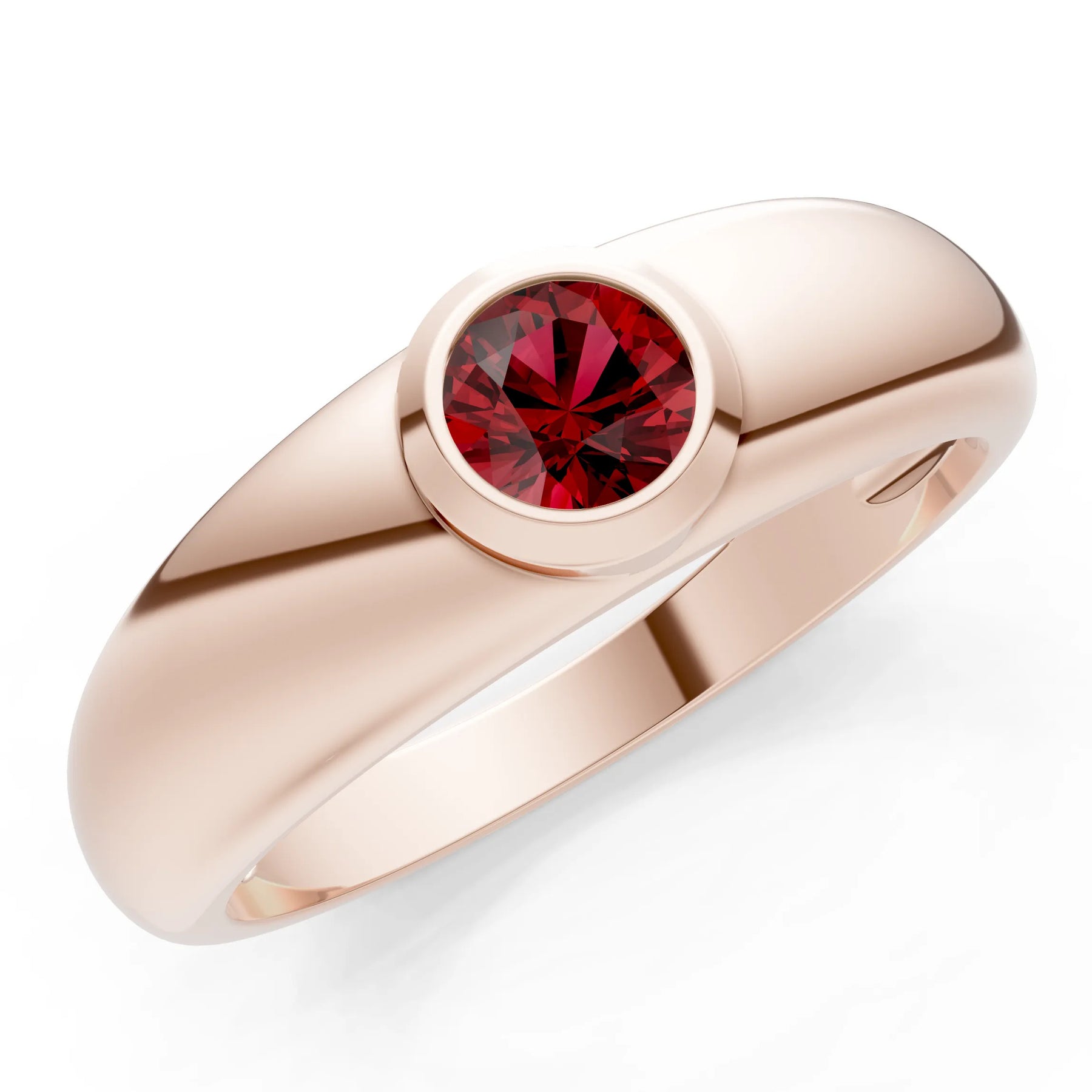 Garnet Bezel Set Round Cut Signet Ring
