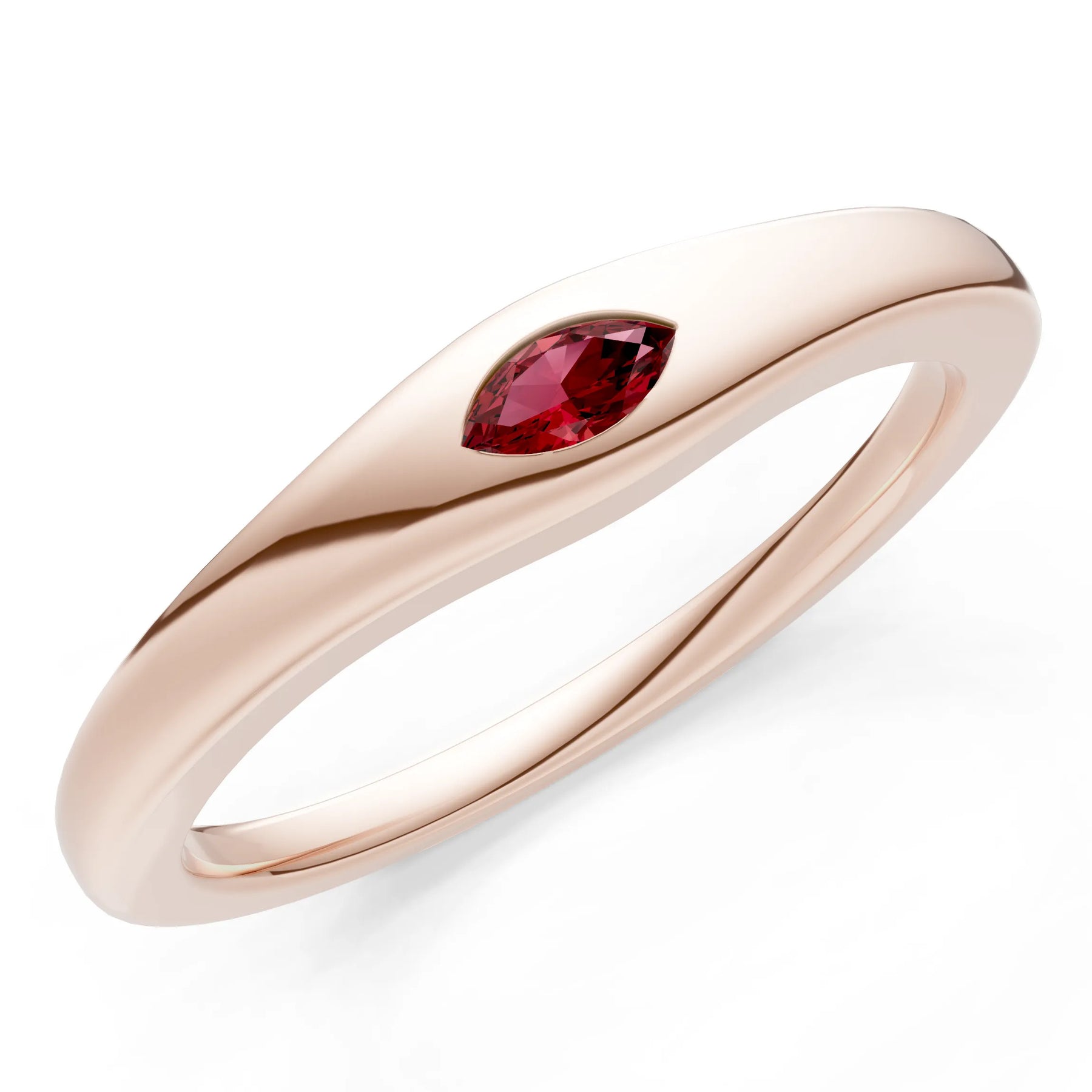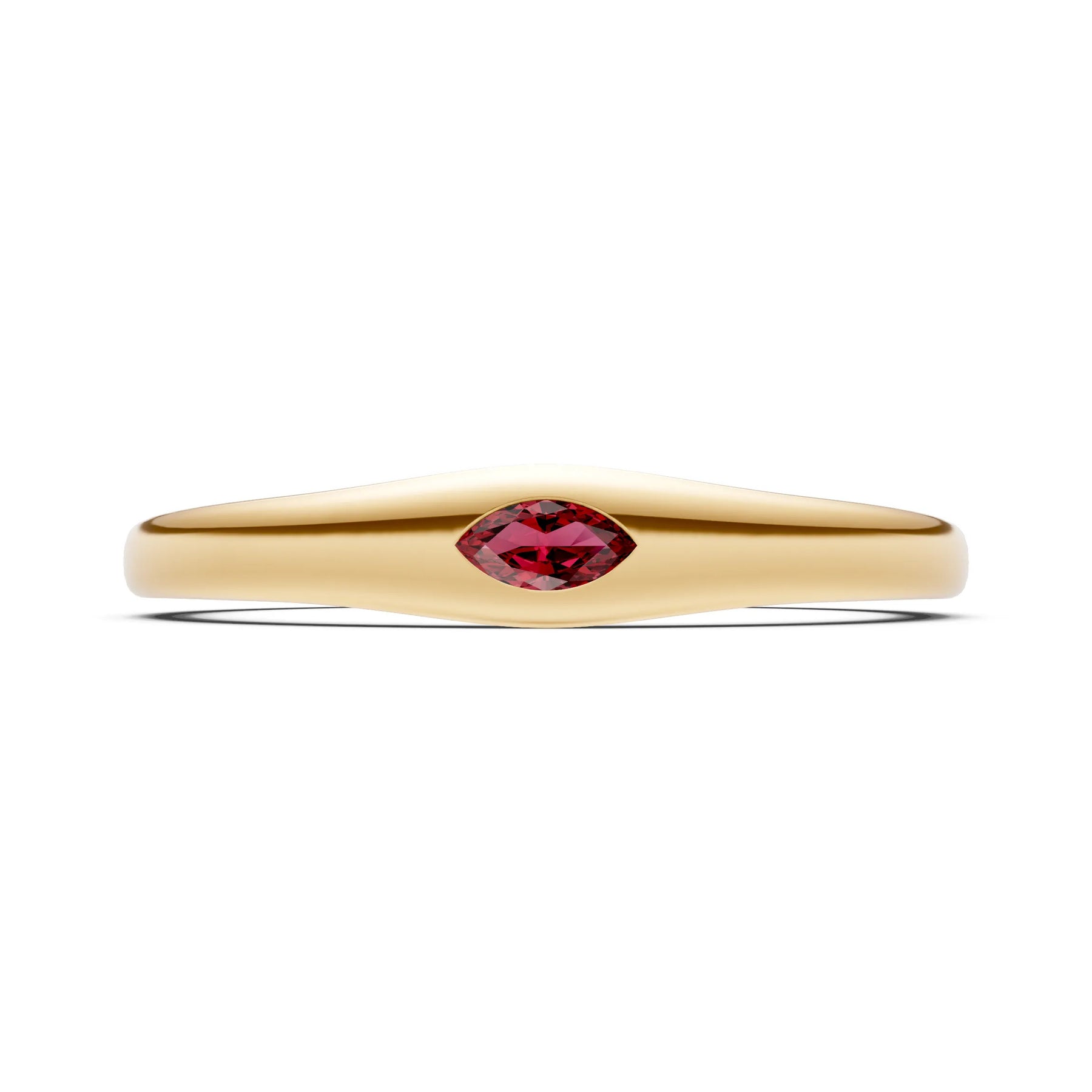 Garnet Flush-Set Marquise Gemstone Mini Signet Ring