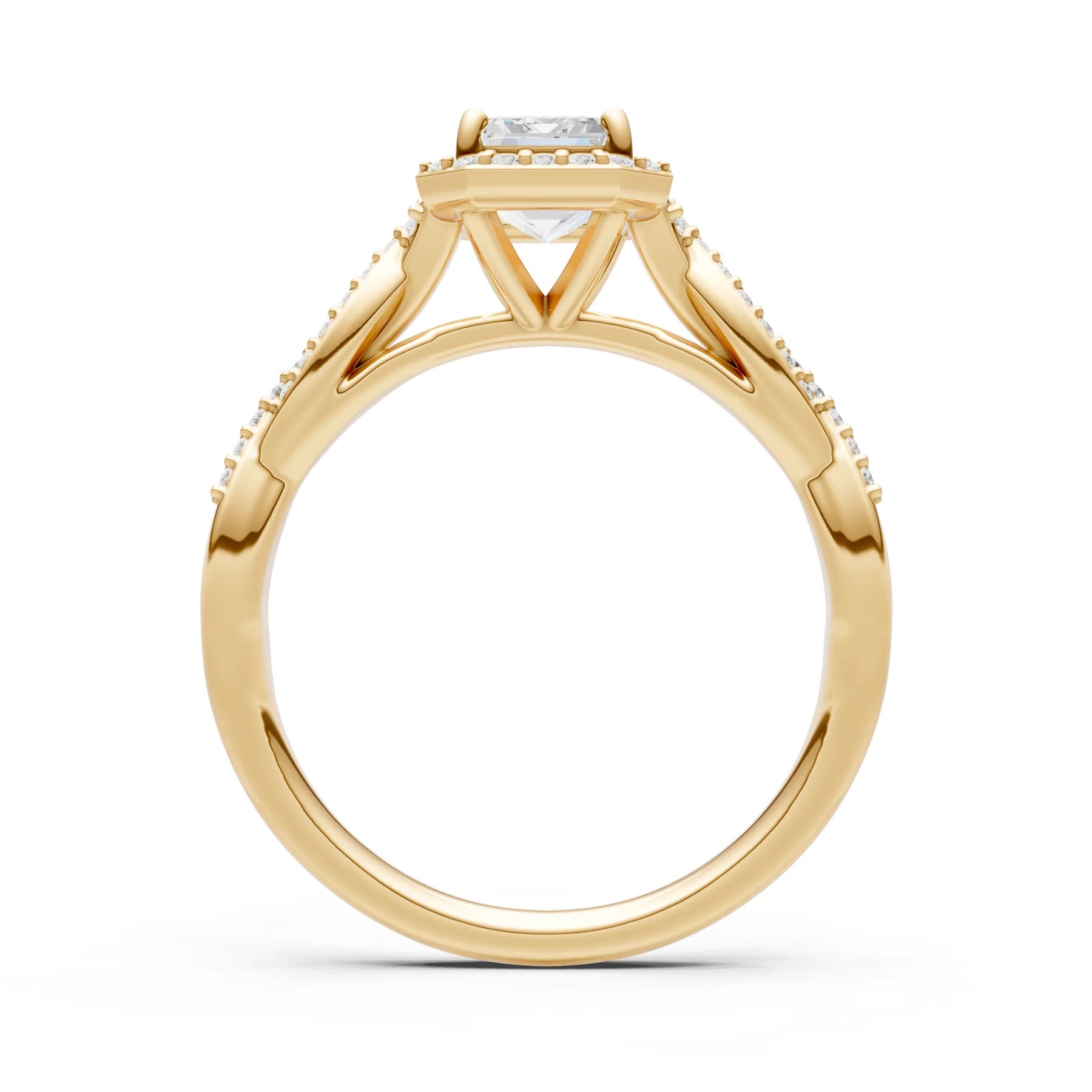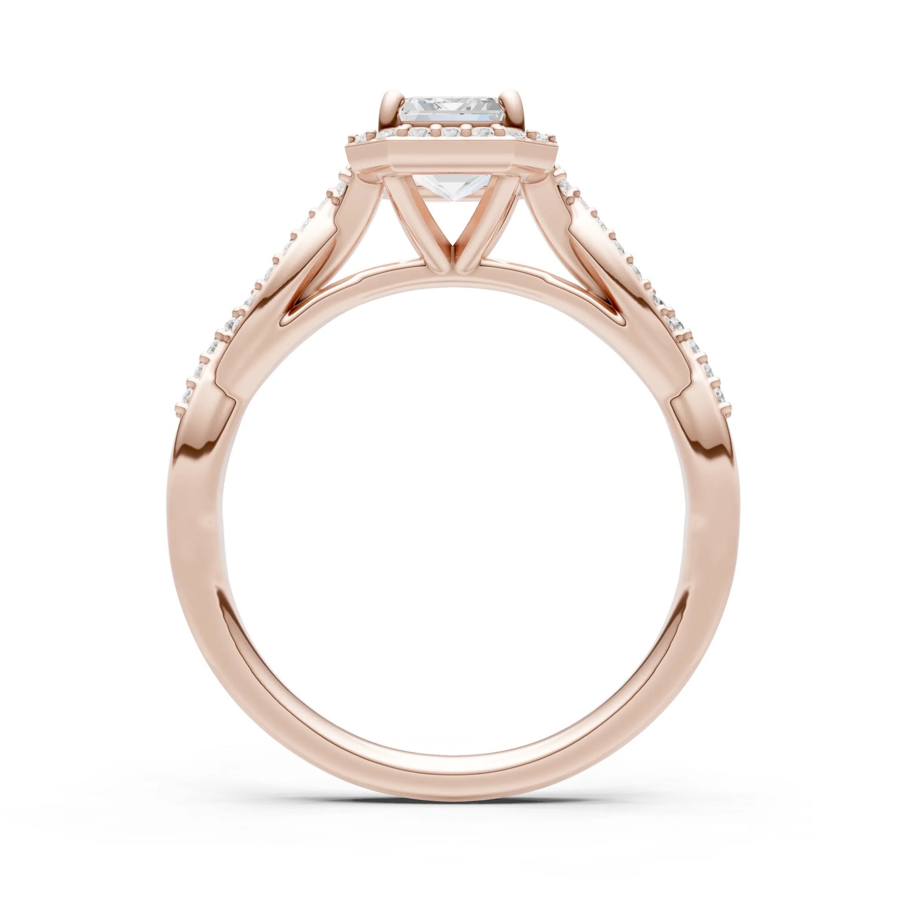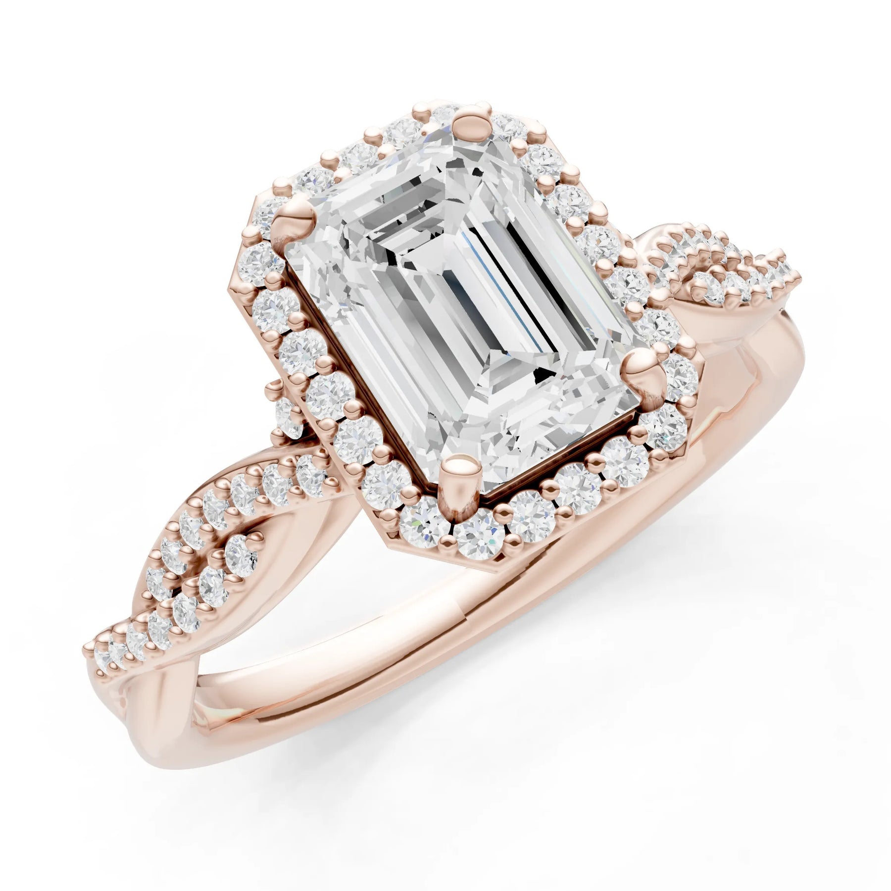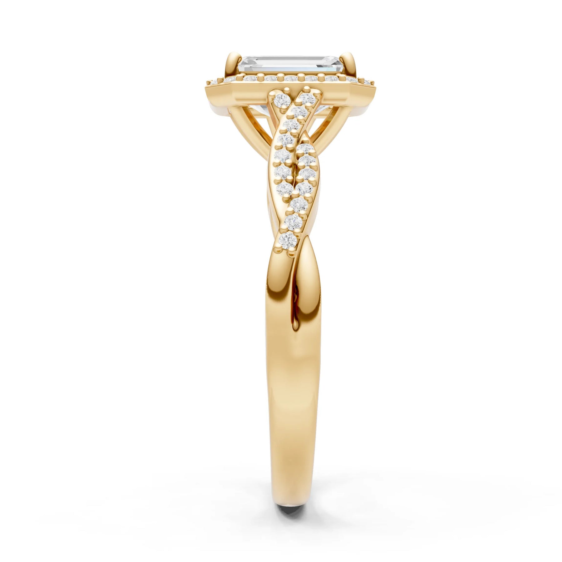 Moissanite Twisted Vine Solitaire Emerald Cut Halo Ring with Accent