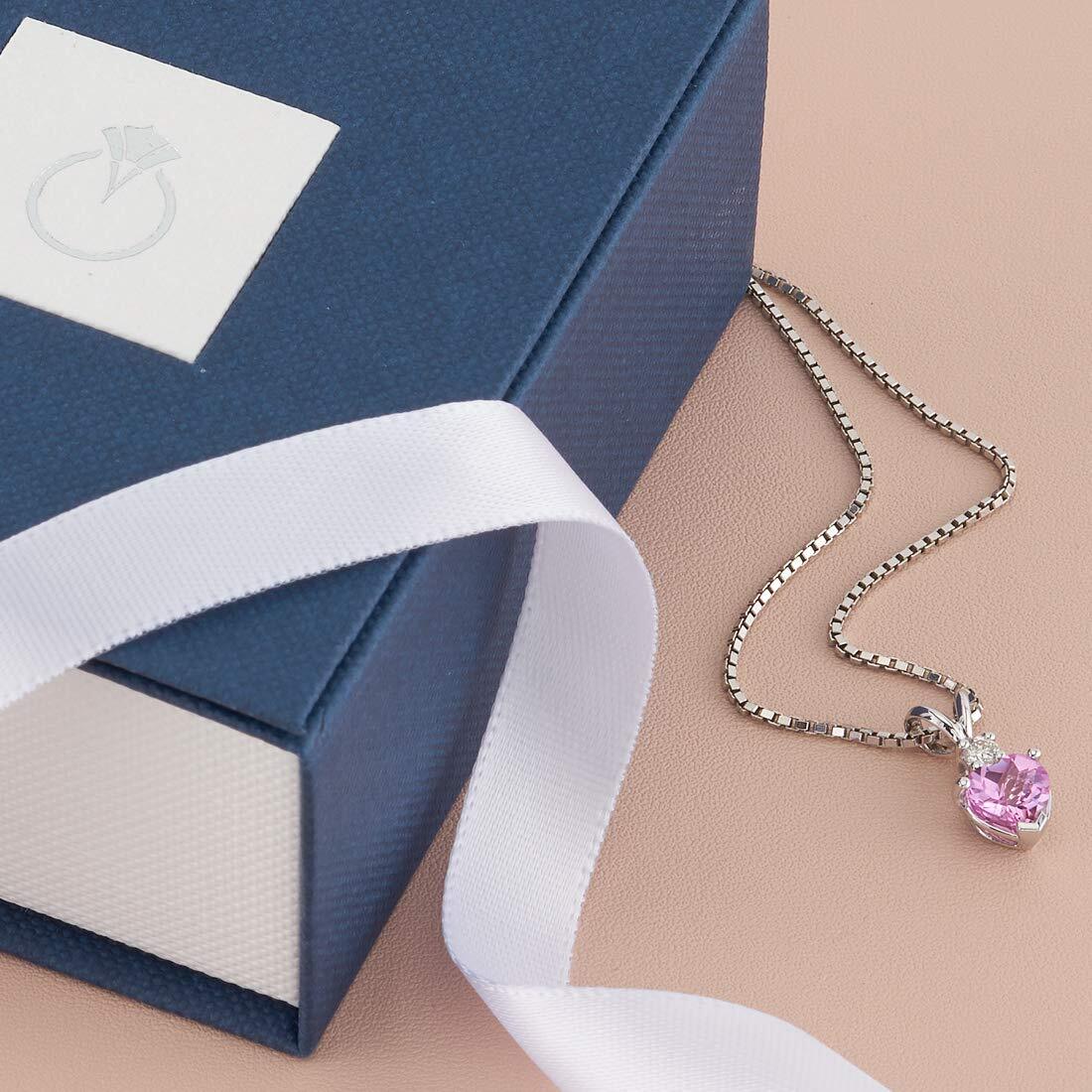 Pink Sapphire and Diamond Pendant Necklace 14K White Gold 1.13 Carats Heart Shape