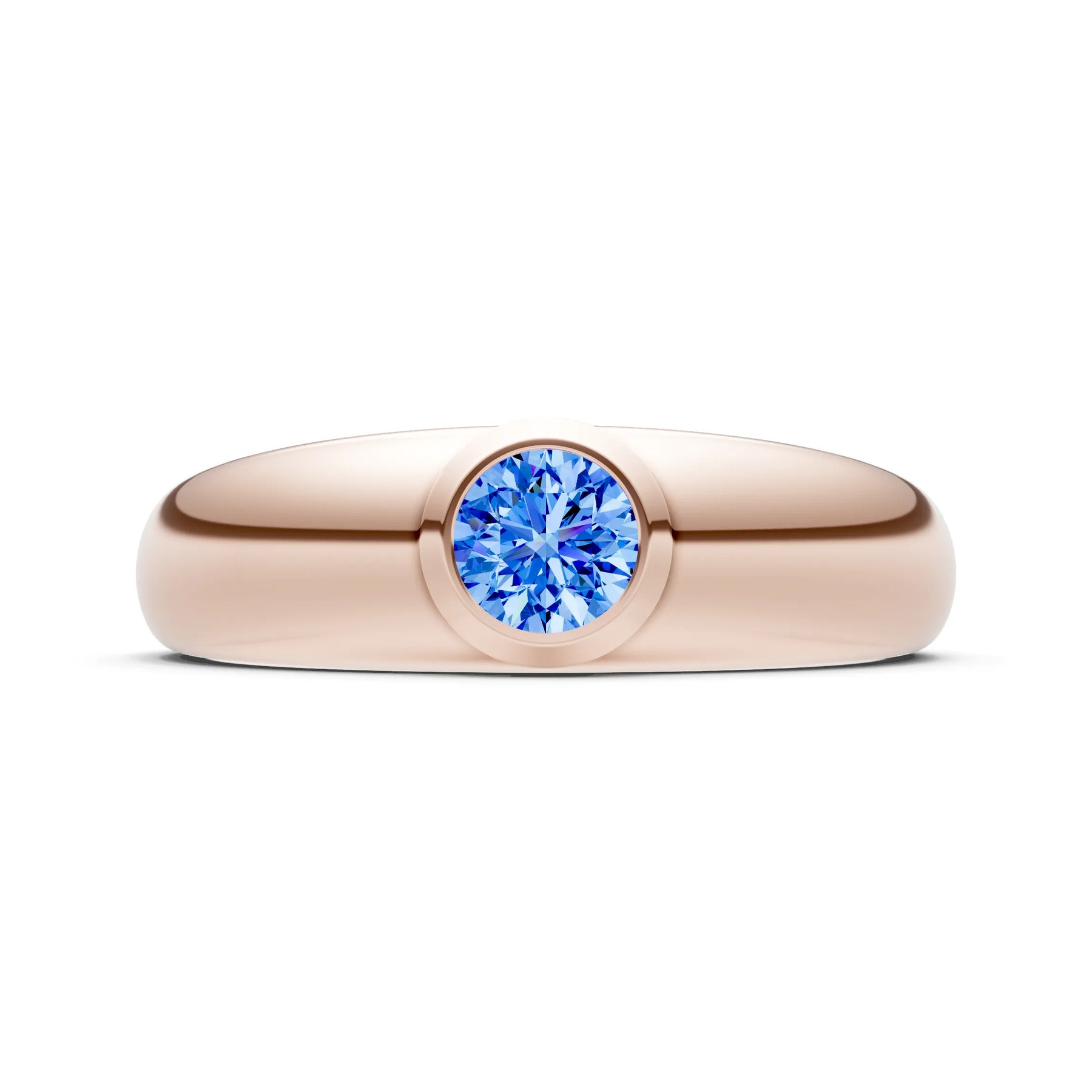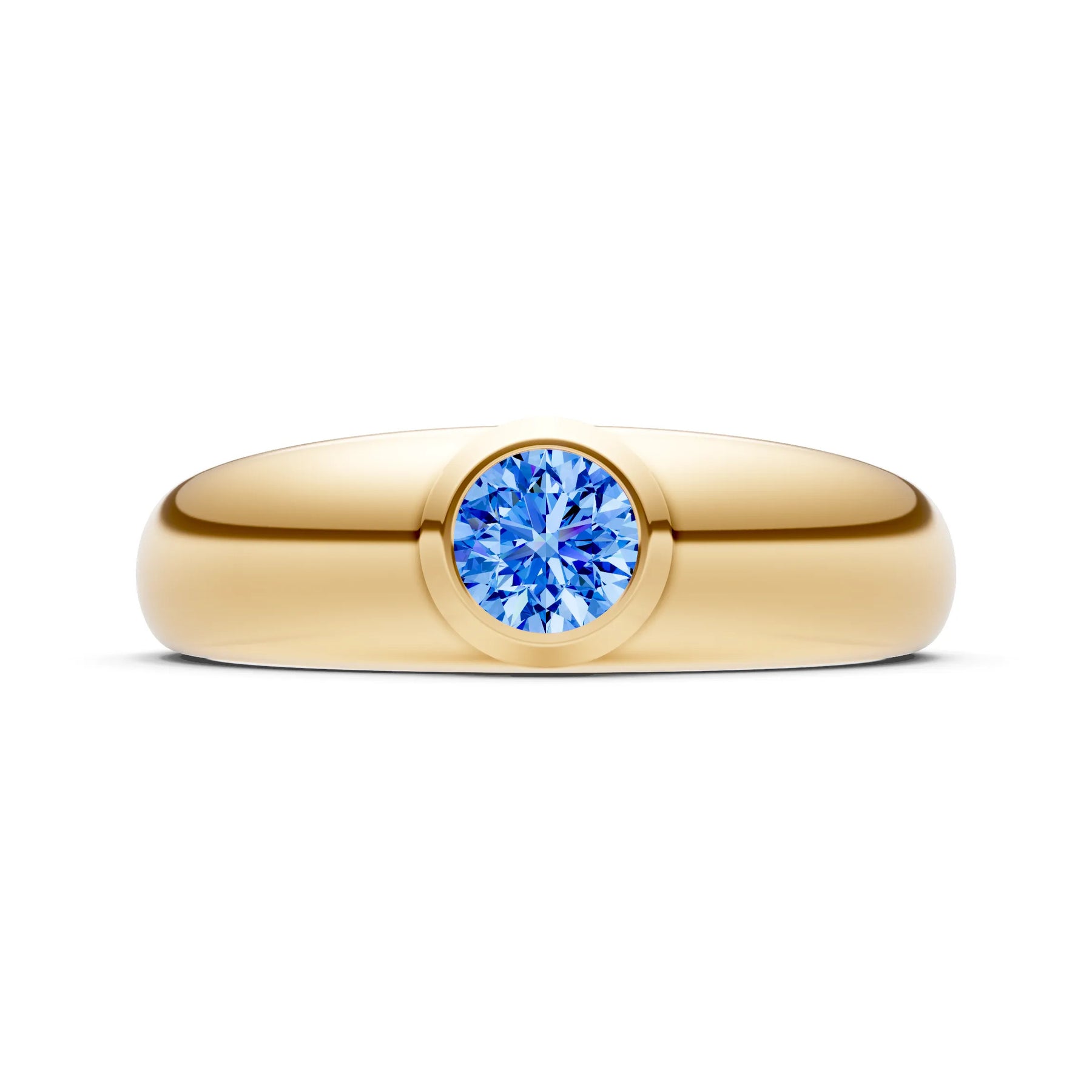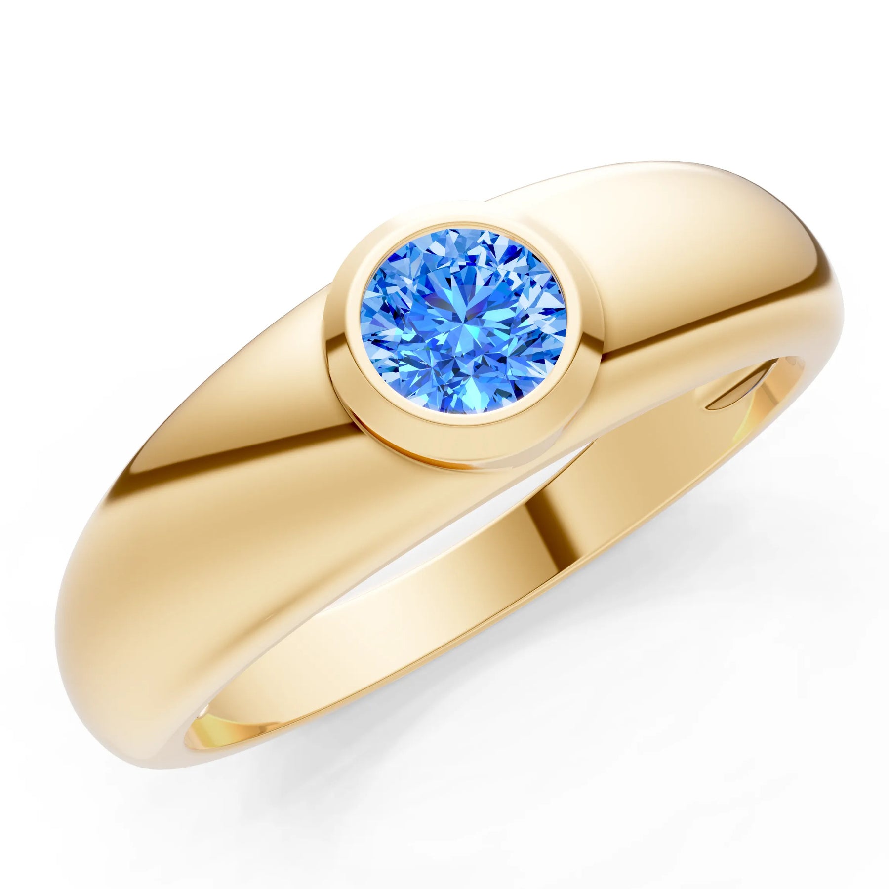Swiss Blue Topaz Bezel Set Round Cut Signet Ring