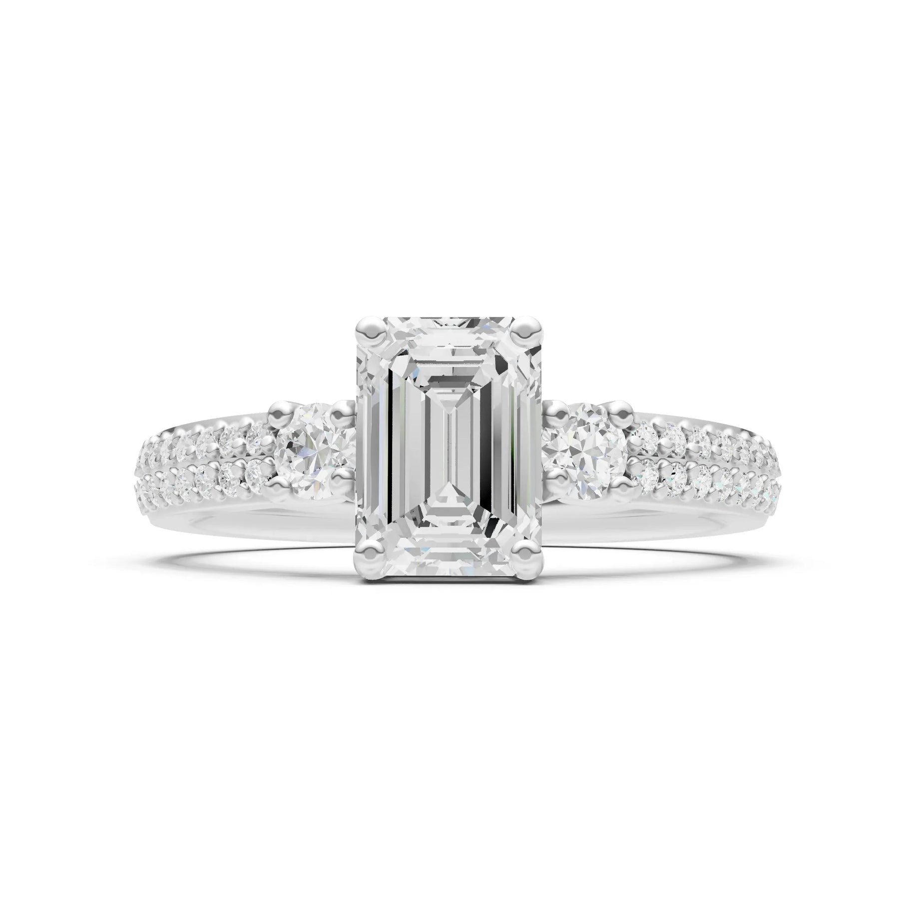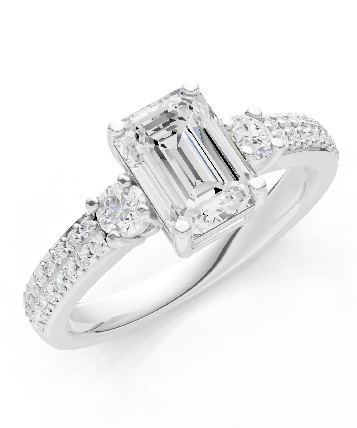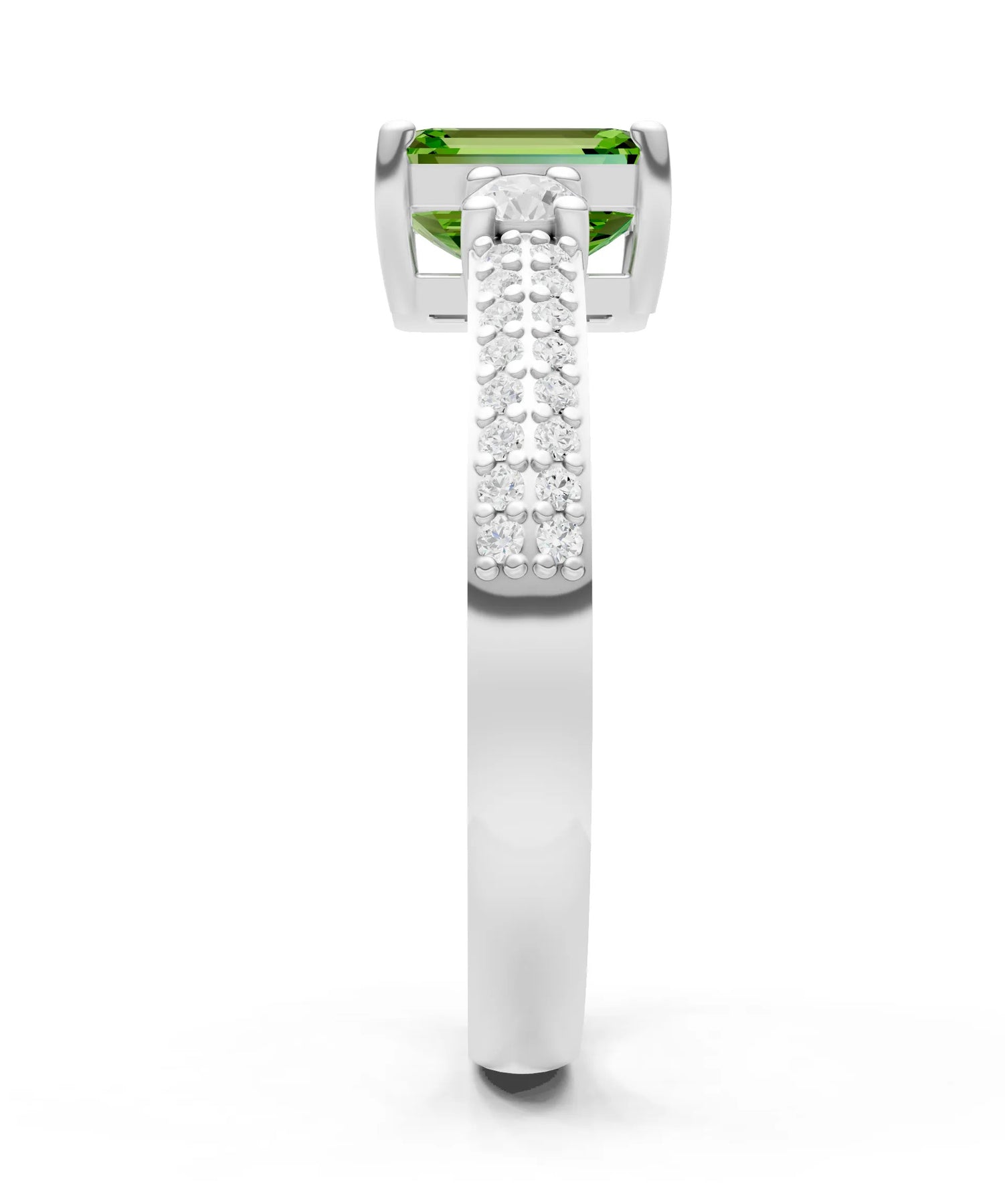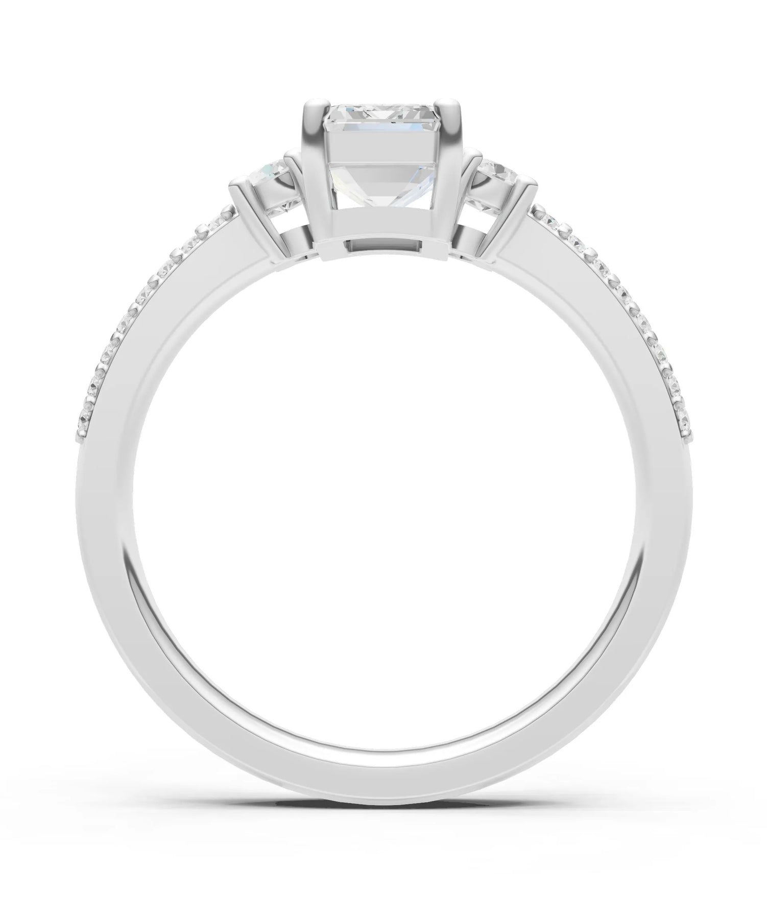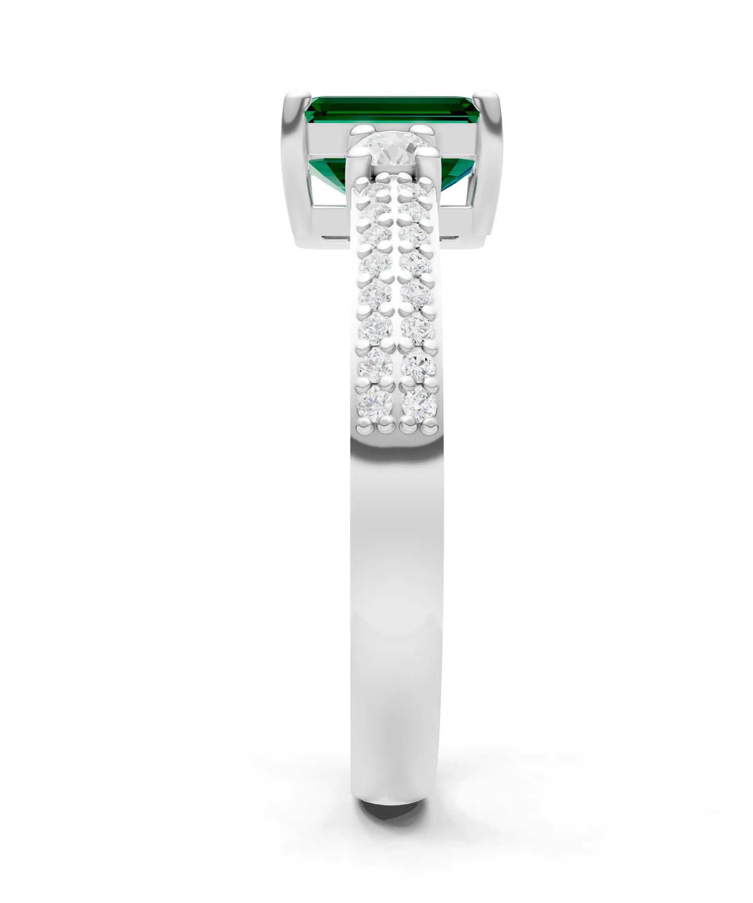 Three Stone Emerald Cut Double Pave Band