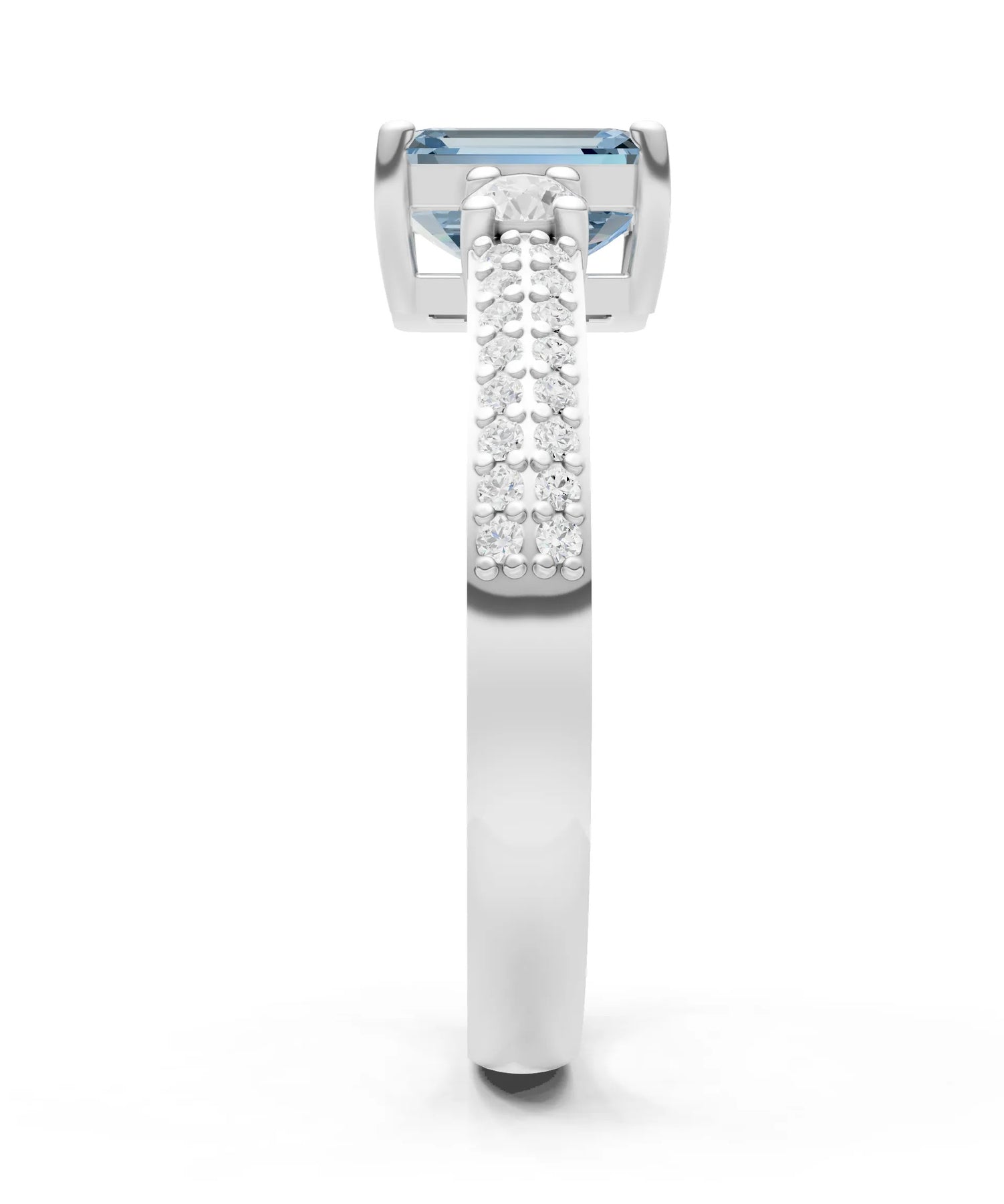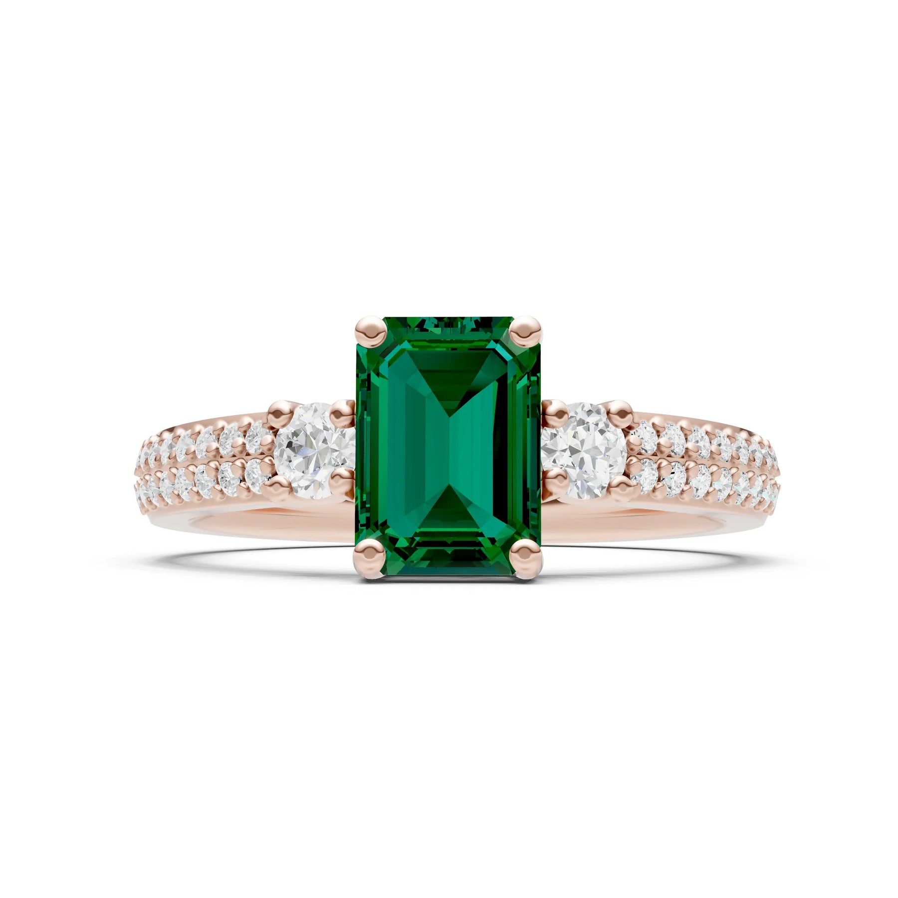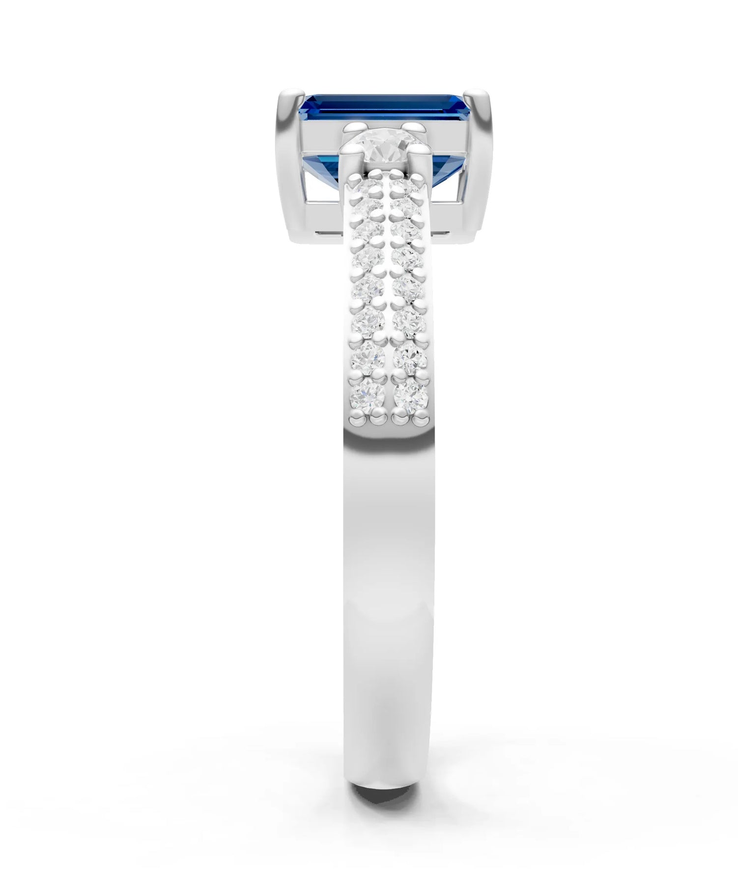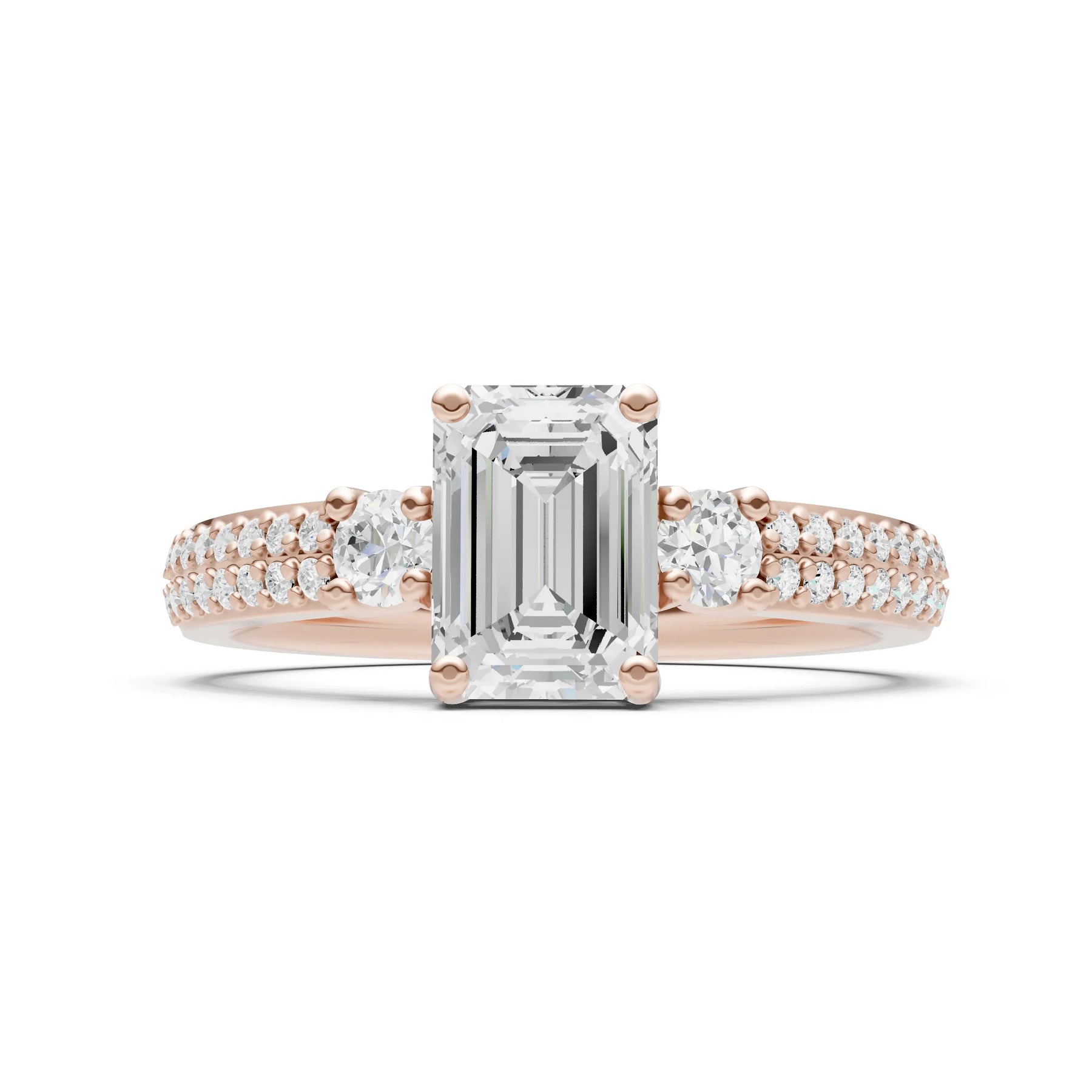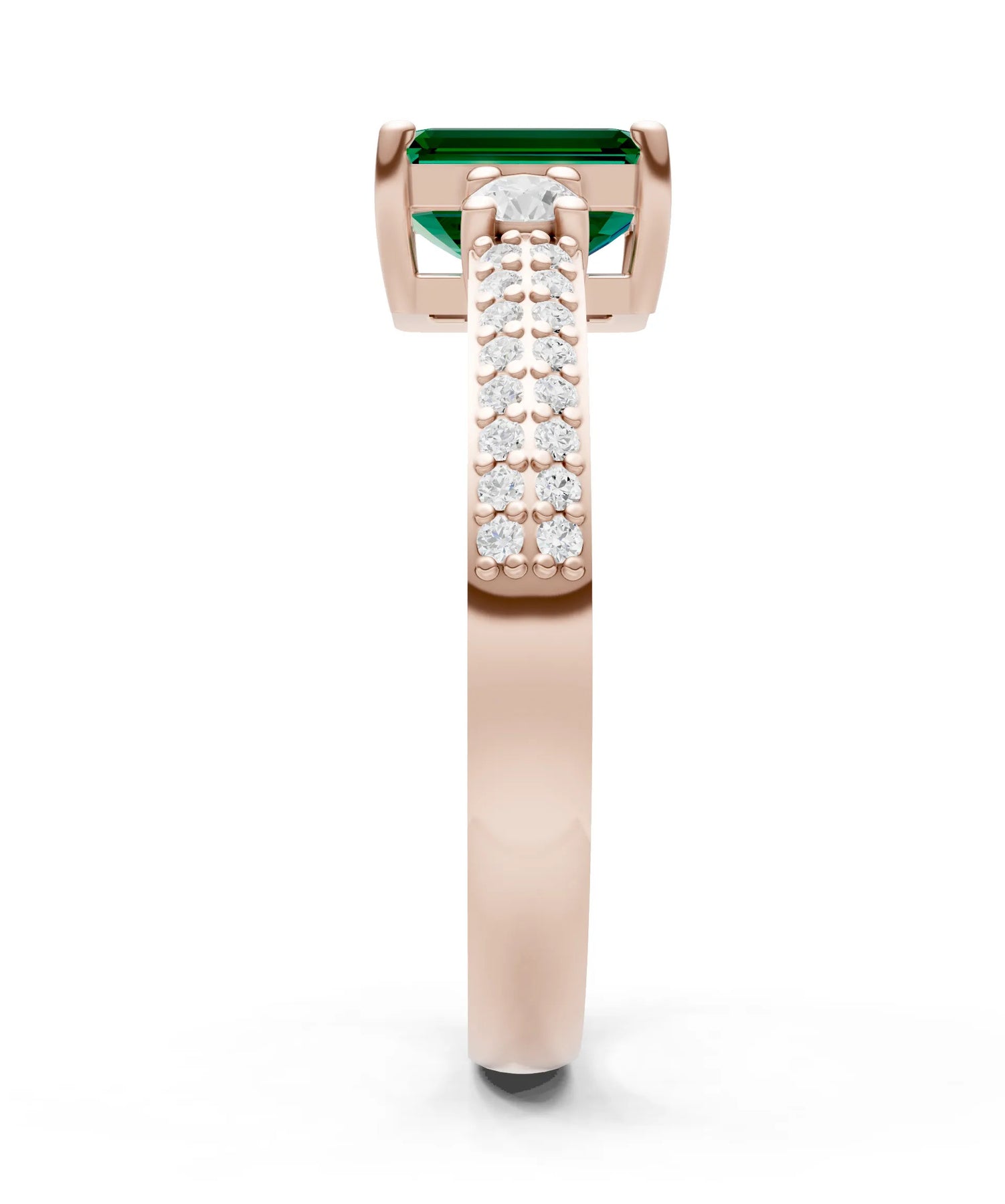 Three Stone Emerald Cut Double Pave Band
