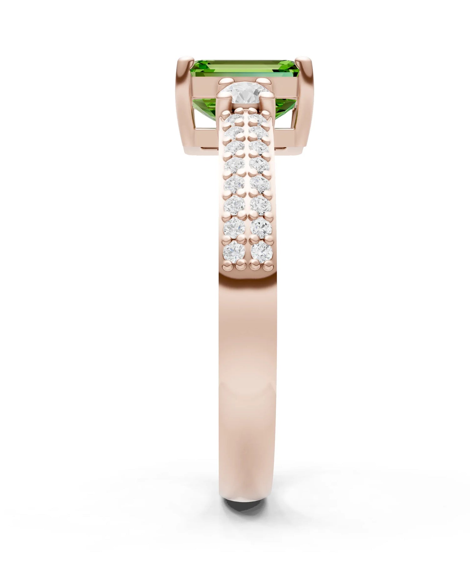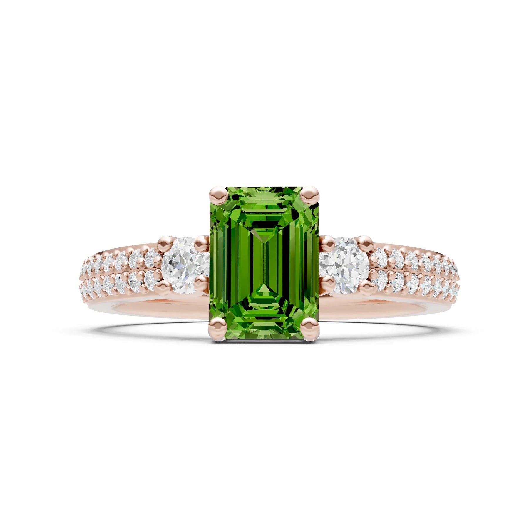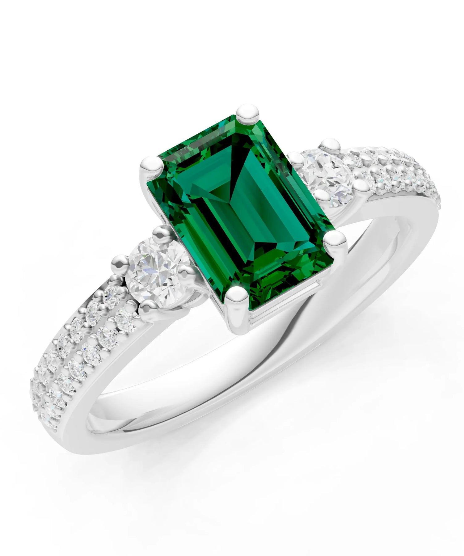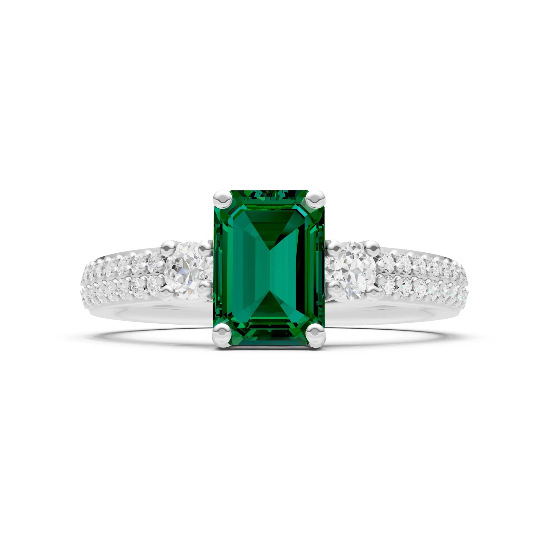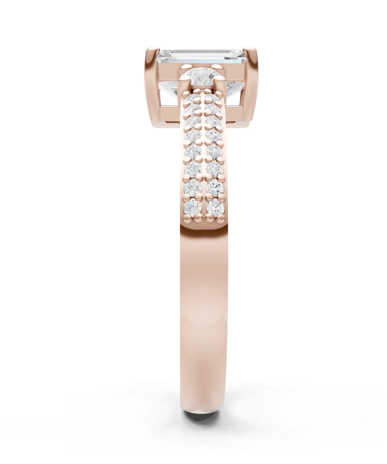 Three Stone Emerald Cut Double Pave Band
