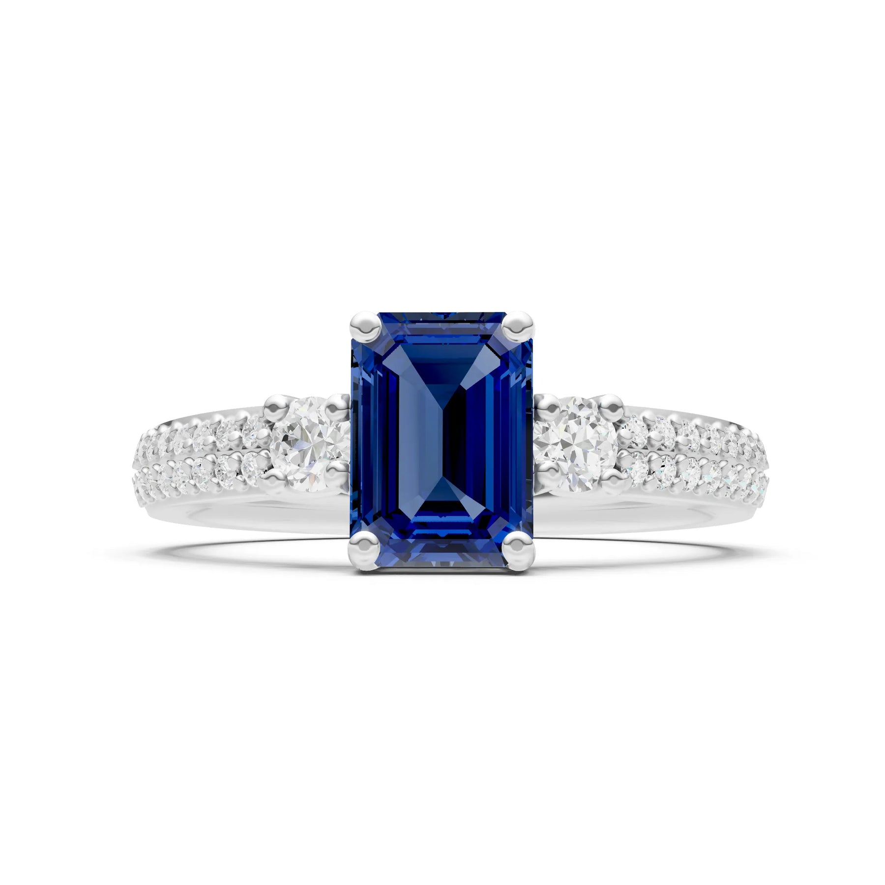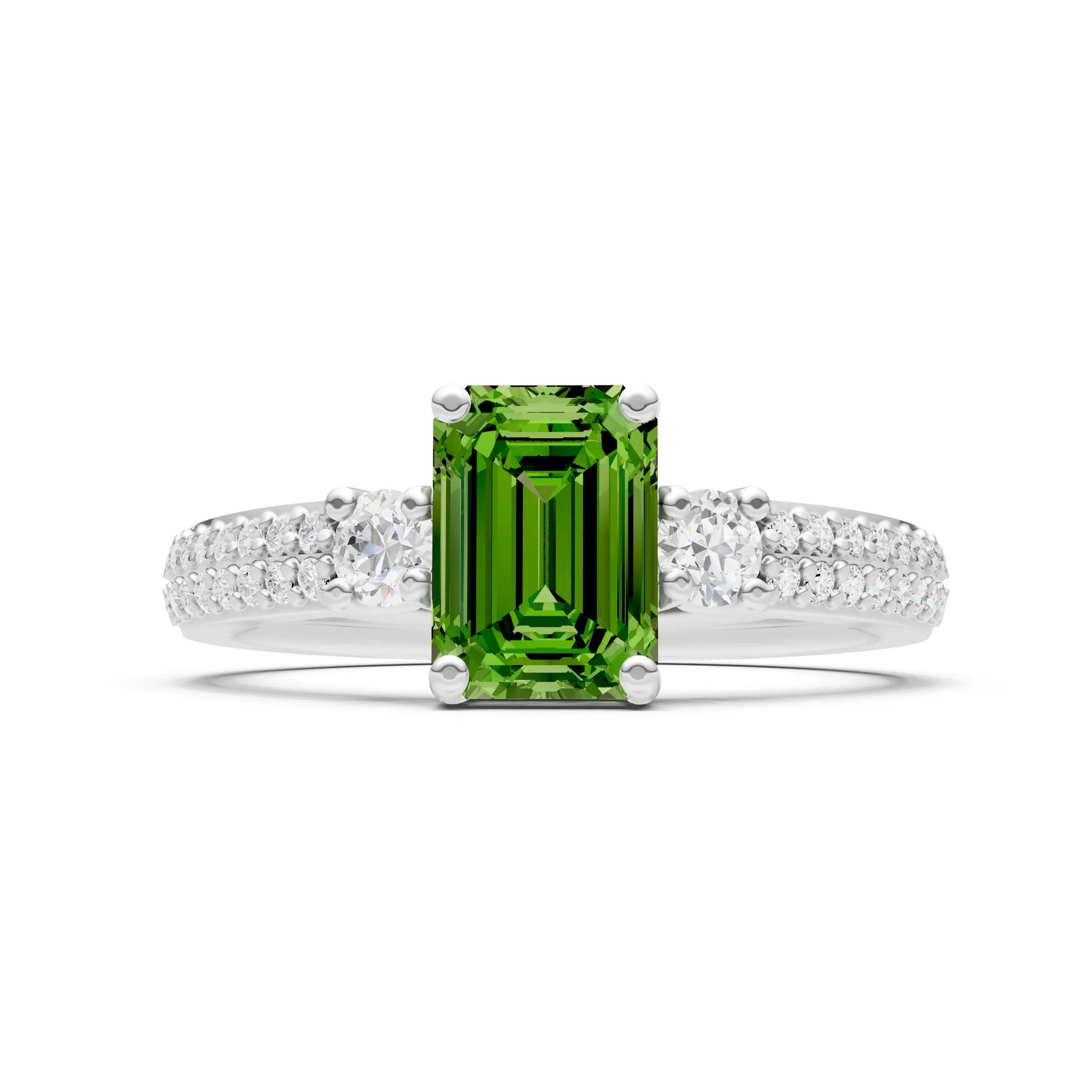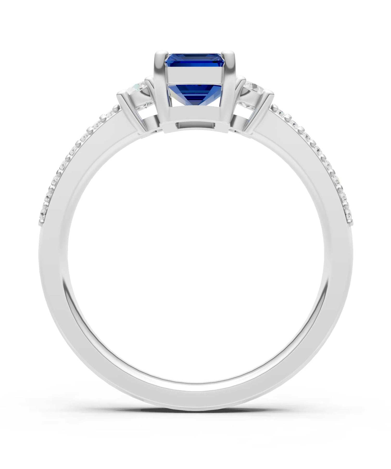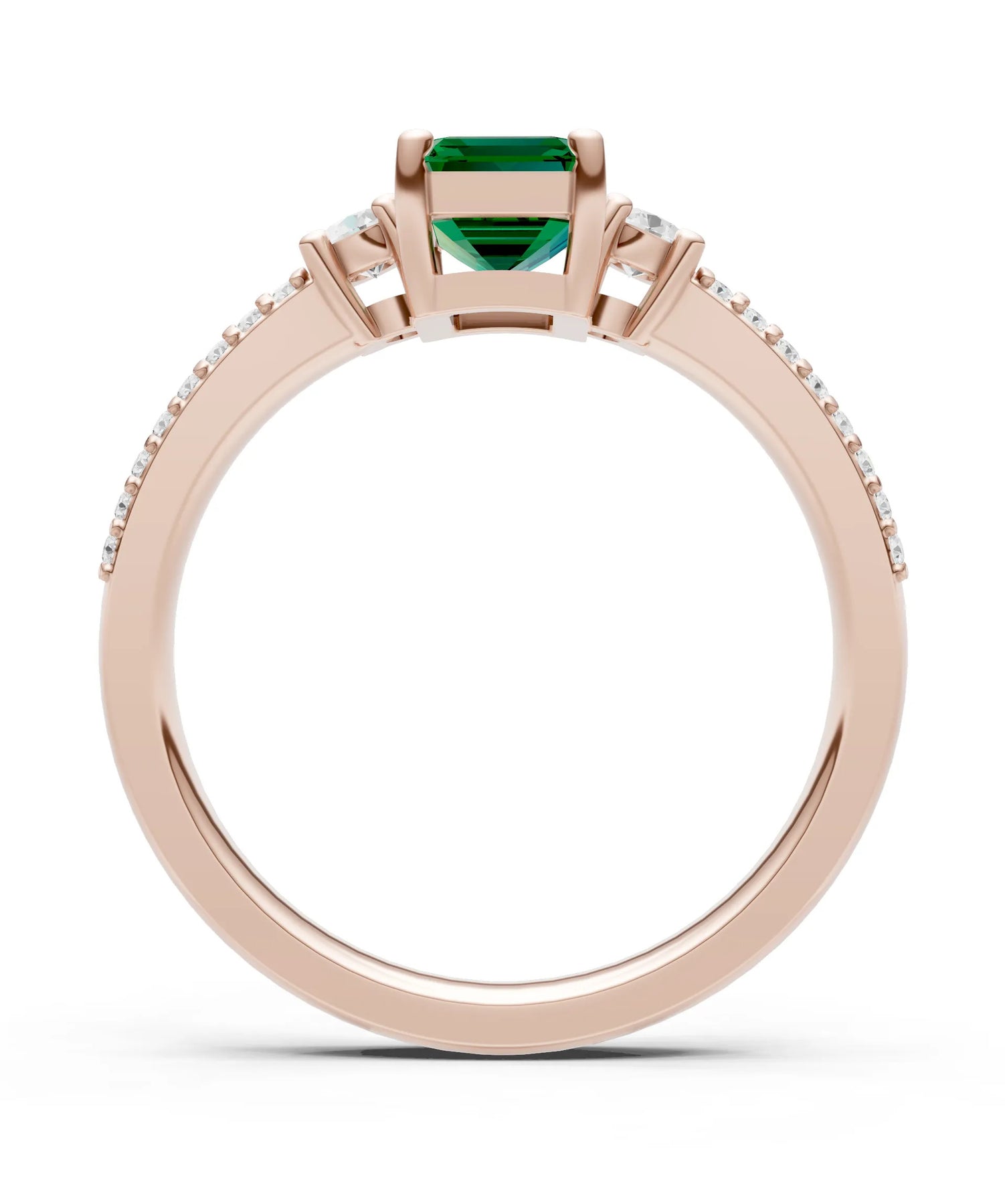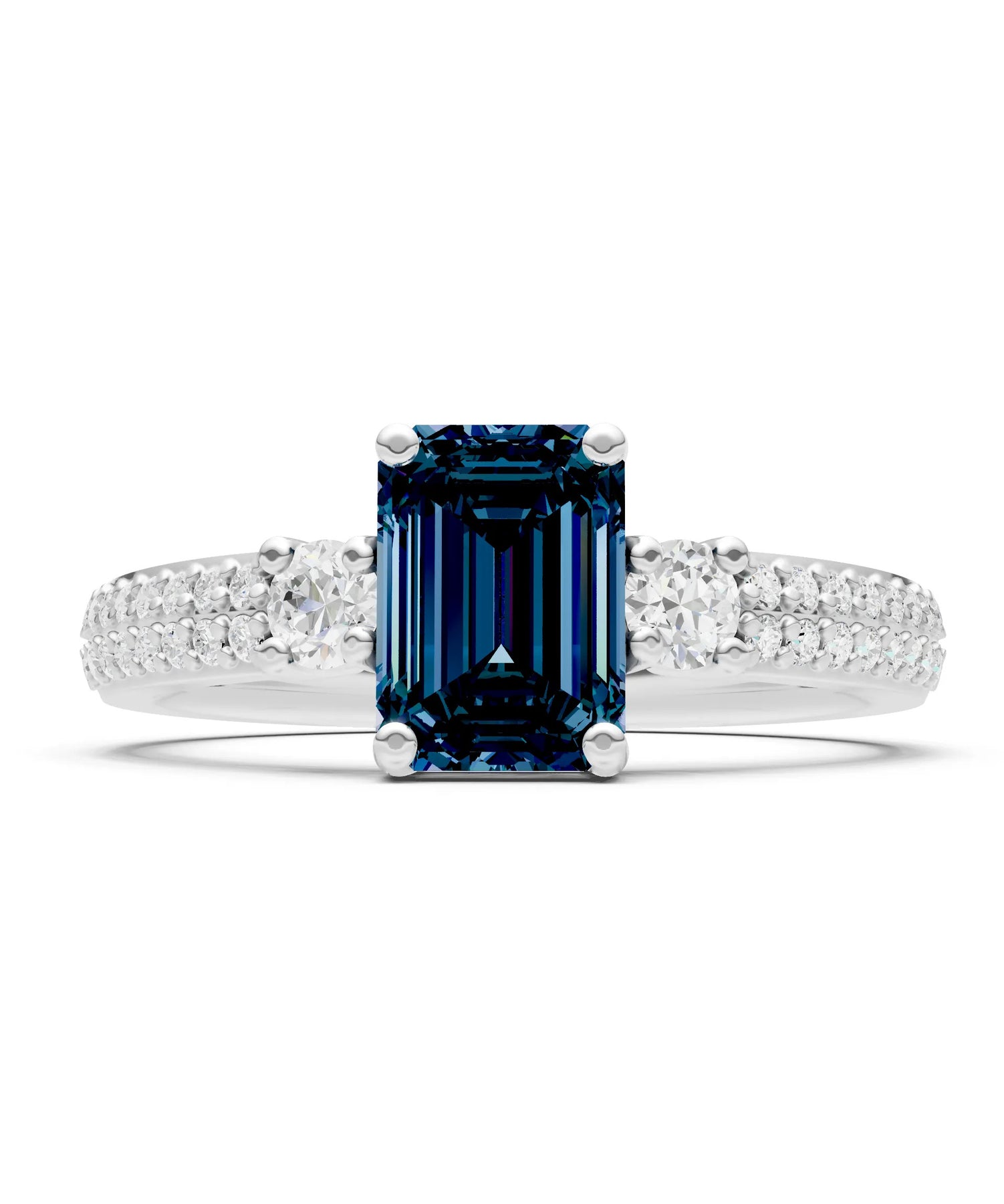 Three Stone Emerald Cut Double Pave Band