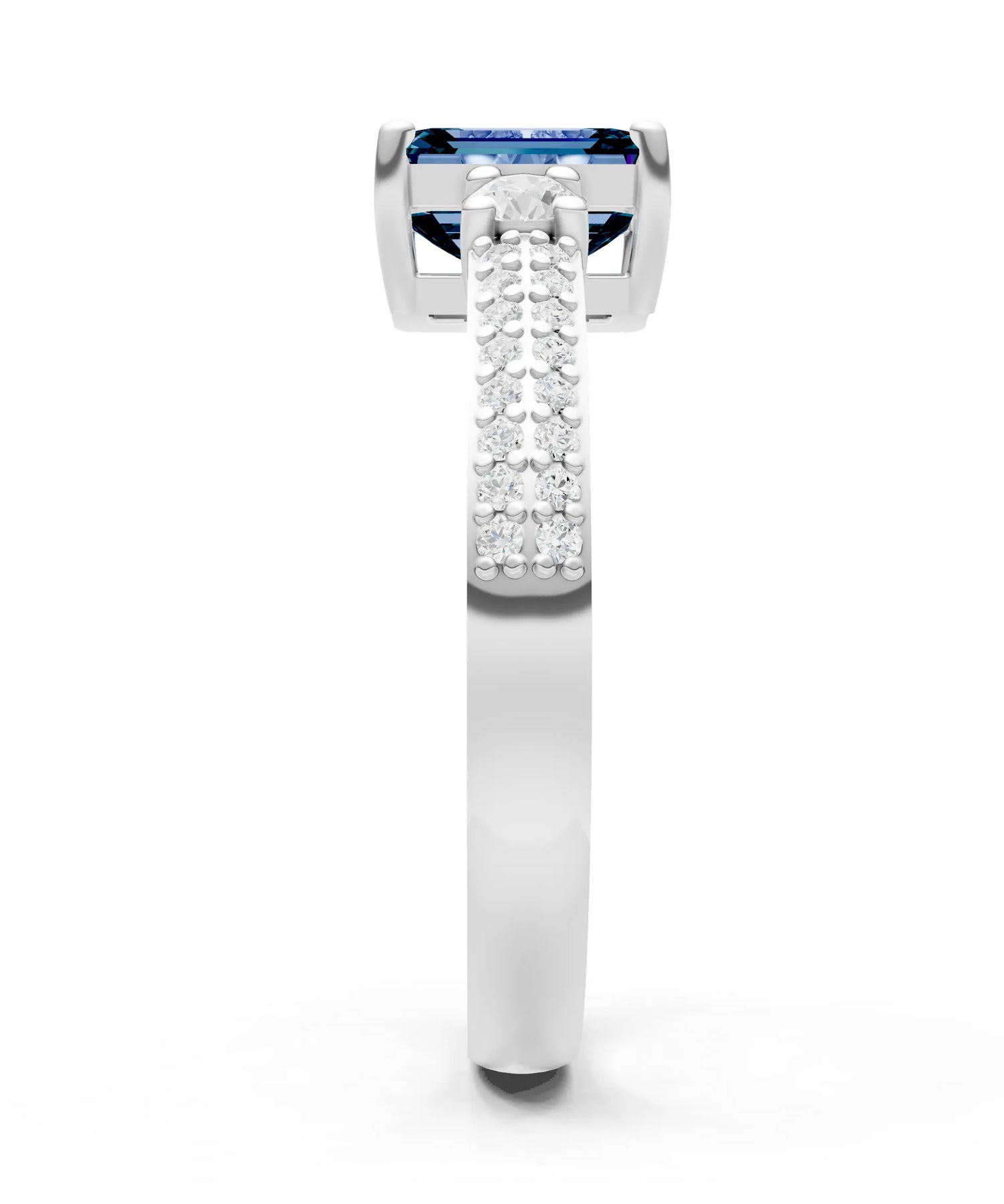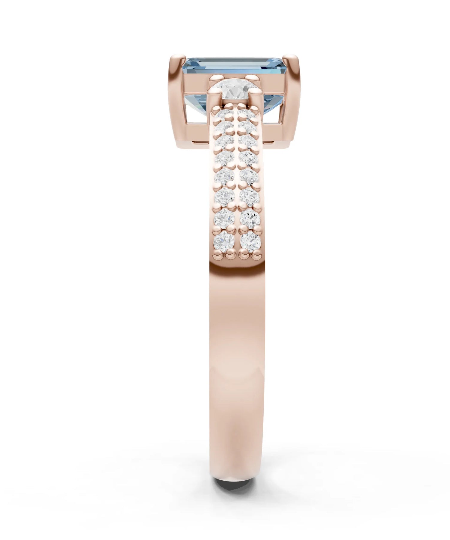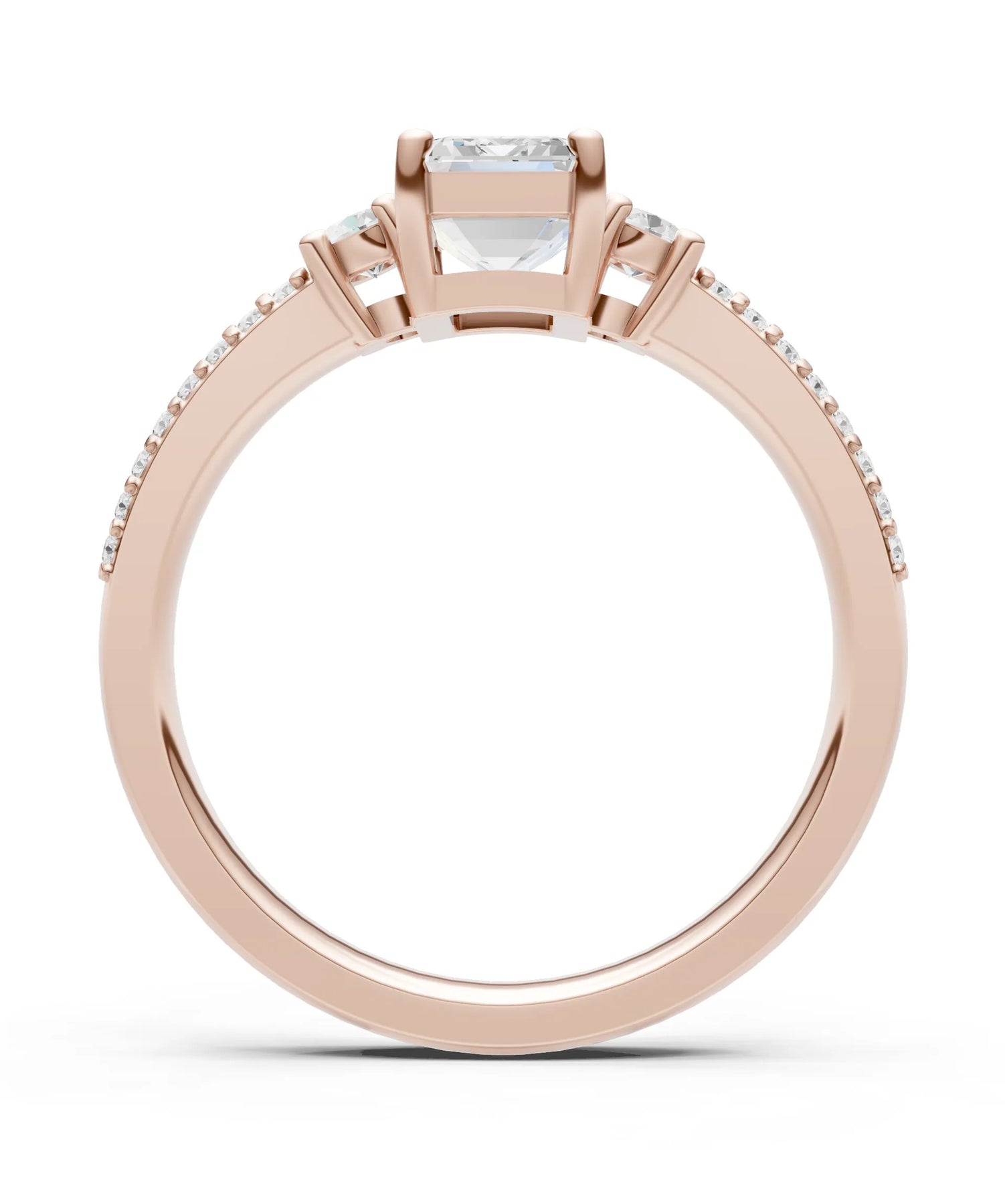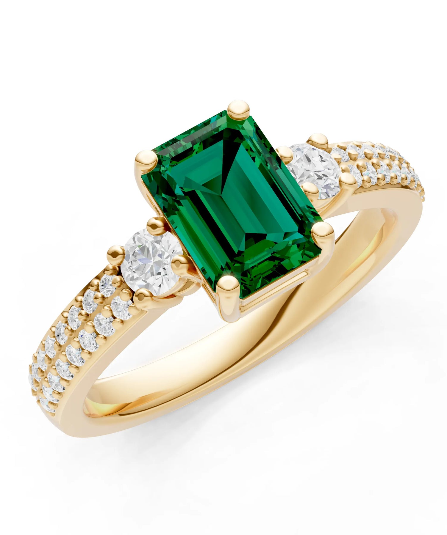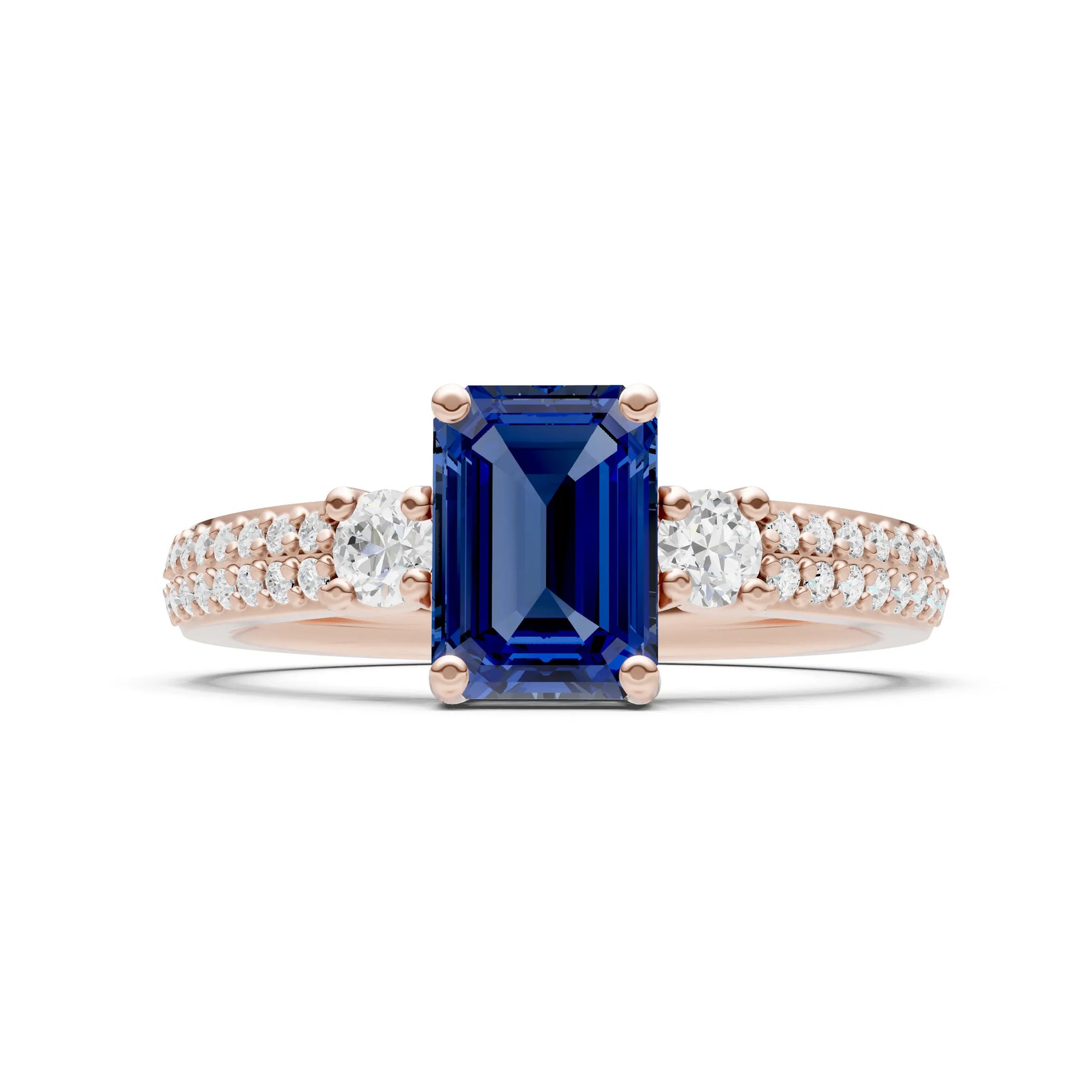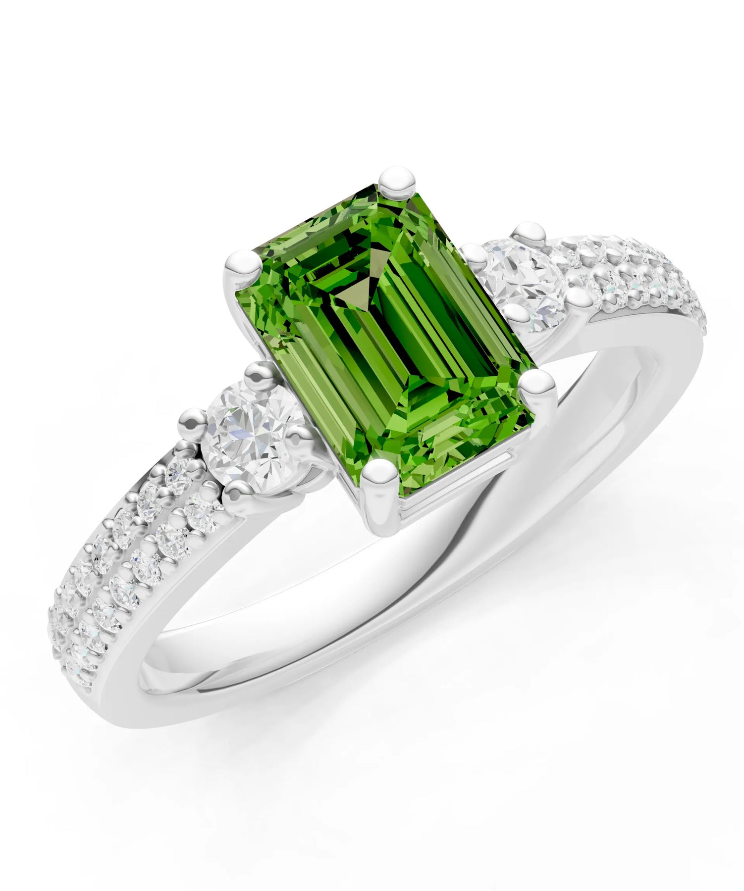 Three Stone Emerald Cut Double Pave Band