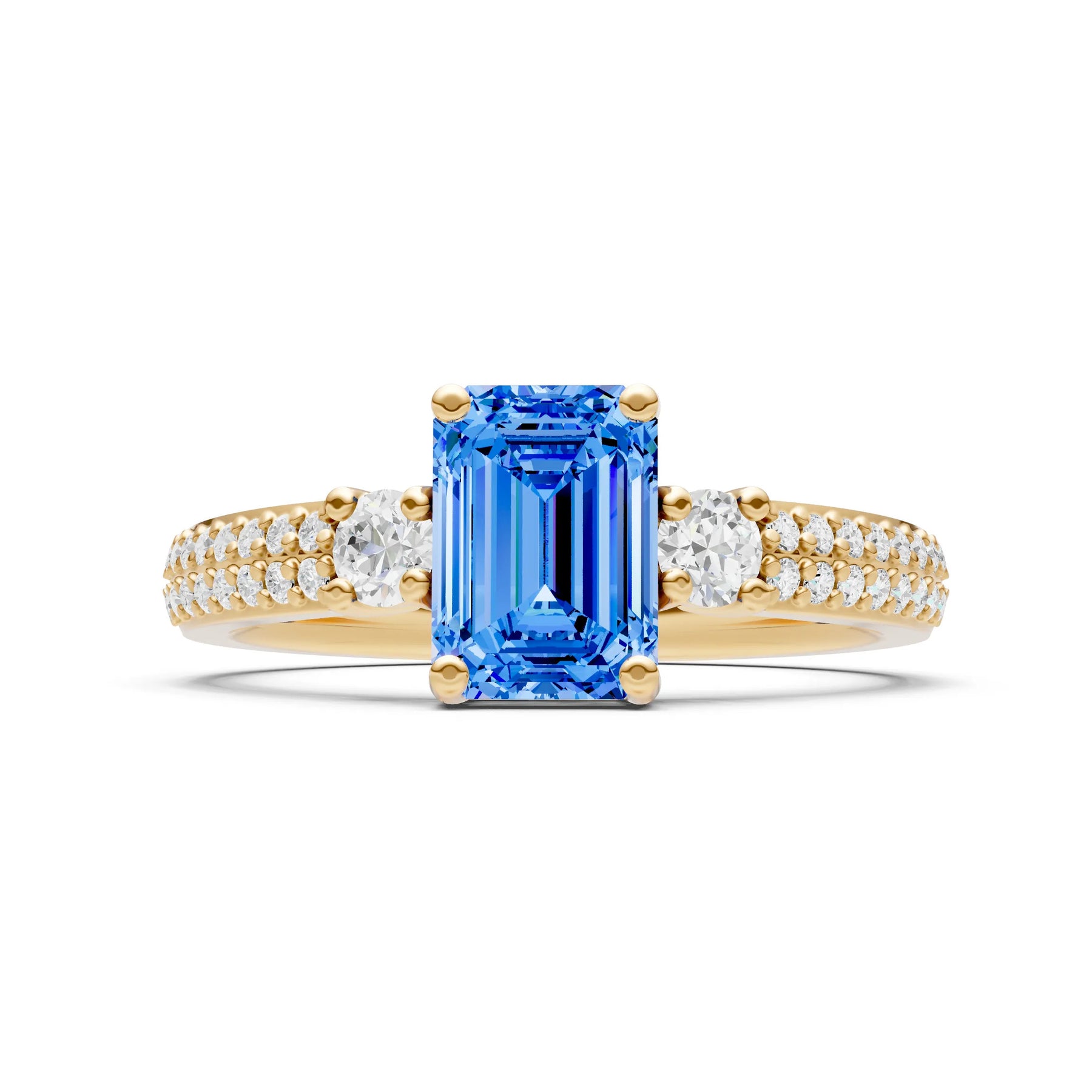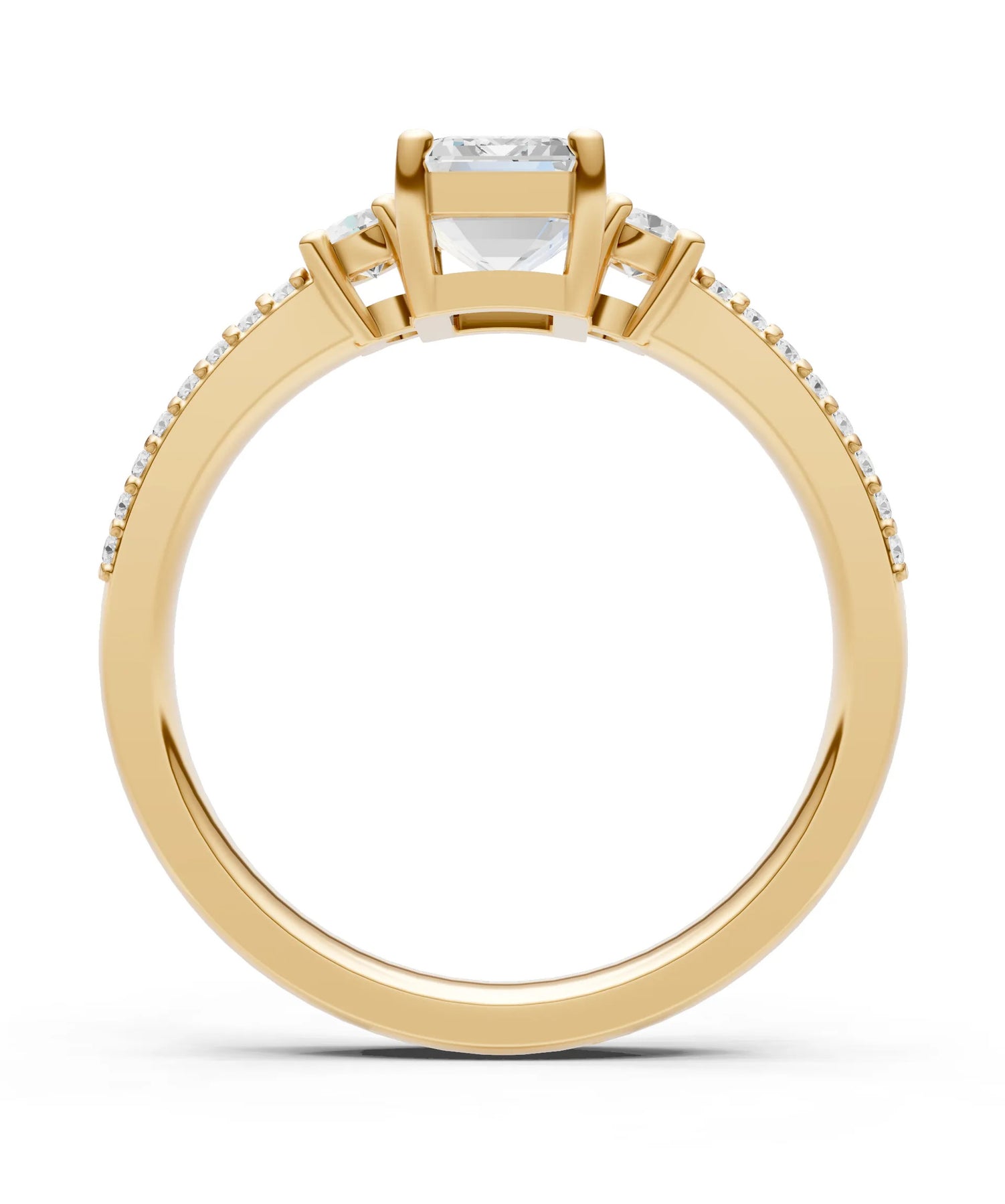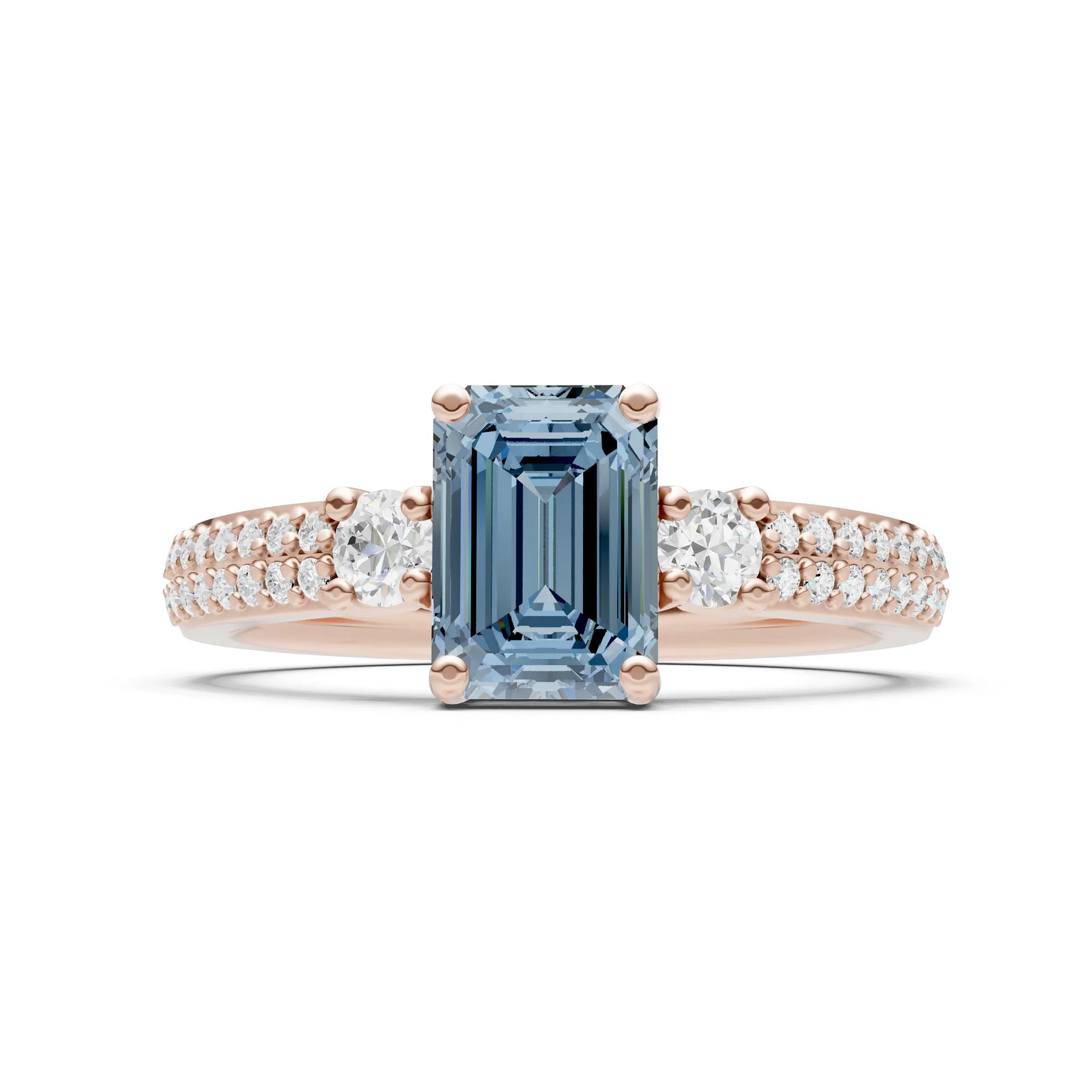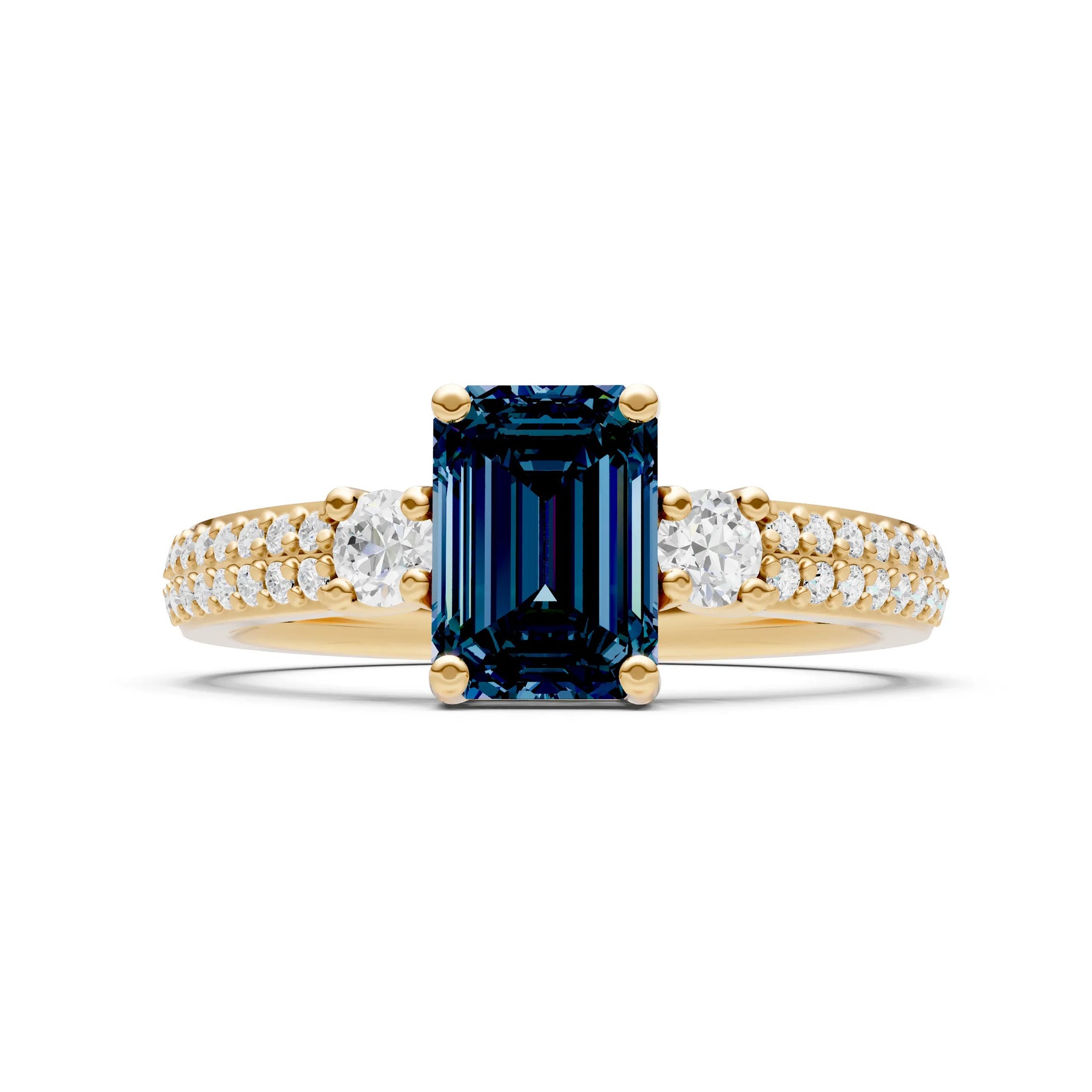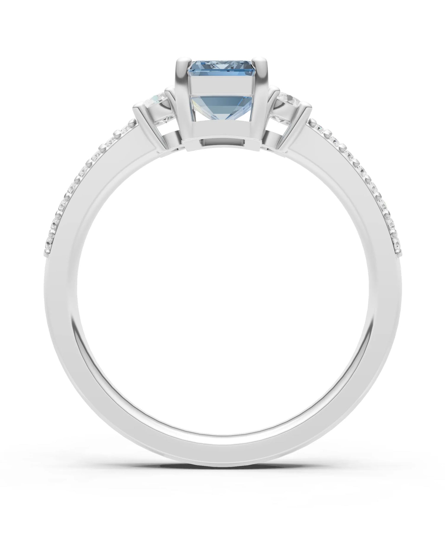 Three Stone Emerald Cut Double Pave Band