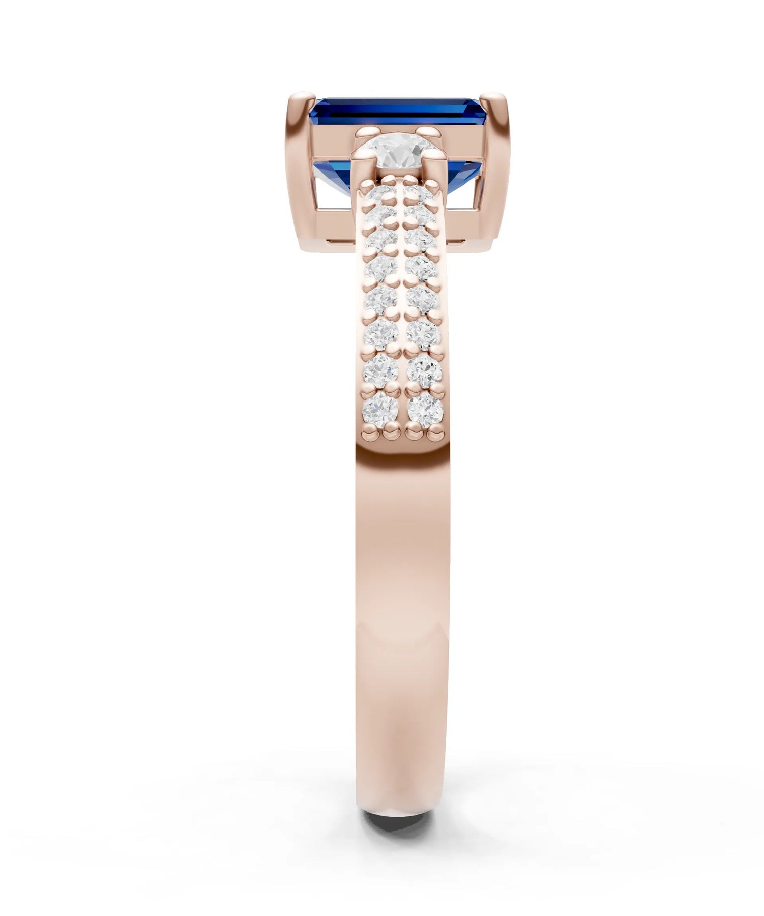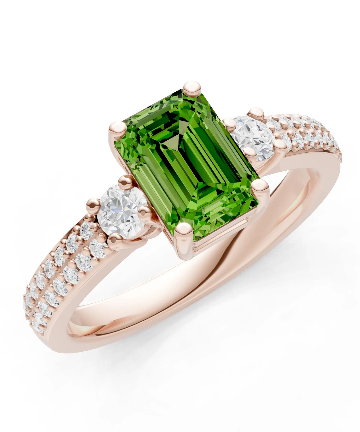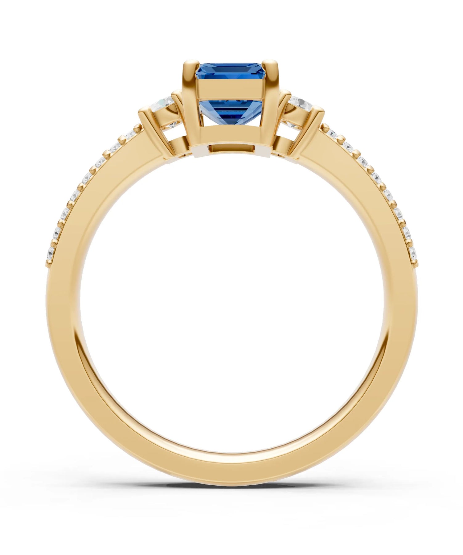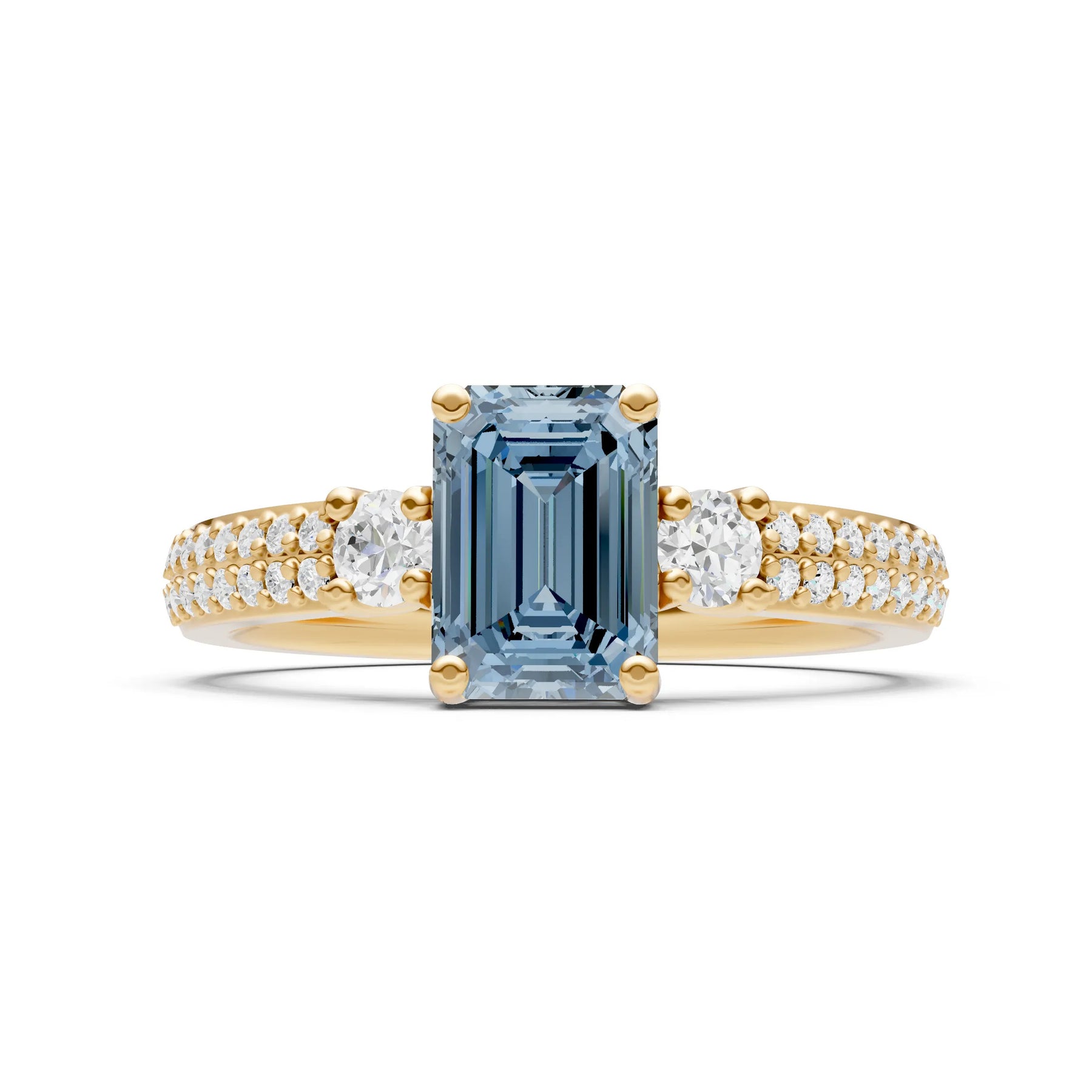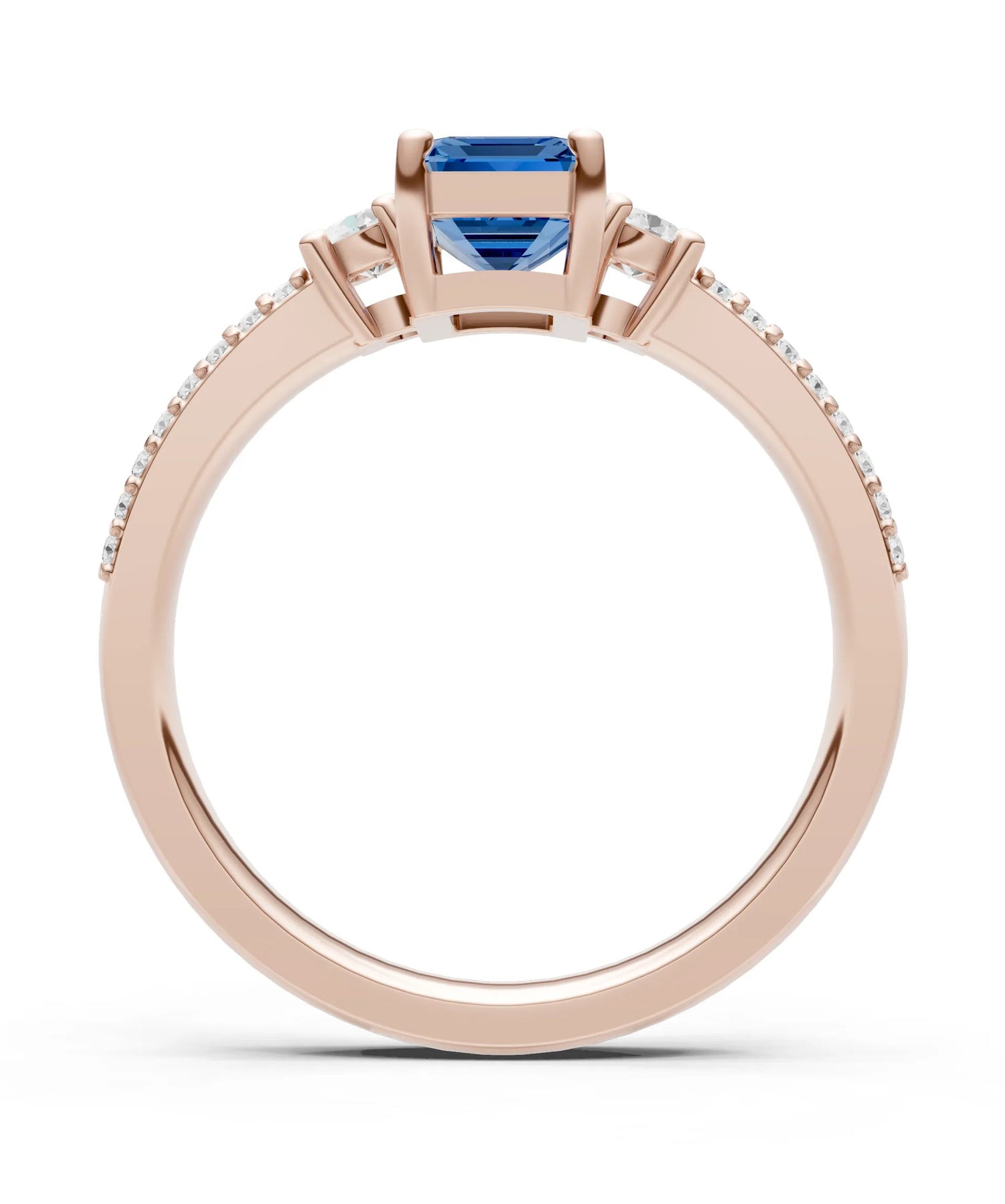 Three Stone Emerald Cut Double Pave Band