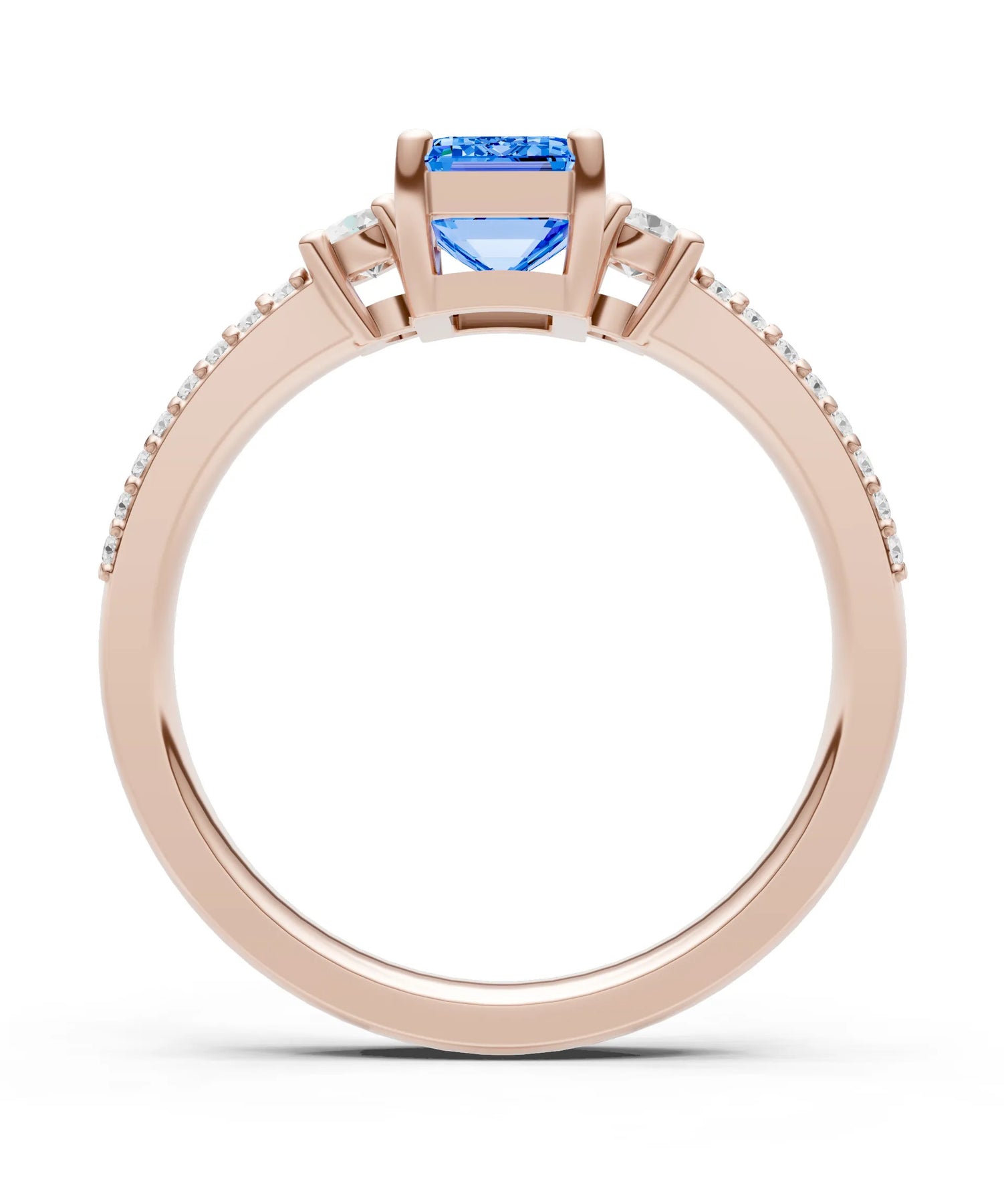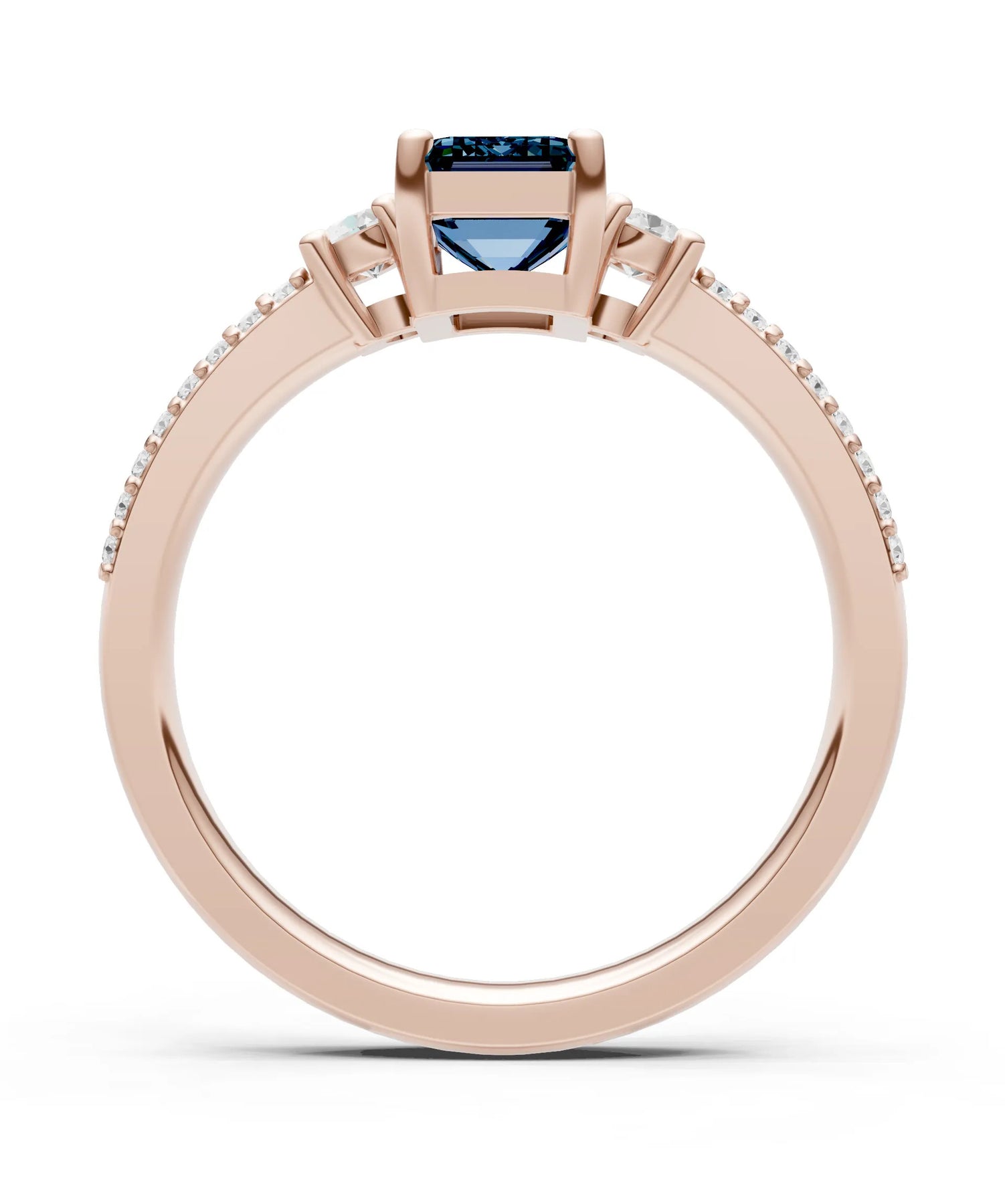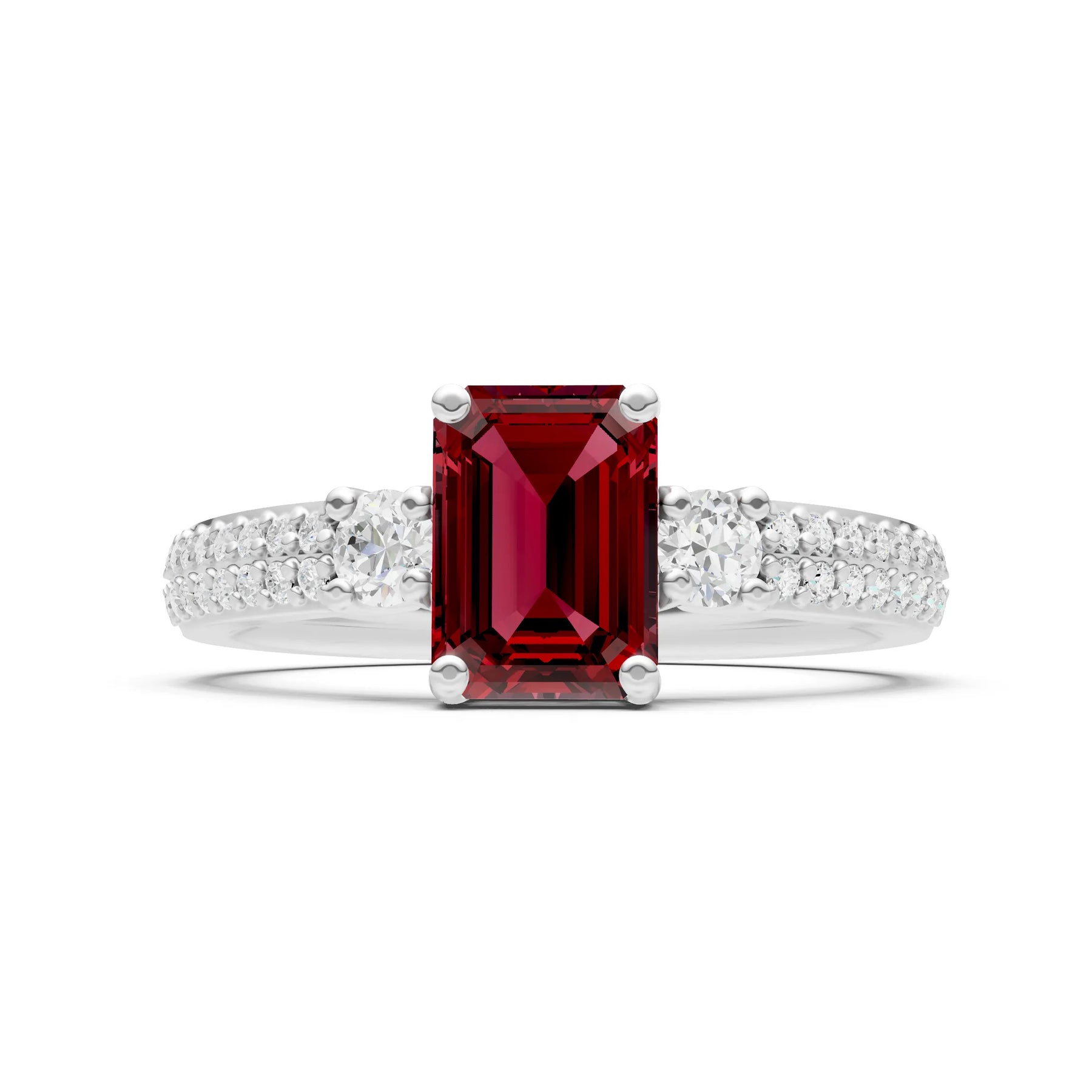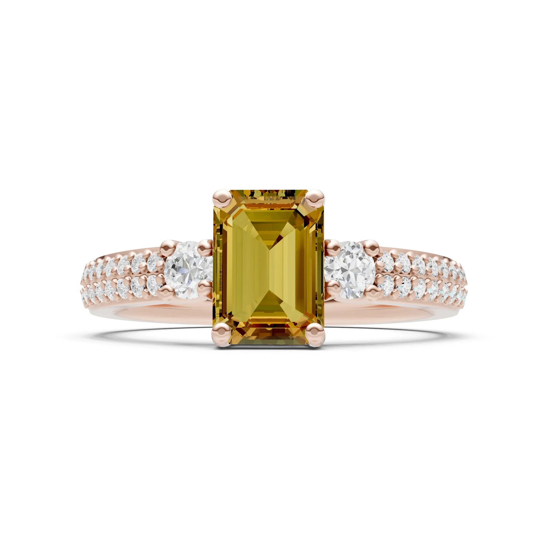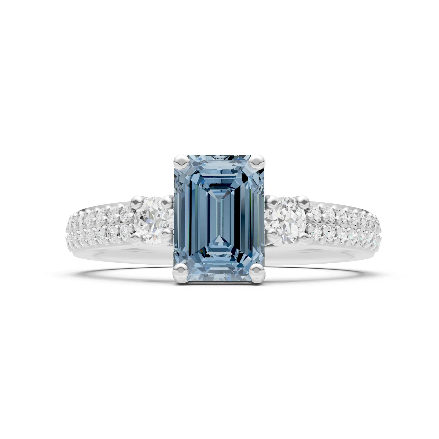 Three Stone Emerald Cut Double Pave Band