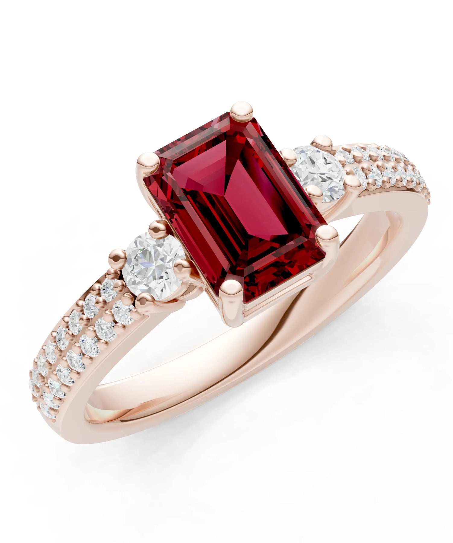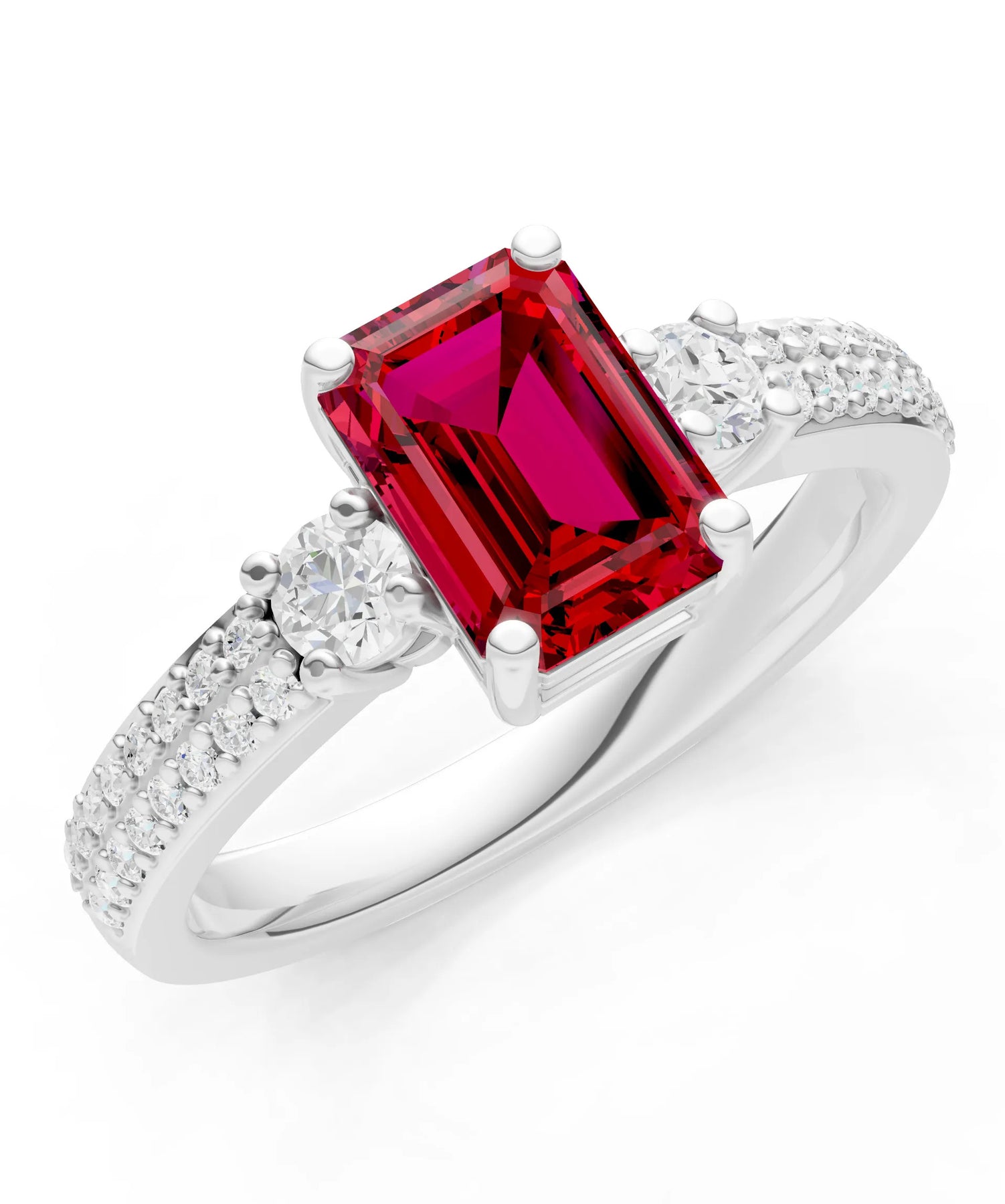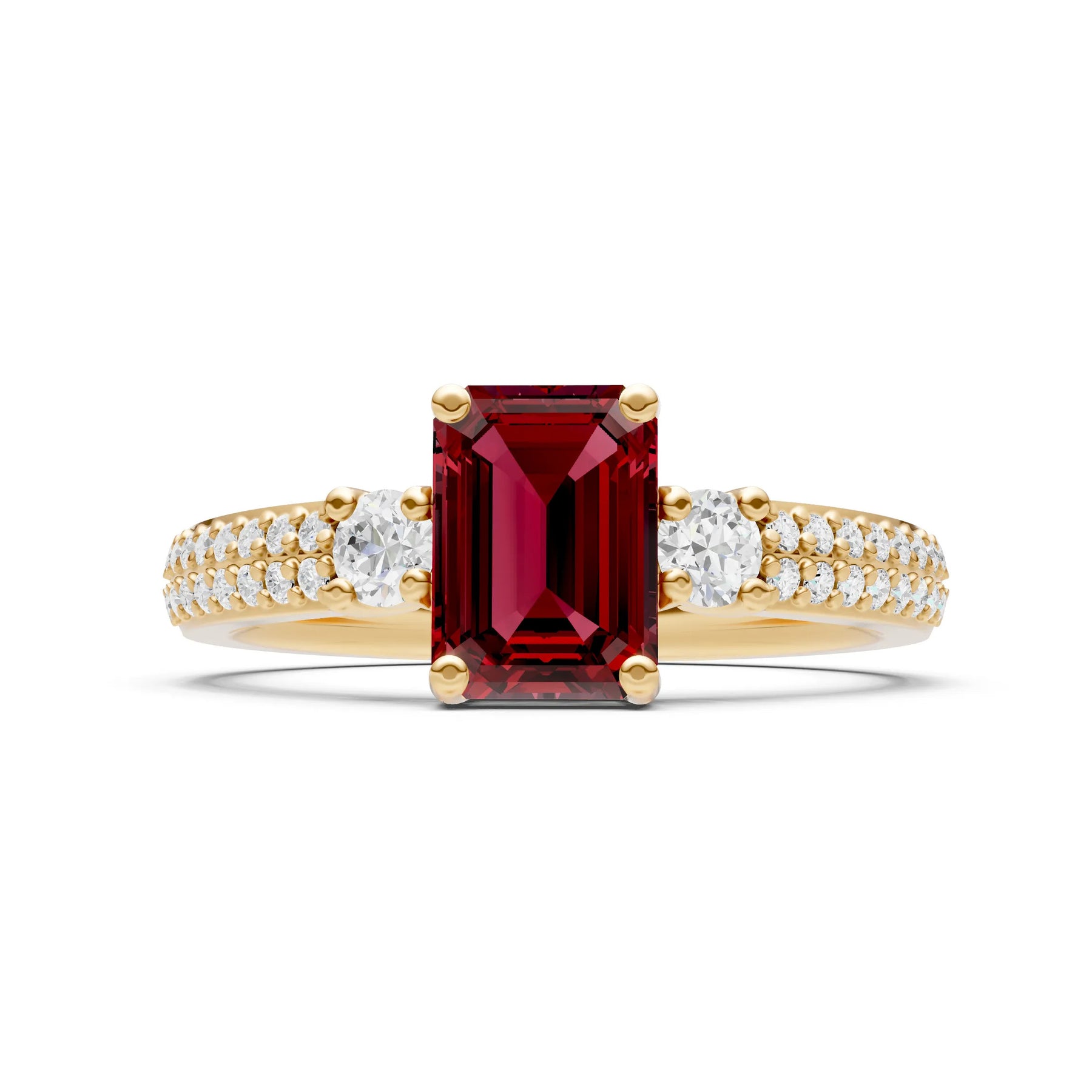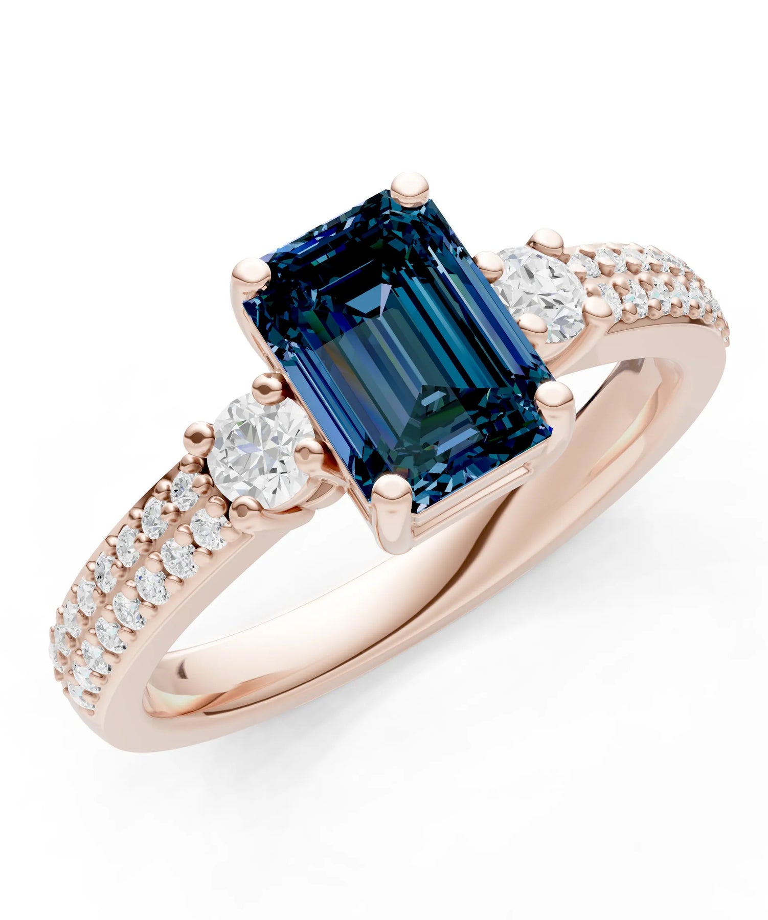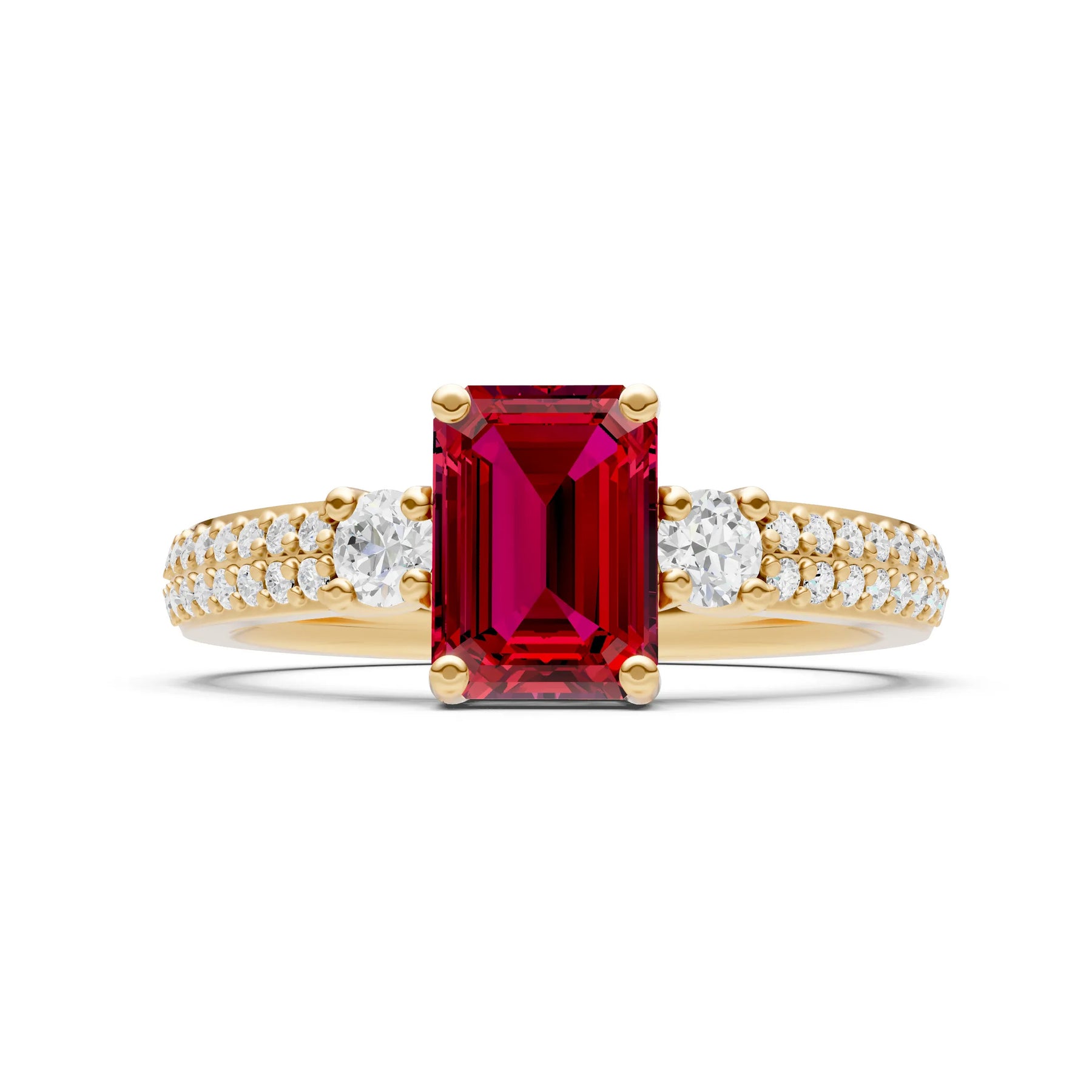 Three Stone Emerald Cut Double Pave Band