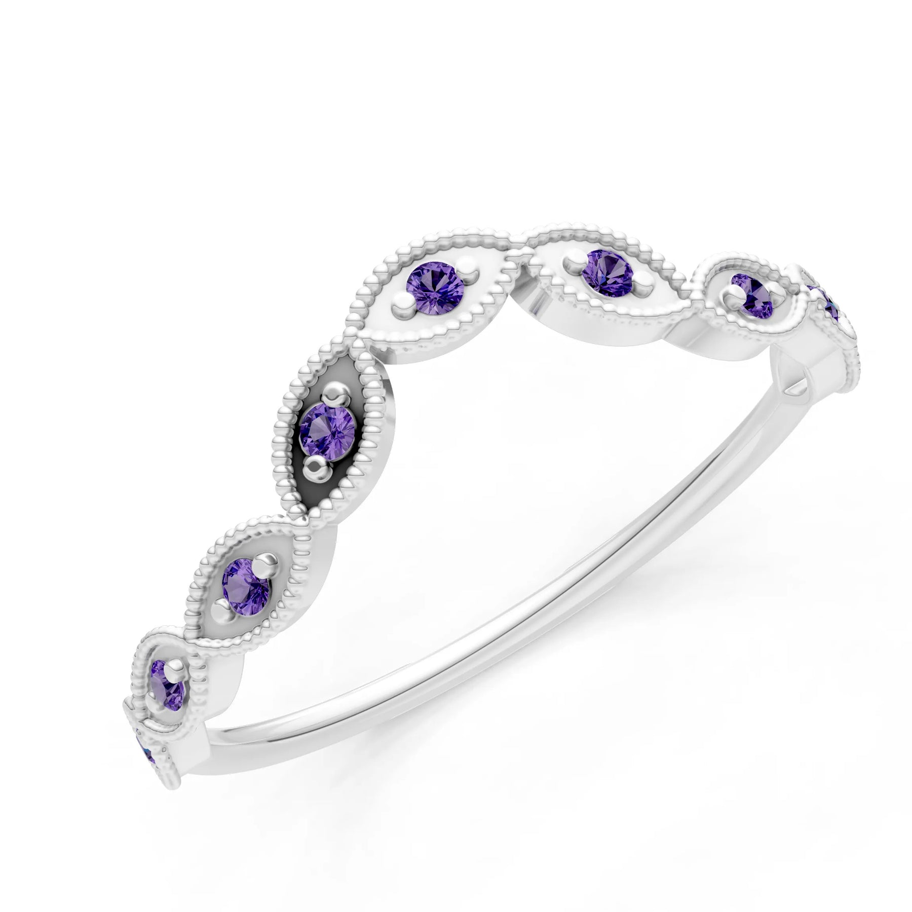 Amethyst Dainty Curve Round Cut Band